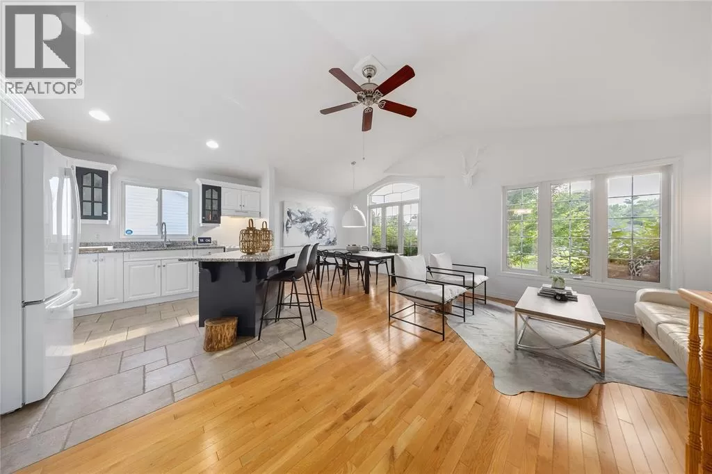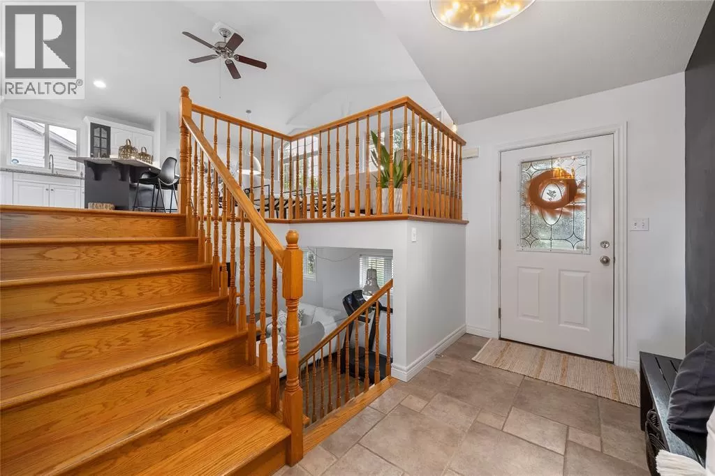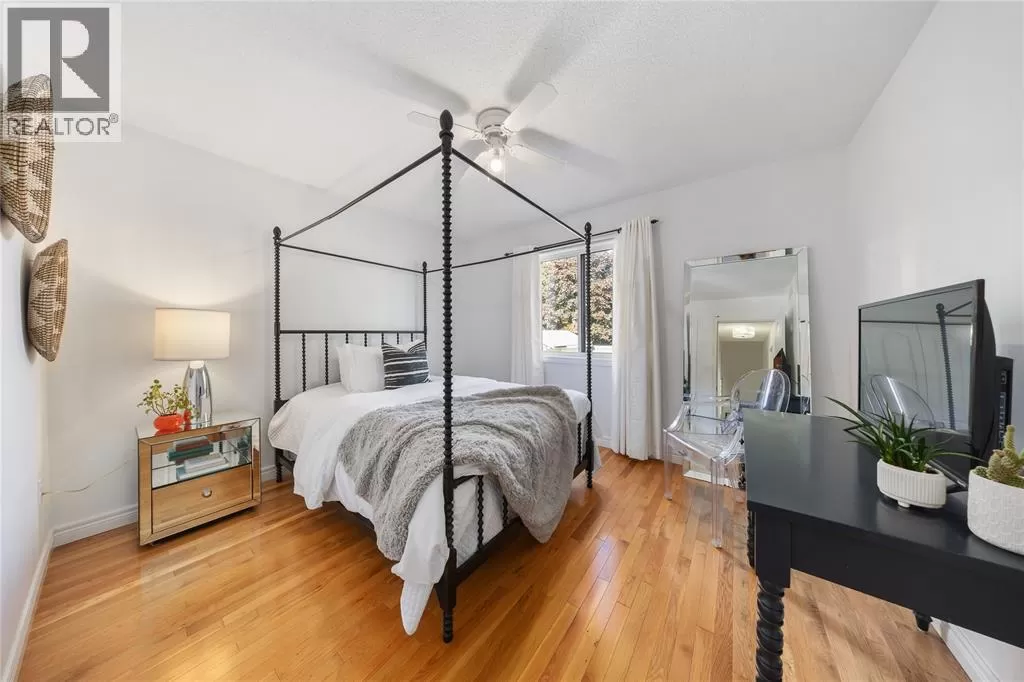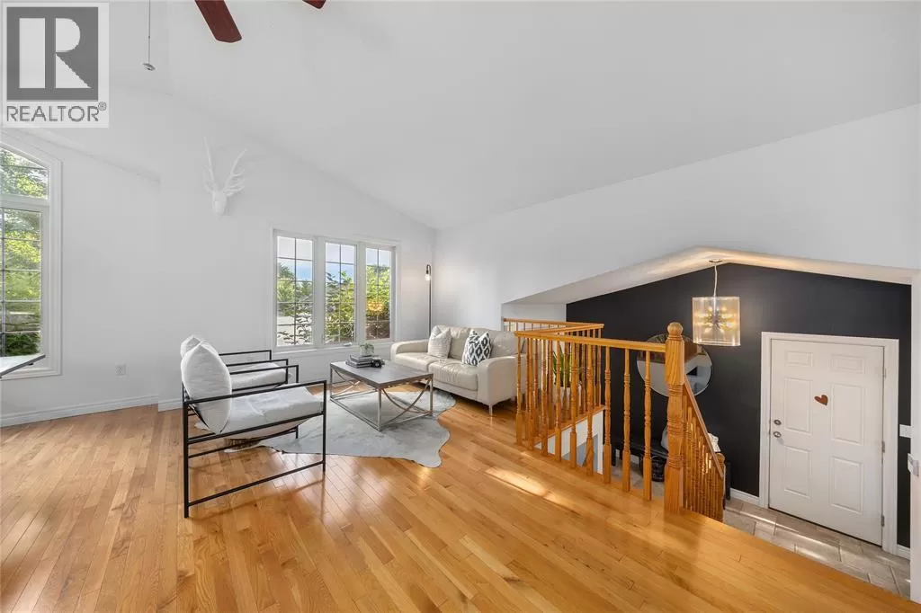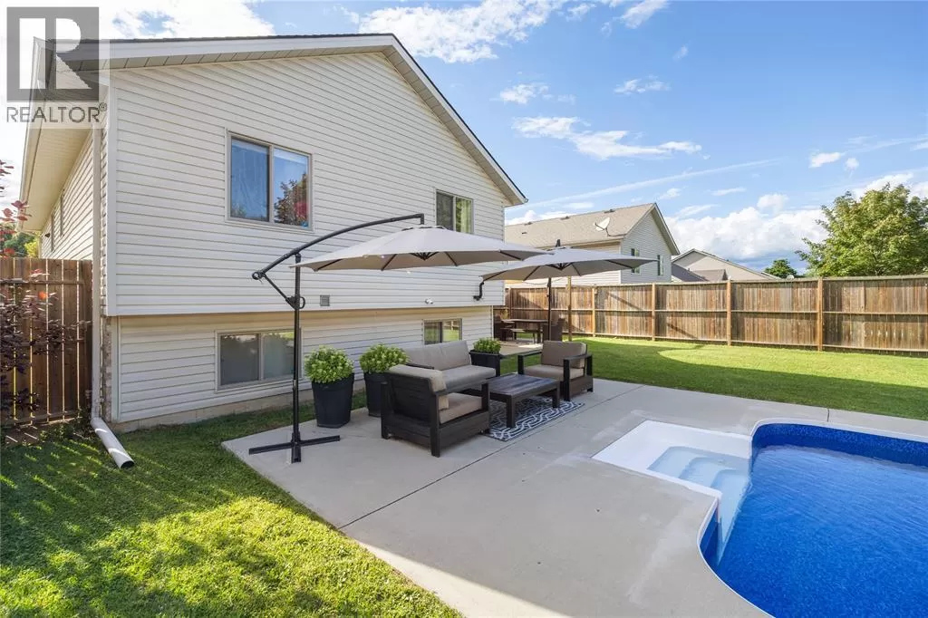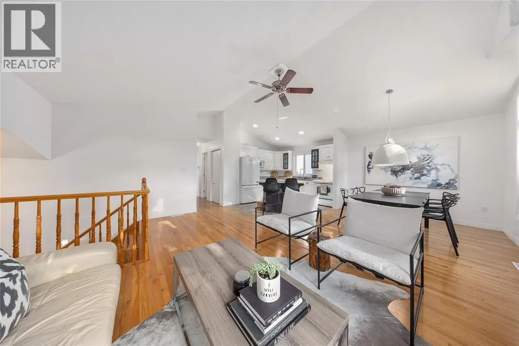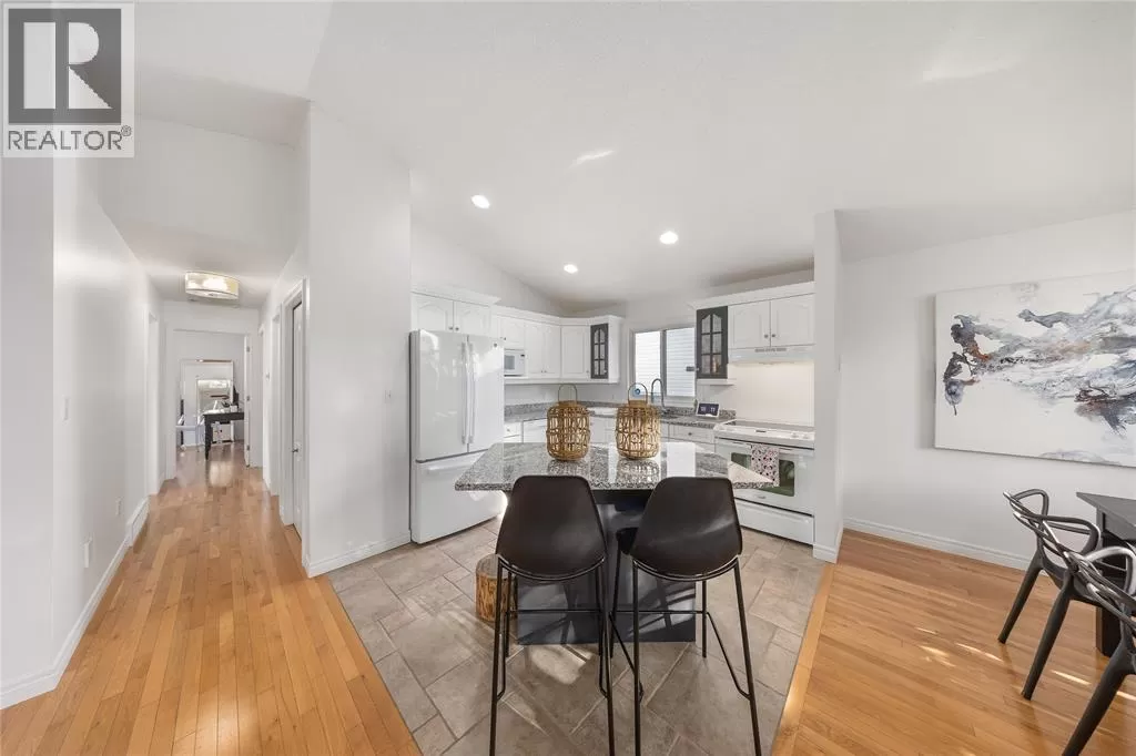 Welcome to this beautiful and well-maintained 3+1 bedroom, 2 bathroom home! Greet friends and family in the inviting front foyer, then head upstairs to the gleaming hardwood floors that carry through the living room, dinette, hallway, and main floor bedrooms. The open-concept design showcases cathedral ceilings, a spacious kitchen island, and abundant cabinetry, all highlighted by modern decor. The lower level offers a generous recreation room with a cozy comer gas fireplace, a 3-piece bathroom, laundry room, utility room, and a large unfinished area-ideal for extra bedrooms, a teen retreat, or plenty of storage. Step outside to a fully fenced backyard featuring an inground pool, the pool is 25â x 15' , with a gas Heater, sand Filter, new liner in 2024, a vinyl-sided garden shed with new shingles, and a shaded patio-perfect for relaxing or entertainment .Additional highlights include a single attached garage with automatic door opener and direct access into the home, Central Vac and all Appliances. This home shows beautifully and is ready for quick possession! (id:27476)