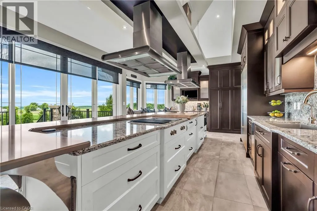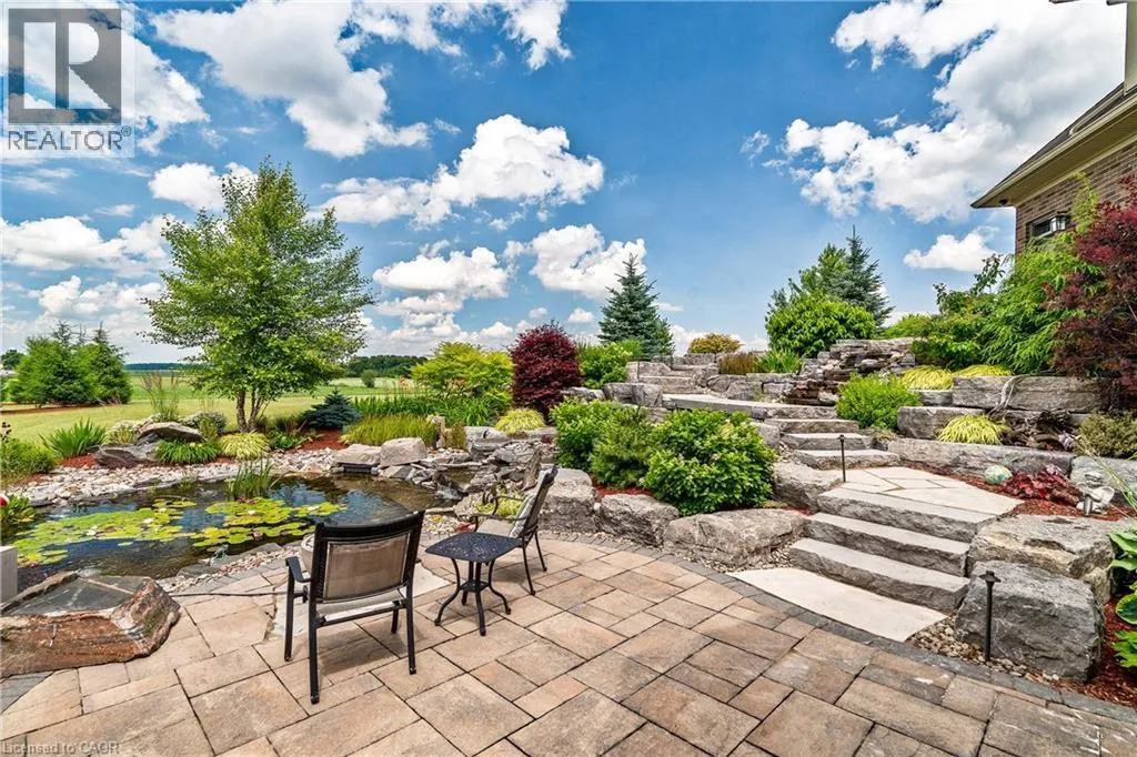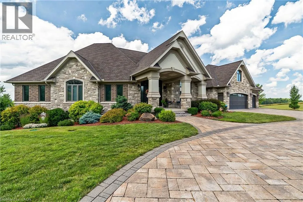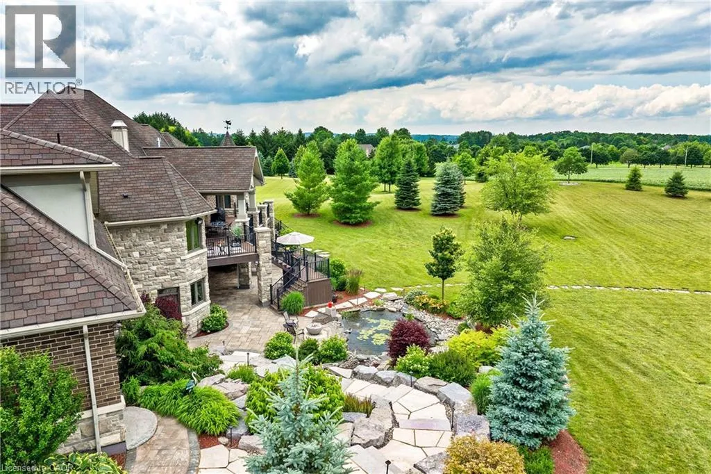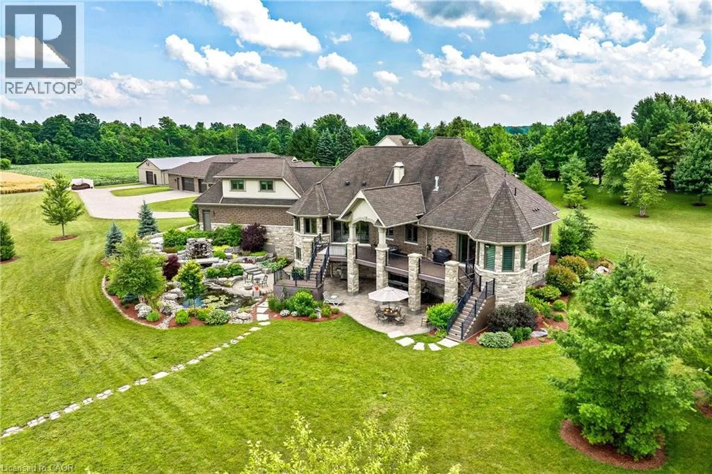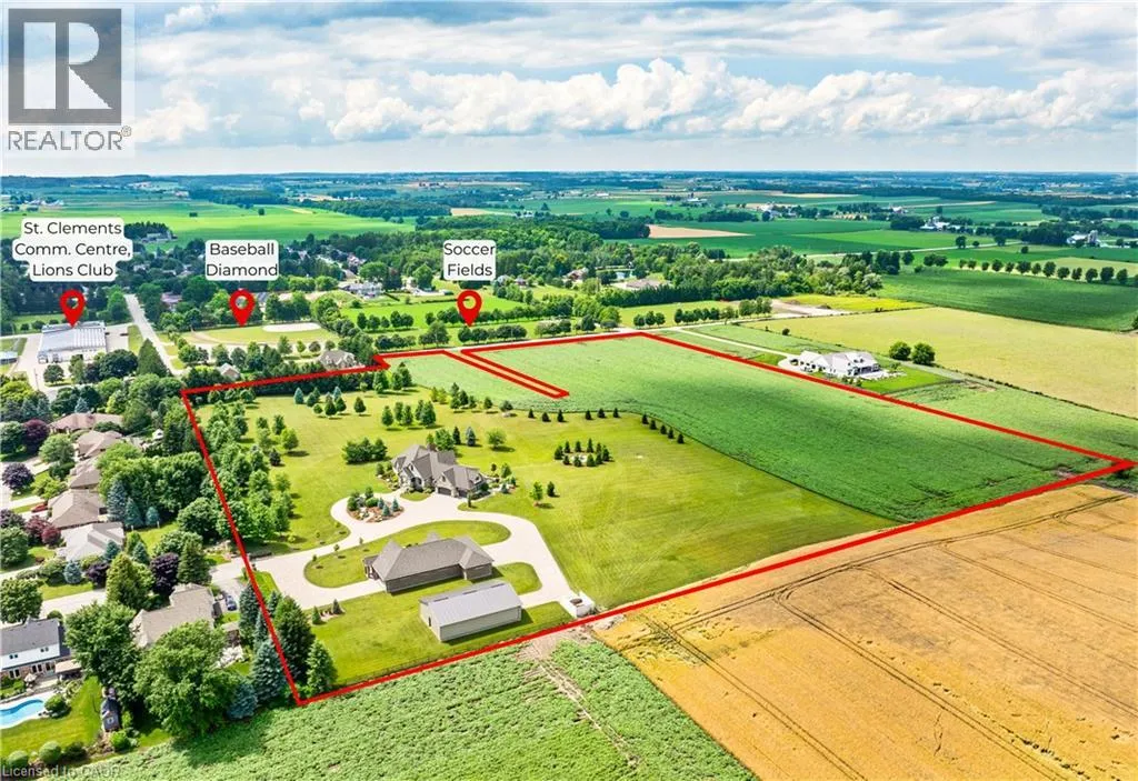 Lobsinger Line to Anita Drive A rare offering in the prestigious countryside of St. Clementsâ46 Anita Drive is an 18.28-acre gated luxury estate that elevates refined country living. Beyond the custom iron gates, a 900 ft interlock drive leads to meticulously landscaped grounds revealing a showpiece 12ft granite Inukshuk roundabout. The $1M+ surrounding landscape/hardscape includes spectacular mature gardens and trees, a grand armour stone and granite waterfall cascading into a tranquil pond-crafted for privacy and prestige. Main residence exterior is a complementary blend of brick, stone and stucco spanning 7,325 sf on 3 levels. Radiant in-floor heating and Savant smart home automation throughout including garages. Vaulted ceilings, detailed poplar, oak and maple millwork and handcrafted finishes elevate every space. The home is filled with character and grandeur, featuring a double staircase leading from the upper deck down to the lower patio. At the heart of the home, a designer chefâs kitchen features Gaggenau appliances including range, teppanyaki, charcoal grill, 17 ft Cambria/Caesarstone quartz island, Cambria counters and backsplashes seamlessly flow into the sunlit family room that shares a 3-sided gas fireplace. The primary suite is a private retreat with a spa-like 9-piece ensuite, heated floors, surround sound, serene turret sitting area and boutique-style dressing room. The walk-out lower level is an entertainerâs dream-offering a custom bar, custom natural stone floor-to-ceiling gas fireplace, home theatre, gym & guest rooms. A 3,500 sf heated workshop/coach house with 11 ft ceilings and triple garage doors offers a workshop paradise or auxiliary residence conversion potential. In addition there is also a 2,468 sf steel storage building with custom steel pallet racking for 72 skids completes this extraordinary estate. Has potential for a unique equestrian setup. Fully irrigated around all three building perimeters, zoned A1 Agricultural, and min. to Waterloo and highway access. (id:27476)