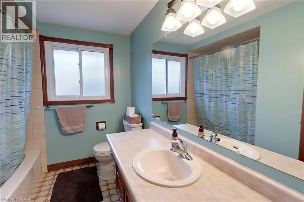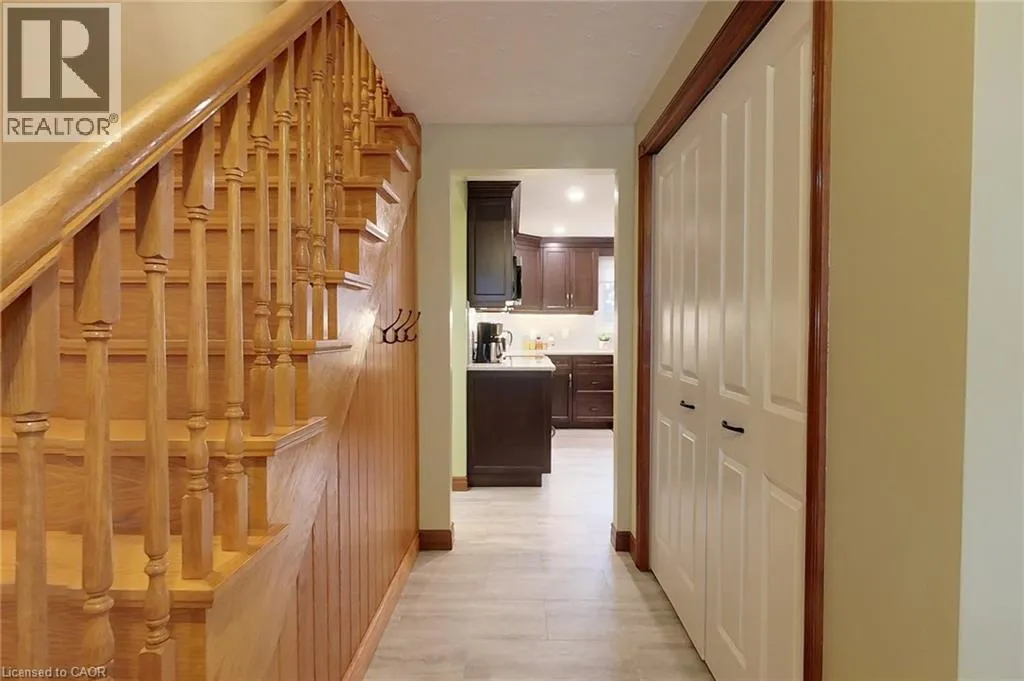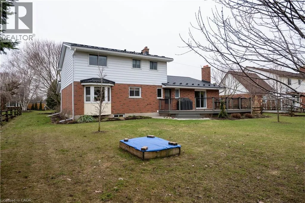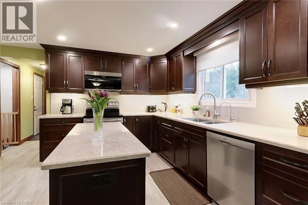 From Lobsinger Line, turn right on to Herrgott Road, at the main intersection in St. Clements. Turn left on Sunset Drive & left on Expo Drive. Subject property on the east (left) side of the street. Well maintained 2 storey in a desirable neighborhood with other executive homes nearby! Wonderful curb appeal with a newer metal roof, aluminum eavestroughing & soffits, a spacious stamped concrete driveway & a welcoming front porch - only to mention the front of the home! The back yard is very large and offers stamped concrete walk ways, composite deck, garden shed & nicely landscaped! The interior has had many professional renovations - opening up walls between the L.R. & D.R. & adding pot lights, replacing the bay window, a brand new maple kitchen in 2020, complete w/ceramic backsplash, quartz counter tops, fixed island, stainless steel appliances & luxury vinyl plank flooring. Main floor laundry room with access to the rear deck and a 2 piece powder room. Main floor family room w/wood burning fireplace (not been used by this owner), laminate flooring & sliders to the deck. Hardwood staircase to the upper floor which includes 3 bedrooms, all with hardwood flooring. The primary bedroom has an updated 3 piece ensuite (2023) & the other 2 bedrooms share a 4 piece bathroom. The basement is finished with a rec room, games area w/dry bar & a woodstove that has been disconnected, office, large utility room & cold room. Updated electrical panel - 200 amp., gas furnace replaced in 2007, central air conditioner replaced in 2020, basement windows (2021), garage door openers (2019). You won't be disappointed! (id:27476)