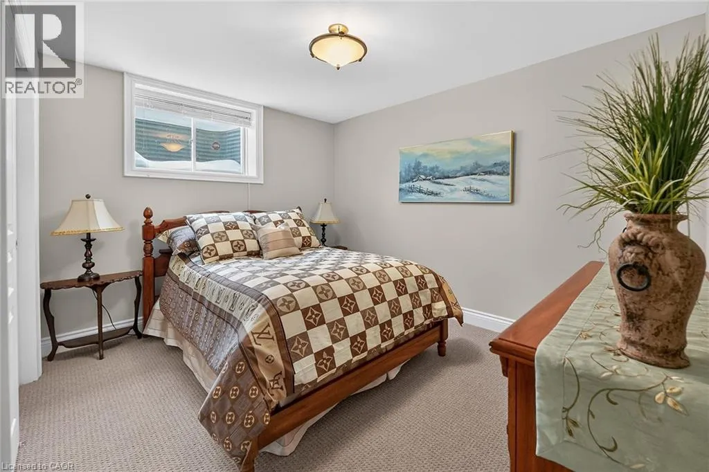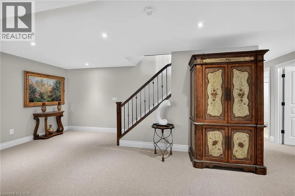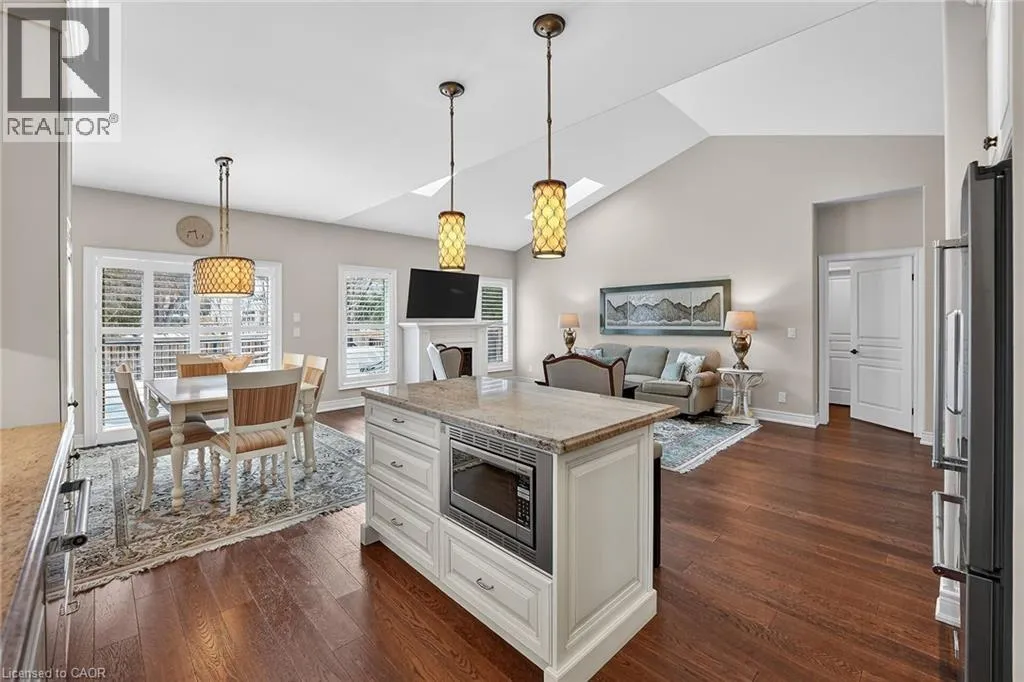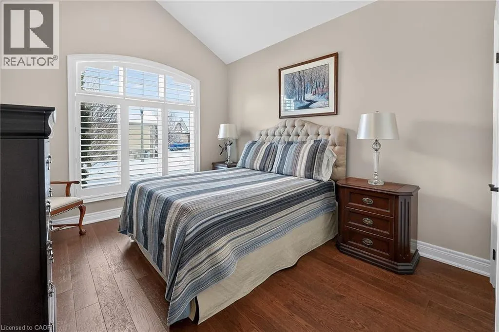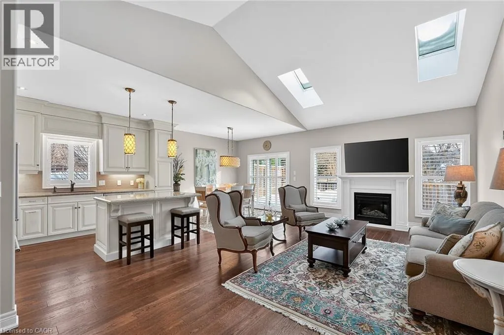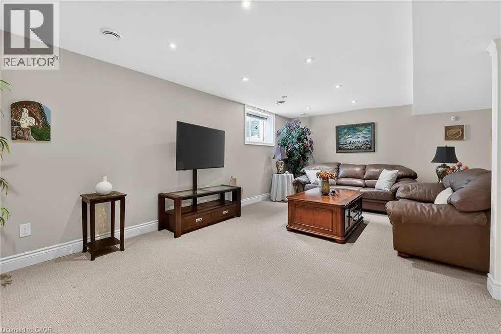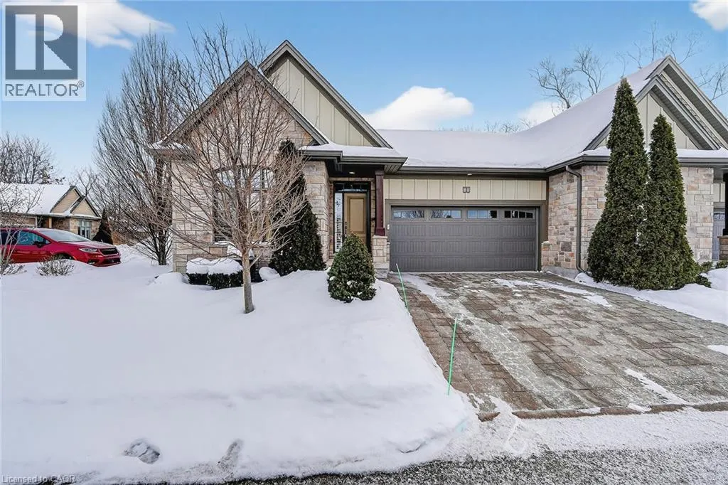 York Road, South on Tanbark, East on Pinecroft Stunning St. Davids Bungalow Townhome: Unrivaled Privacy & Master Craftsmanship Experience maintenance-free luxury in this executive end-unit bungalow townhome, perfectly situated in the prestigious St. Davids community. From the moment you arrive, the stone exterior, interlock double drive, and professional landscaping set a sophisticated tone. The interior reveals over 2,200 sq. ft. of refined living space defined by cove ceilings, low-sheen hardwood, and California shutters. The chef-inspired kitchen features premium solid-surface counters, an expansive breakfast bar, and an abundance of cabinetry. Bathed in natural light from skylights and vaulted ceilings, the living room offers a cozy gas fireplaceâthe heart of the home. Retreat to the primary suite featuring a walk-in closet and private ensuite, or host guests in the airy front bedroom with its own vaulted ceilings. The fully finished lower level feels like an extension of the main floor, boasting large windows in every room, a spacious rec room, two additional bedrooms, and a 3-piece bath. Step outside to your private oasis: a large composite deck with an electric awning overlooking a serene, treed view. Low condo fees cover snow and lawn care, ensuring a lifestyle of pure relaxation. (id:27476)