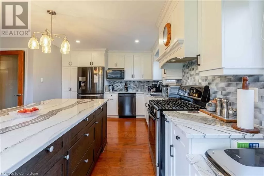 German School Rd to Main St. S. Subdivision Draft plan for future surrounding land development site, Attention Investors purchase this 7.4 acres of potential development land today. Welcome to 183 Main St South in the rapidly expanding County of Brant. This property boasts a wonderfully kept 3 bed, 2 full bath home situated in a Prime location on the Main street leading out of St George, dubbed Canada's Friendliest Little Town. There are MANY opportunities for development here, as the city continues their preparations to accommodate Construction Phases from Builders such as Losani and Empire. This is your chance to be a part of the action! Features of the home include a bright and beautiful updated kitchen (2018) with quartz counters, Black Stainless Steel Appliances and oversized island. LED lighting and Hardwood floors throughout the home, metal roof (2012), upgraded HVAC system featuring an Ultra Violet Air Purifier and so much more. Don't miss out on this opportunity! (id:27476)