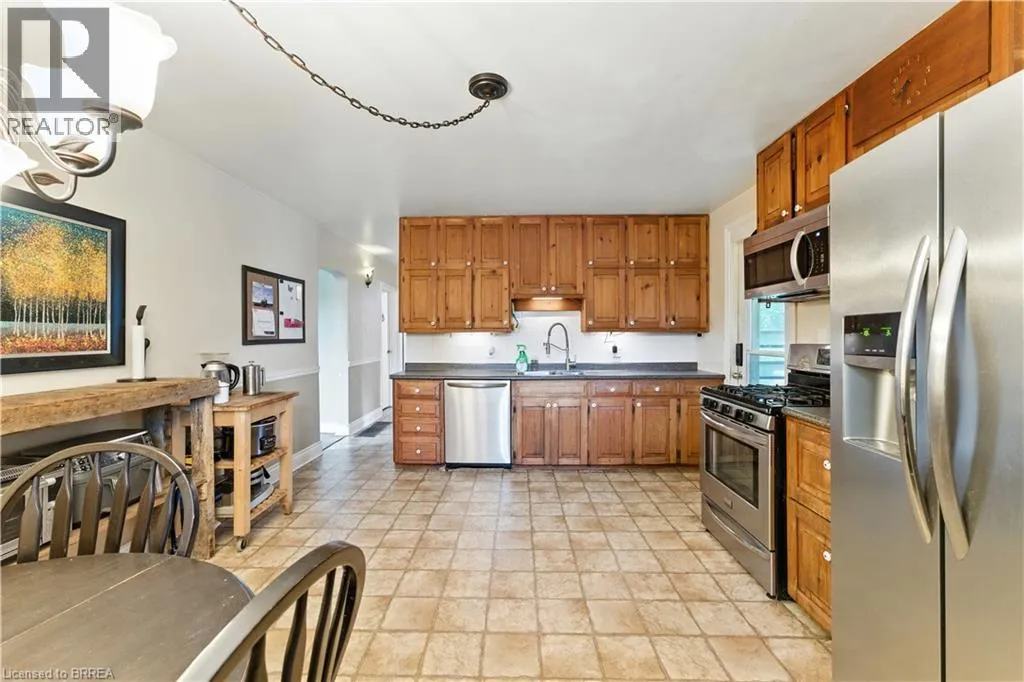 Main st north St. George 3 bedroom bungalow located on a deep 204 ft lot. Handymen and self employed will love the huge detached shop with heat and hydro. Main floor living room, large eat in kitchen with walk out to a 3 season sunroom that overlooks the private tree lined yard with firepit. Finished rec room in the basement, second bathroom roughed in. Plenty of living space. Walk to downtown, school, and parks (id:27476)