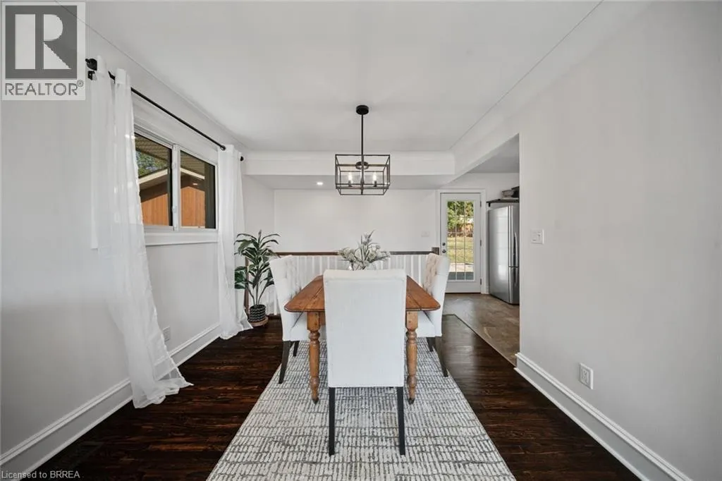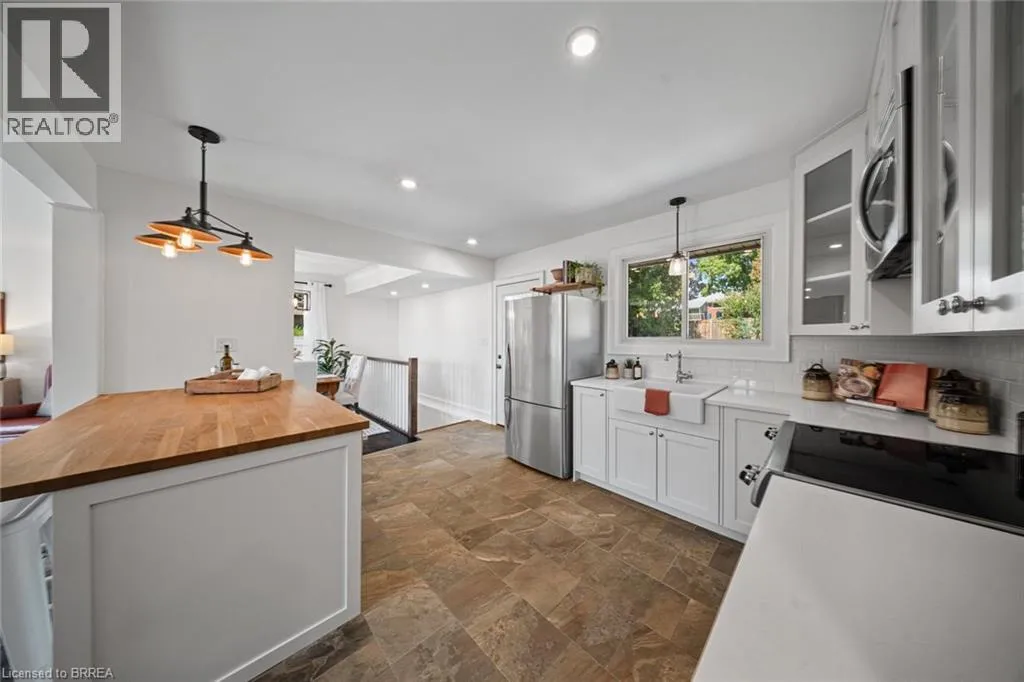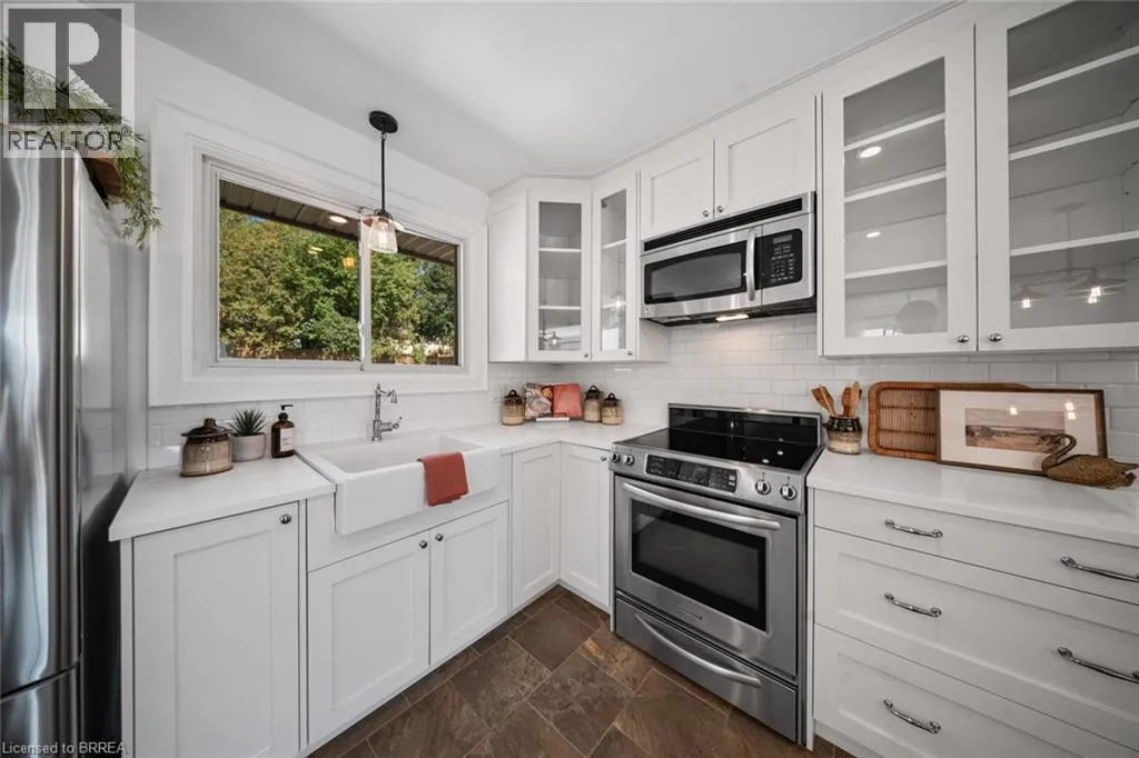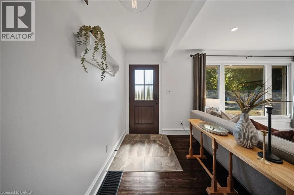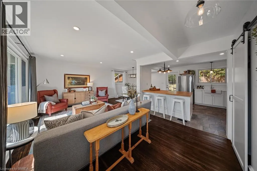 Main Street North to Church Ave, Turn on Lillian, Left on to Phillip Welcome to 9 Phillip Street, St. George - an exquisite brick bungalow that seamlessly blends classic charm with modern luxury. This home has been fully renovated from top to bottom, offering a turn-key living experience in one of Brant County's most sought-after communities. Step inside and be captivated by the open-concept main floor, featuring refinished original hardwood floors and an abundance of natural light. The gourmet kitchen is a chef's dream, boasting stainless steel appliances, quartz countertops, and a large island perfect for entertaining. The spacious living and dining areas flow effortlessly, creating an ideal space for family gatherings and cozy nights in. The main level also includes three bedrooms, all featuring custom cabinetry giving you plenty of storage space, and an updated bathroom with a tiled shower and large tub. The fully finished basement provides even more living space, with a large recreation room, space to add a fourth bedroom, and a full bathroom, offering flexibility for a home office, gym, or guest suite. Outside, the large, private backyard is a blank canvas, ready for your landscaping dreams. The mature trees and deck provide the perfect backdrop for summer barbecues and outdoor relaxation. The heated two car garage has its own 60AMP electrical panel, perfect for working on projects year round. Located in the heart of St. George, this home is just a short walk from local restaurants, shops, parks, and schools, and offers easy access to the 403 for a quick commute to Brantford, Cambridge, or Hamilton. Don't miss this opportunity to own a piece of paradise in Brant County. Updates include 200 AMP electrical 2024, shingles 2022, soffit/fascia/eaves 2024, A/C 2024, basement bathroom 2025, basement windows 2024, front door 2022, deck 2021 (id:27476)
