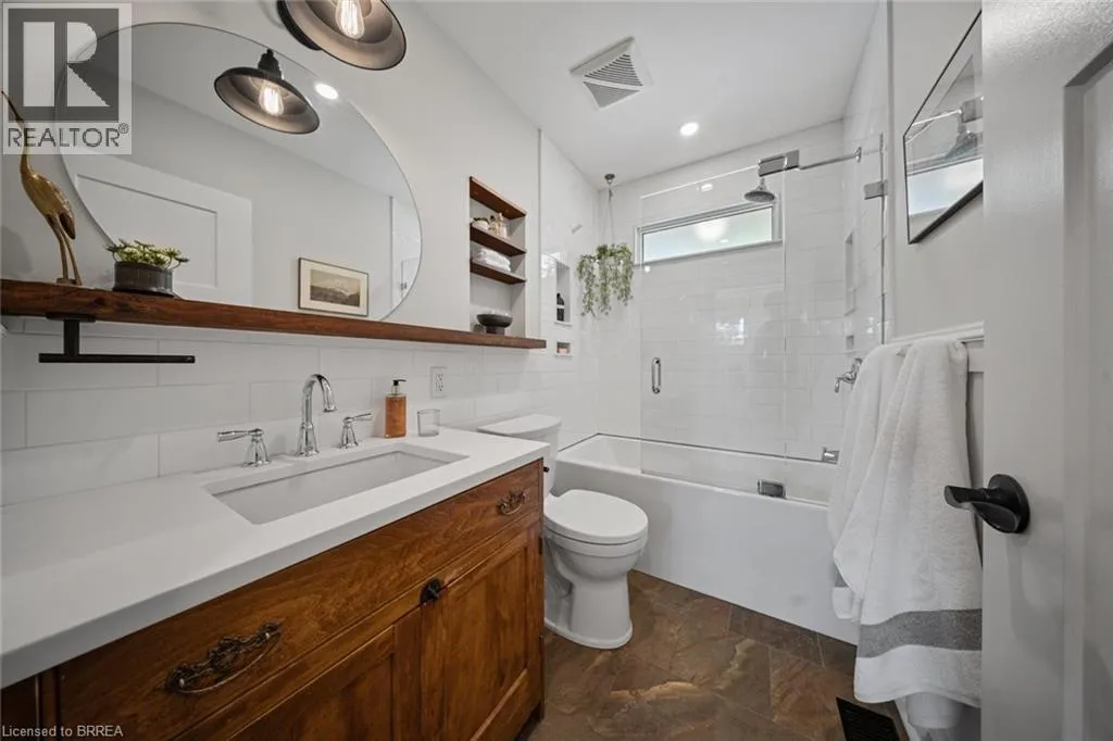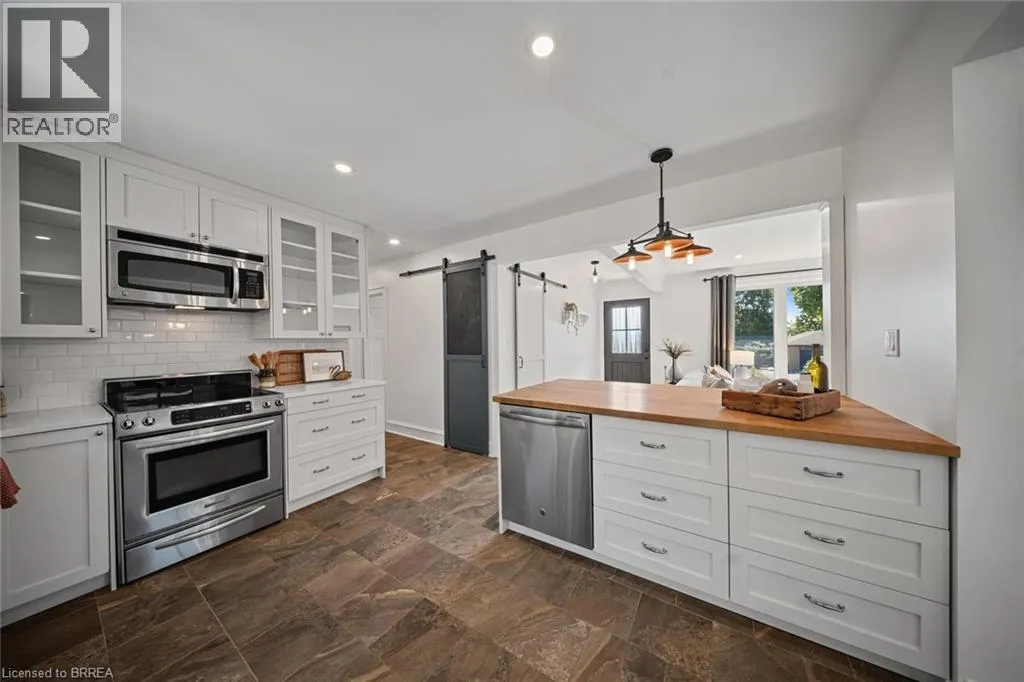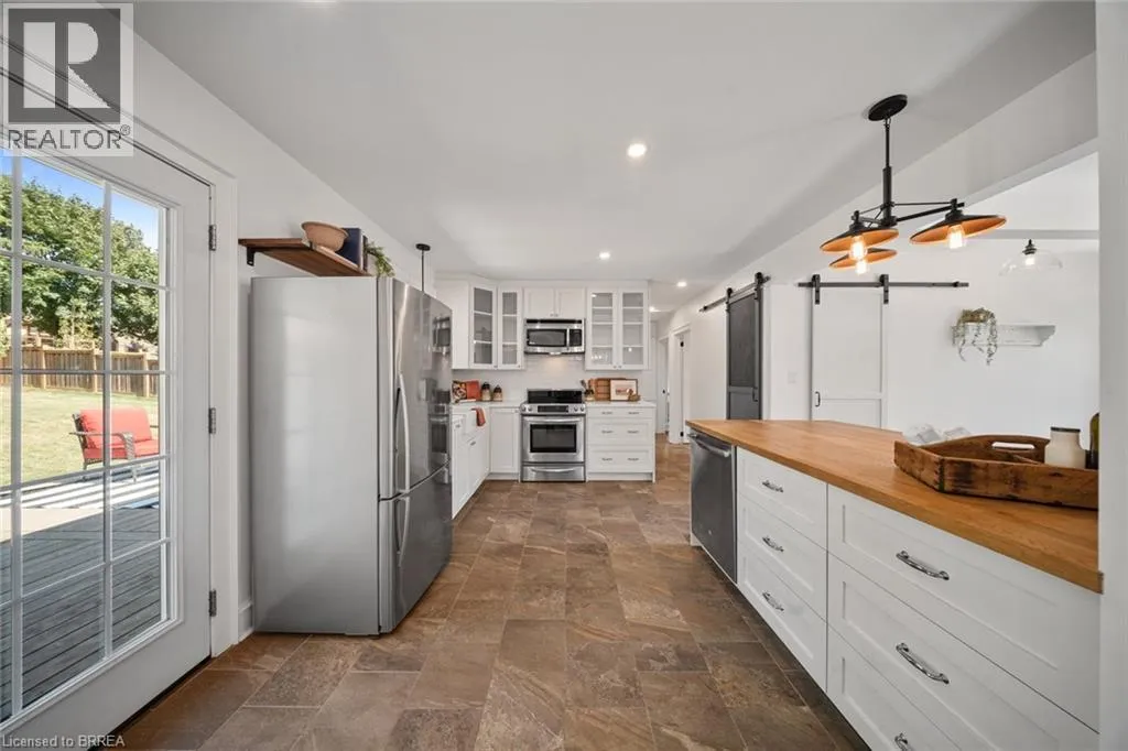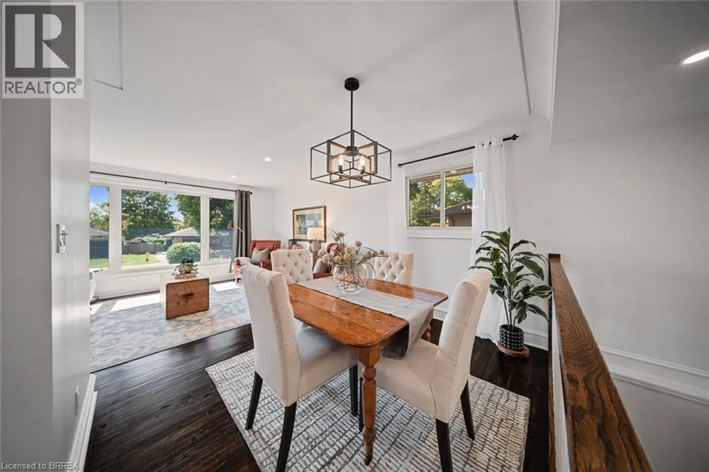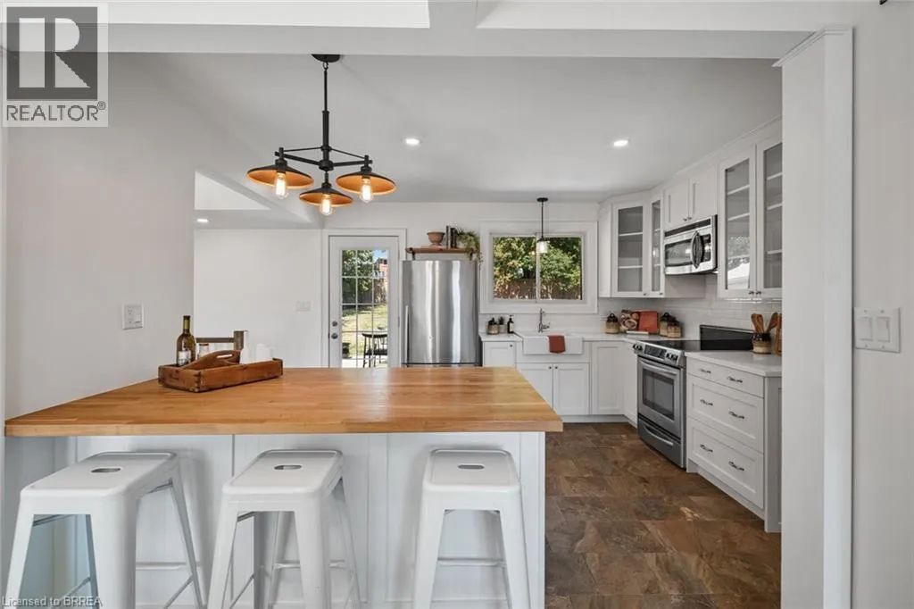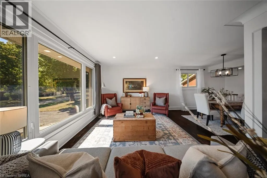 Main Street North to Church Ave, Turn on Lillian, Left on to Phillip Welcome to 9 Phillip Street, St. George - an exquisite brick bungalow that seamlessly blends classic charm with modern luxury. This home has been fully renovated from top to bottom, offering a turn-key living experience in one of Brant County's most sought-after communities. Step inside and be captivated by the open-concept main floor, featuring refinished original hardwood floors and an abundance of natural light. The gourmet kitchen is a chef's dream, boasting stainless steel appliances, quartz countertops, and a large island perfect for entertaining. The spacious living and dining areas flow effortlessly, creating an ideal space for family gatherings and cozy nights in. The main level also includes three bedrooms, all featuring custom cabinetry giving you plenty of storage space, and an updated bathroom with a tiled shower and large tub. The fully finished basement provides even more living space, with a large recreation room, space to add a fourth bedroom, and a full bathroom, offering flexibility for a home office, gym, or guest suite. Outside, the large, private backyard is a blank canvas, ready for your landscaping dreams. The mature trees and deck provide the perfect backdrop for summer barbecues and outdoor relaxation. The heated two car garage has its own 60AMP electrical panel, perfect for working on projects year round. Located in the heart of St. George, this home is just a short walk from local restaurants, shops, parks, and schools, and offers easy access to the 403 for a quick commute to Brantford, Cambridge, or Hamilton. Don't miss this opportunity to own a piece of paradise in Brant County. Updates include 200 AMP electrical 2024, shingles 2022, soffit/fascia/eaves 2024, A/C 2024, basement bathroom 2025, basement windows 2024, front door 2022, deck 2021 (id:27476)