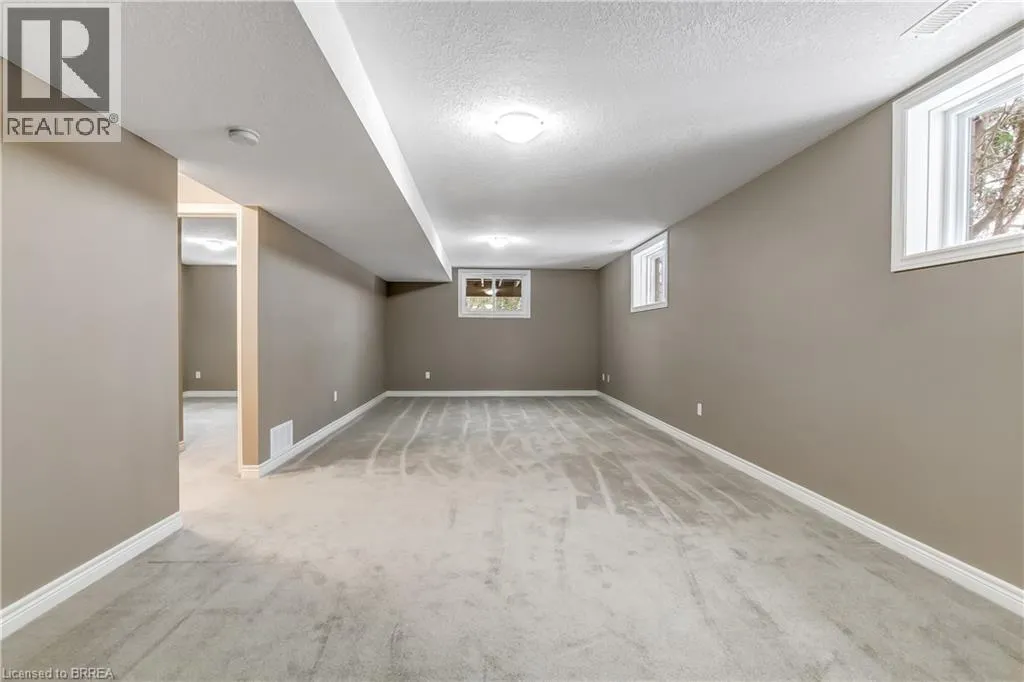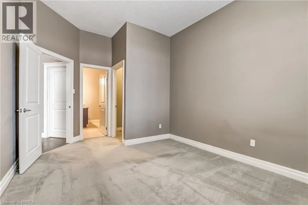 Beverly Street East to Reid Welcome to an exclusive enclave of bungalow townhome condominiums in the highly desirable village of St. George. Enjoy a perfect balance of convenience and tranquilityâclose to all amenities, yet far enough to embrace a quiet, carefree lifestyle. This beautifully upgraded end-unit, known as The Taylor, offers 1,753 sq. ft. of finished living space and was the builderâs former model suite, showcasing premium finishes throughout. The professionally landscaped, park-like setting provides maintenance-free living, including lawn care and snow removal. The bright main floor features cathedral ceilings in the great room and kitchen, 9â ceilings throughout, and upper transom and side windows that flood the space with natural light. The well-appointed kitchen boasts upgraded cabinetry, high-end granite countertops, a large walk-in pantry, and a gas fireplace with cultured stone surround anchoring the open-concept living area. Hardwood flooring enhances the great room, while ceramic tile finishes the foyer and bathrooms. The spacious primary suite offers a walk-in closet and a 4-piece ensuite with a tiled tub/shower to the ceiling. A main-floor den provides flexibility as a home office or second main-floor bedroom, along with the convenience of main-floor laundry. The fully finished lower level includes a large recreation room, an additional bedroom with walk-in closet, and a 3-piece bath with a walk-in tiled shower and upgraded fixtures. Oversized basement windows provide exceptional natural light. Backing onto mature trees, the private rear deck is ideal for outdoor entertaining. Just move in and enjoy this exceptional end-unit condo in a quiet, welcoming community. (id:27476)
