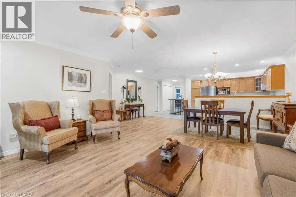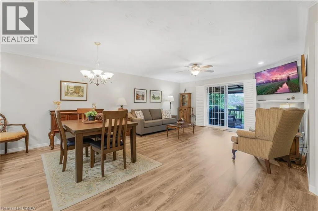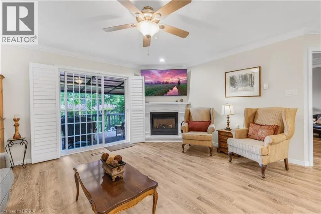 East from the traffic light in St. George on Beverly Street (Hwy 5). Welcome to 53 Beverly Street East, Unit #21, in the charming town of St. George! This stylish bungalow-style Condominium is thoughtfully crafted to combine functionality with modern charm, offering an inviting retreat in the heart of this picturesque community. Step inside to a bright and airy open-concept main floor, where the well-appointed kitchen flows seamlessly into the dining and living areas. The functional kitchen is equipped with sleek stainless steel appliances, an abundance of cabinetry for all your storage needs, and a floor-to-ceiling pantry that provides both convenience and organization, all while blending style with everyday practicality. In the living room, cozy up by the warm and inviting gas fireplace or step through the sliding patio doors to a spacious 10x12 back deck with a gazeboâperfect for relaxing, entertaining, or simply taking in the beautiful view of the protected green space. The main-floor primary suite offers comfort and convenience with access to a stylish 4-piece bathroom and an integrated laundry area, creating a layout designed for easy living. The fully finished lower level enhances the homeâs versatility with a large recreation room, an additional bedroom, and another elegant 4-piece bathroomâideal for overnight guests or extended family. Additional features include elegant California shutters, tasteful décor throughout, and a maintenance-free lifestyle with all exterior upkeep conveniently taken care of for you. With its thoughtful design, modern comforts, and low-maintenance lifestyle, this home is perfect for those seeking both convenience and charm. Whether youâre looking to downsize, enjoy worry-free living, or simply settle into a welcoming community, 53 Beverly Street East, Unit #21 offers the ideal place to call home in the heart of St. George. (id:27476)