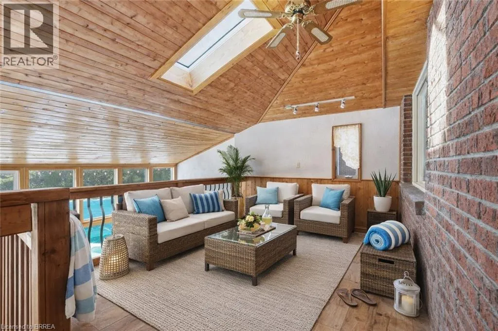 St. George 3 bedroom raised bungalow with indoor pool! Swimming in January just became a reality. 3 bedrooms plus an office, finished rec room, hardwood floors in the main floor family room with featured fireplace and built in mahogany cabinets. Kitchen and dining room overlook the pool area. Attached 2 car garage, no rear neighbours. Walking distance to school, parks, and the downtown. Bring your water wings!! (id:27476)