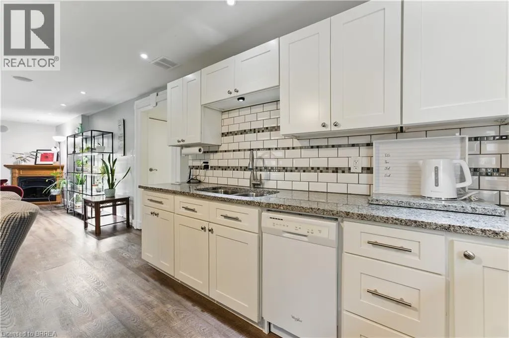 Beverly St. Single family home with inlaw suite in the heart of St. George, professionally landscaped on a quiet street. Main floor boasts new large tilting windows for natural light, 3 bedrooms, open concept family room and dining room with walk out to a large covered deck with natural gas bbq - a great space for entertaining. Main floor is finished out with an updated kitchen with tile backsplash and new flooring. The lower level features a new granite kitchen, recently renovated with two entrances to the side yard and to a covered patio area. Family room features an electric fireplace, built in speaker system for movie nights and an open concept dining room, a 5 pc bathroom, and two bedrooms with egress windows. Gardeners will love the yard with a 6x8 greenhouse, and a 10x12 shed for storage - start growing your own vegetables! Roof is 7 years old, eaves include leaf guards for peace of mind. 1.5 car attached garage with heavy storage shelves for plenty of storage space. Exposes aggregate driveway with parking for 3 vehicles. Plenty of space for your family in the quiet land pleasant community of St. George (id:27476)