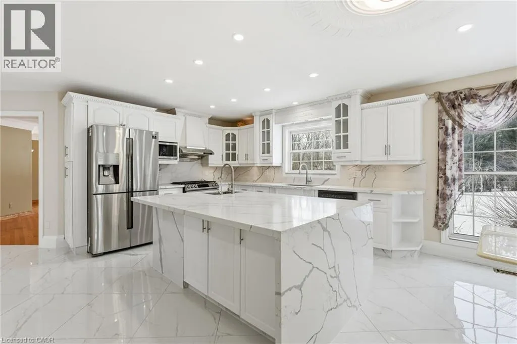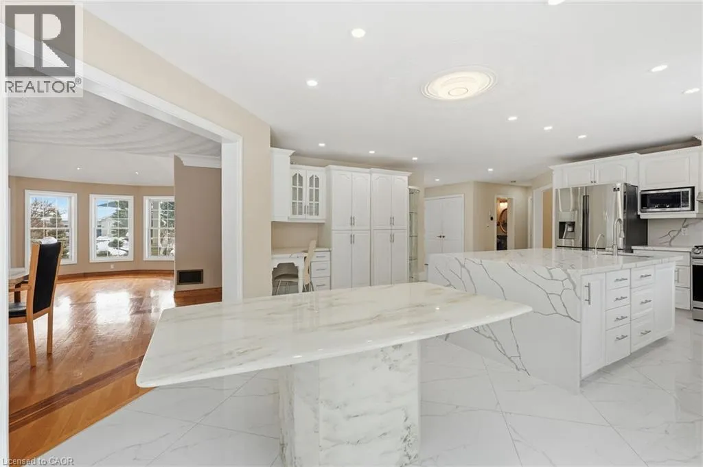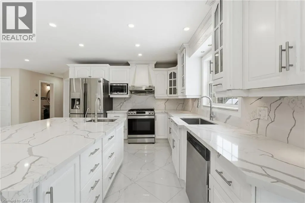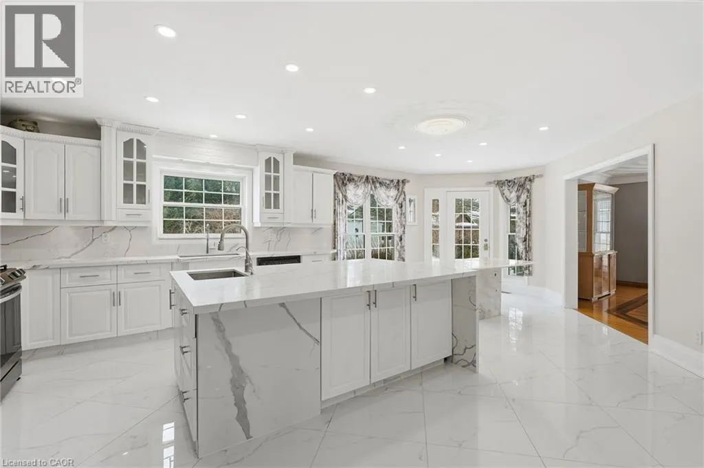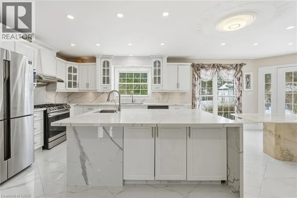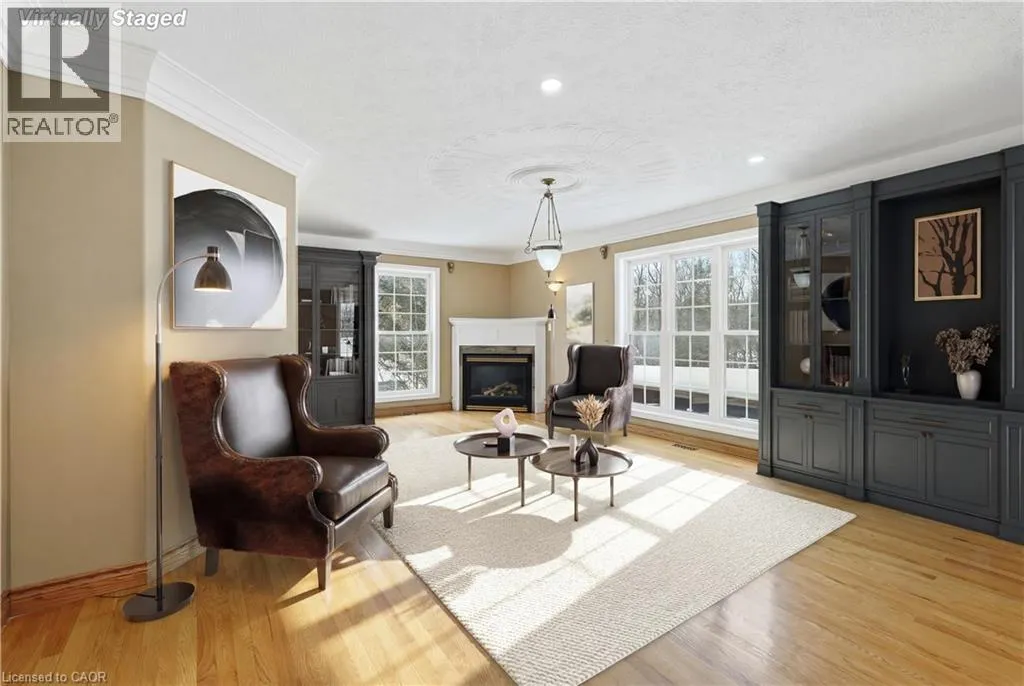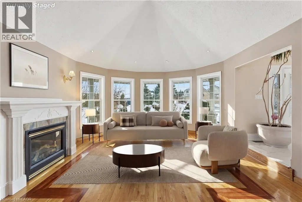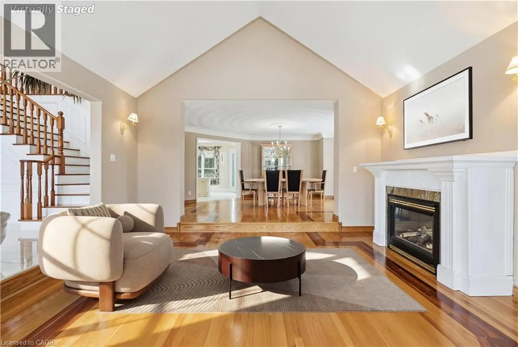 Main Street to Victor to Royal York Court Spectacular executive home in a desirable, mature neighbourhoods set away from the hustle and bustle of the big city life but close enough to everything you need. This impressive residence offers 6 bedrooms, 4 bathrooms, 4 fireplaces, a double garage set on a generous 0.41-acre lot combining timeless elegance with exceptional space for family living and entertaining. A grand entrance with soaring vaulted ceilings creates an immediate wow factor. The bright, chefâs kitchen features a gas stove and ample workspace, flowing seamlessly into formal living and dining roomsâperfect for hosting as it overlooks the lovely yard complete with outdoor entertaining amenities. Beautiful hardwood floors extend throughout the main and upper levels, complemented by tile in key areas. The primary bedroom retreat includes a cozy fireplace, walk-in closet, and private ensuite. The walk-out lower level opens directly to the yard and offers excellent potential for an in-law or income suite, or additional living space for a growing family. Homes of this calibre on lots of this size are rarely offered. Bring us an offer! Lease may be an optionâcall for details. (id:27476)