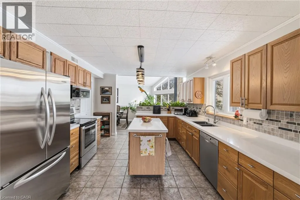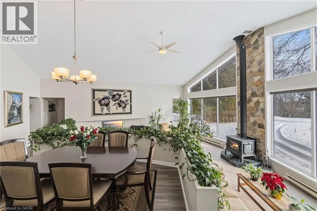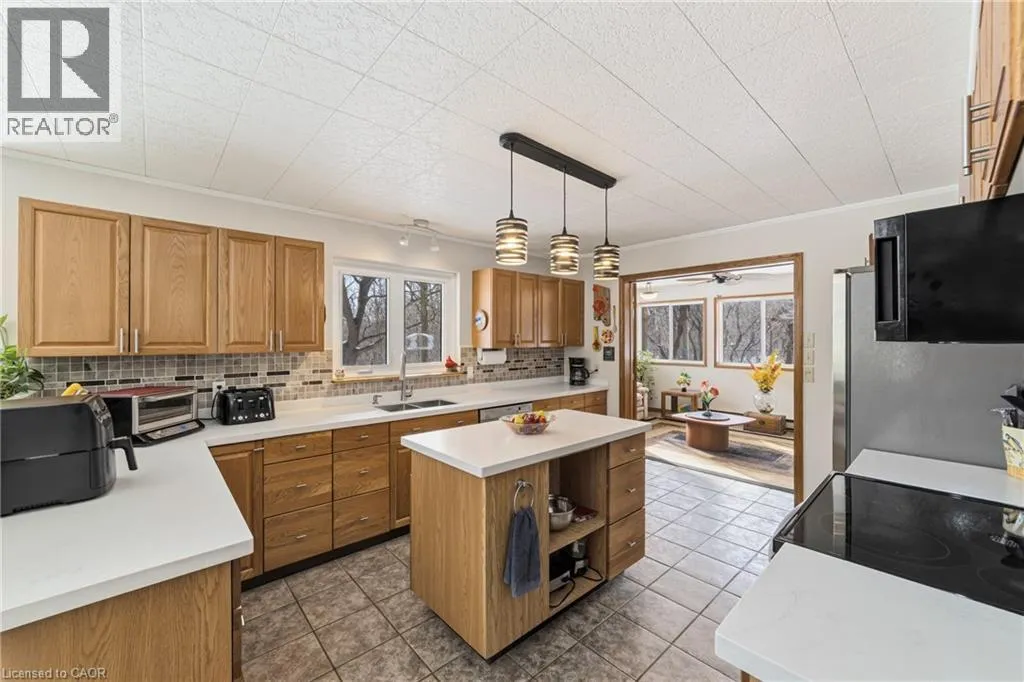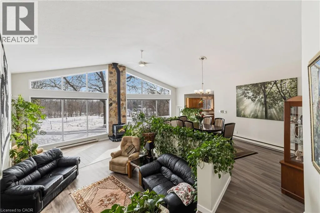 Highway 24 (Brant Rd), HWY 403/401 Custom built in 1983 and lovingly maintained by the same owners for over 40 years, this exceptional property offers a rare opportunity to embrace space, privacy, and sustainability. Set on 11 picturesque acres, the grounds feature mature trees, scenic walking trails, manicured lawns, a private pond with gazebo, and a stunning backyard patio complete with waterfall and koi pond-a true retreat-like setting.This approximately 4,000 sq. ft. bungalow offers 5+1 bedrooms and two kitchens, all on one level-ideal for seniors, young families, or multi-generational living. A full in-law suite provides excellent income potential (previous tenant paid $2,050/month). Now operating as a successful Airbnb. The office can also be converted to an additional bedroom if needed, adding even more flexibility for your family or guests.The home is super insulated and heated/cooled by cold-climate heat pumps, supporting an environmentally sustainable lifestyle. Surrounded by protected wetlands, the property is rich with wildlife, including Trumpeter swans, offering nature at your doorstep. Enjoy million-dollar views from the family room through dramatic cathedral-style windows.Additional highlights include open-concept living, quartz countertops, custom clerestory windows, soaker tub, and recently replaced shingles (2021/2023). Development potential adds further long-term value.Peacefully located within approximately one hour of Toronto and conveniently close to Cambridge, Kitchener, and Waterloo, this is an incredible opportunity to secure a private country estate with modern efficiency and endless possibilities. (id:27476)