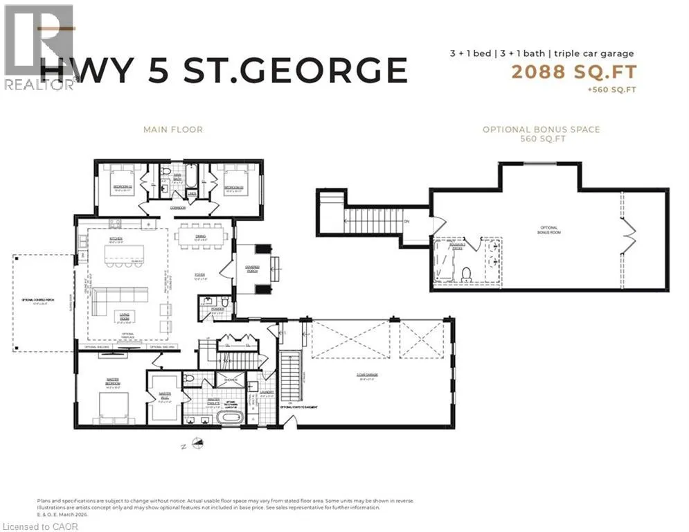 QUALITY CUSTOM BUILD! This all brick modern bungalow sits on a large half acre lot in sought after St. George. The home comes fully equipped with standard features as 9 and 10ft main floor ceilings. 8 ft interior doors. Engineered hardwood in the great room, kitchen, foyer and all hallways. Imported tile in all bathrooms. Impressive custom kitchen with a large centre island all with quartz kitchen counters. Split bedroom plan ensures a private primary bedroom with a large walk in closet and a luxurious 5 piece ensuite complete with a large glass walk in shower, stand alone bathtub and his/hers sinks. Tray ceilings in the kitchen and great room. Spacious triple car garage with an optional staircase to the basement. This home also offers its new buyers an option to add a 560 sq ft loft over the triple garage if the buyers requires even more space. Country living yet 2 mins from the town of St. George, 10 mins to Brantford and 15 mins to Cambridge! Customize this home to your exact specifications! Every home built to exceed expectations. Full 7 year tarion warranty for full peace of mind. (id:27476)