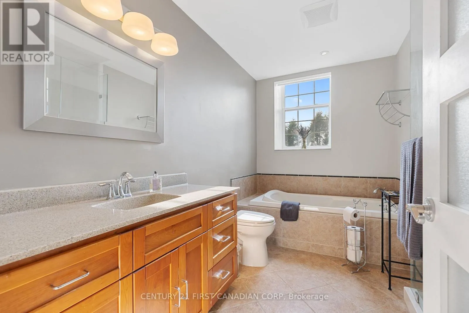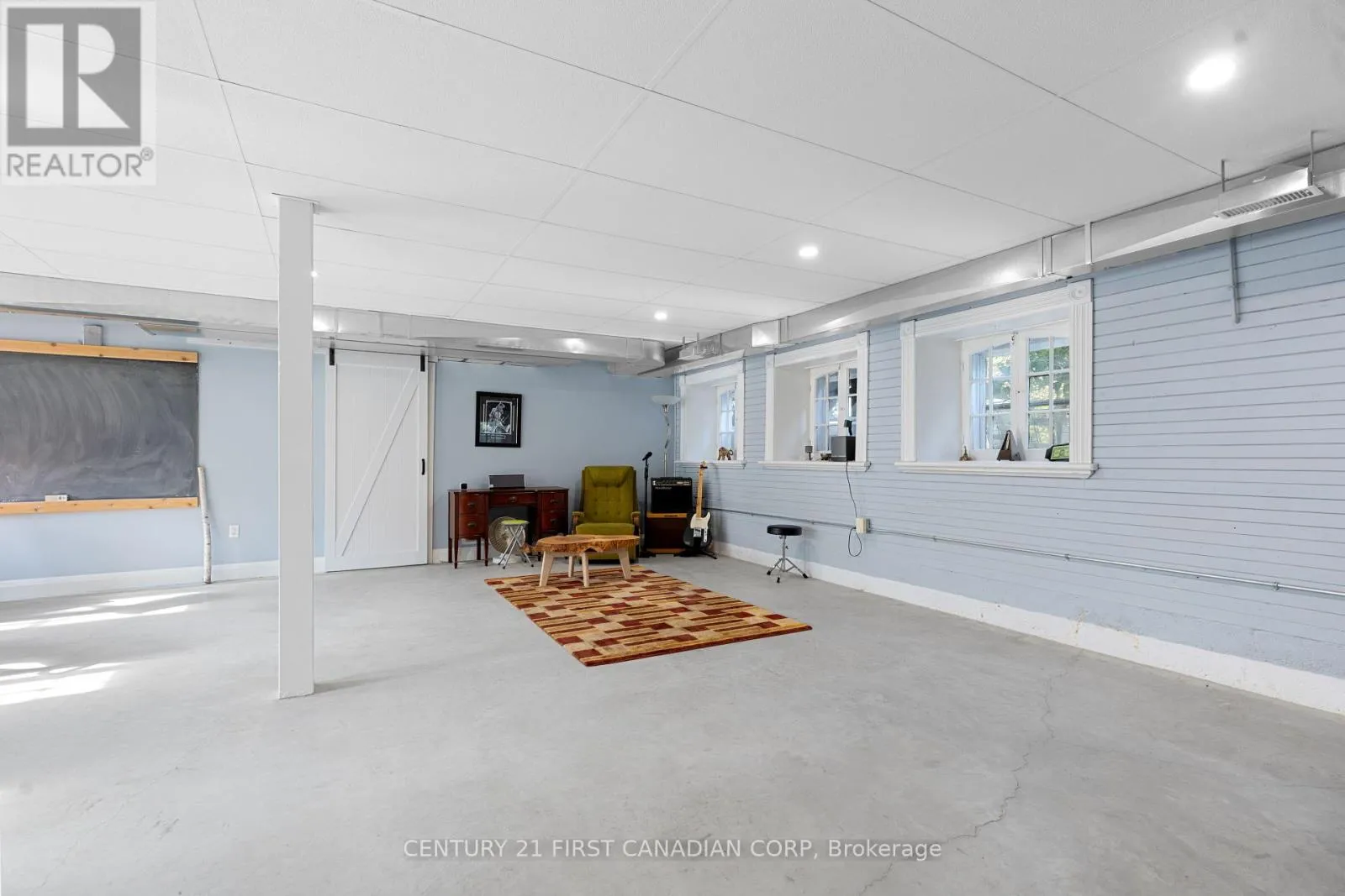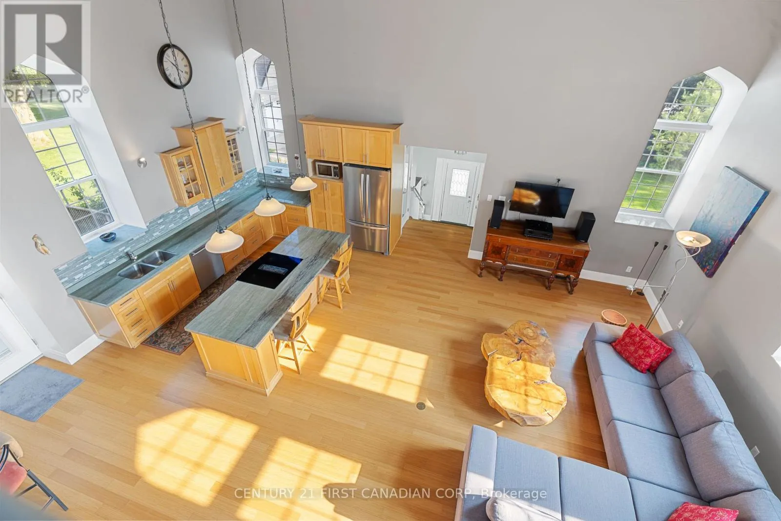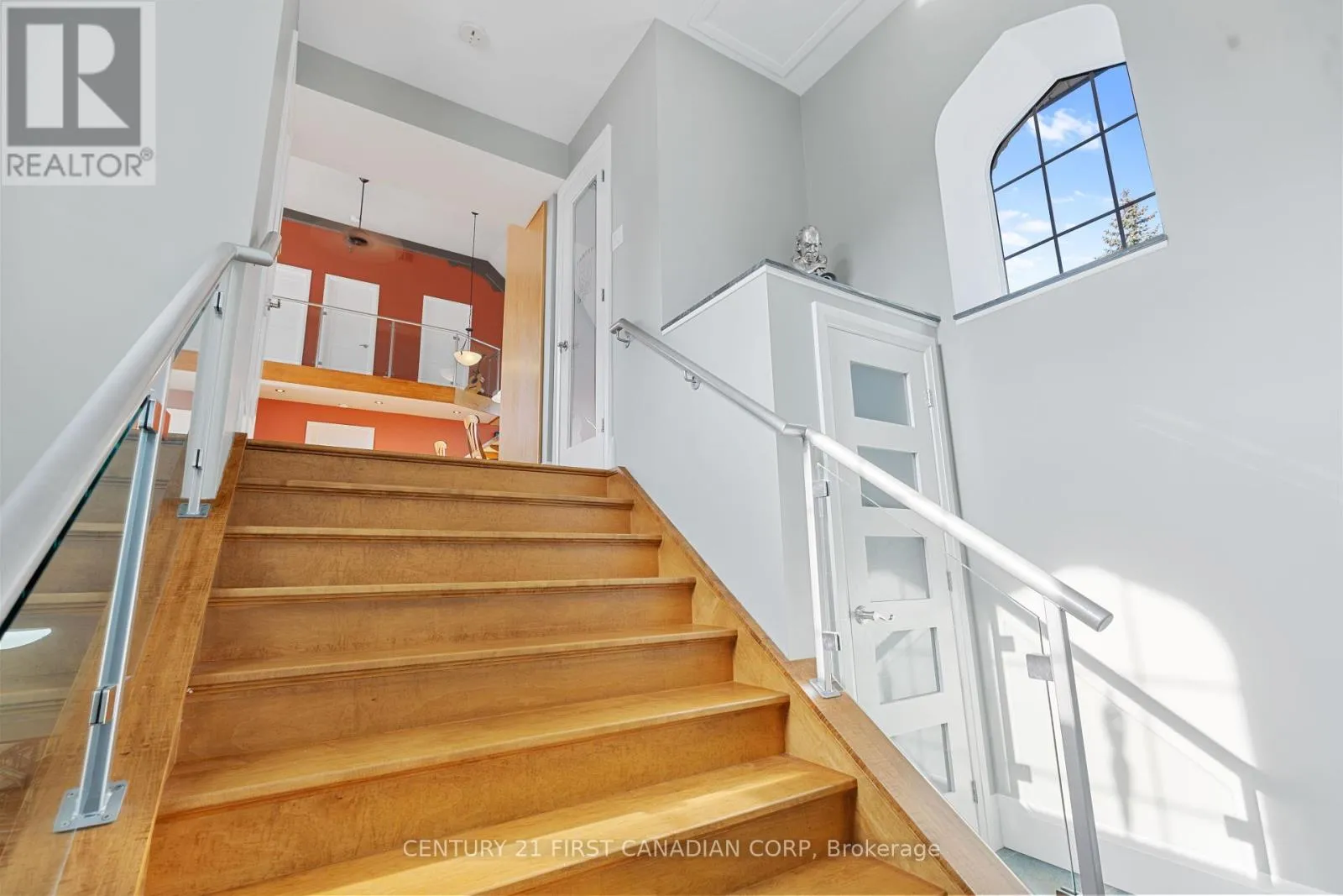 Cross Streets: PERTH RD 163 & PERTH RD 139. ** Directions: Whalen Line to Perth Rd 139. Imagine having the opportunity to immerse yourself in the rich history of an impeccably maintained and restored 1889 Limestone Schoolhouse in a quaint town outside of St.Marys. Surrounded by mature trees and hardly visible from the road is the former Rannoch Schoolhouse that helped educate hundreds of local children within its walls from 1889-1967. As you make your way inside you will be greeted with a large foyer with a wide staircase carrying you to the open concept main floor with bamboo flooring and soaring 20ft ceilings that have maintained the original rafter accents. The renovated kitchen offers granite countertops, tiled backsplash, and a pantry just outside of the kitchen. The Kitchen overlooks the dining and living space and is perfect for entertaining and enjoying home cooked meals with family and friends. The main floor also features the primary bedroom with a walk in closet and luxurious primary ensuite bathroom and a separate powder room off the main living space. The beautiful maple hardwood staircase with glass railings brings you to two more spacious bedrooms in the upstairs loft with 10ft high ceilings and a full 3 piece bathroom separating the two bedrooms. The gorgeous 8FT tempered glass windows have deep marble window sills and offer an abundance of natural light through all directions, you can even watch the sun rise and set all from inside your home. This is not your usual conversion of a heritage rich property, where often they lack sufficient usable space required for the modern day single family dwelling. This home has the character and beautiful architecture of a 1889 schoolhouse with tasteful modern day finishes that exemplify its beauty. There is also a large full basement with plenty of natural light pouring through the large above grade windows, a fourth bedroom, living space and laundry room. Outside there is an oversized 2 car garage (24FT X 26.5FT) built in 2008 with an upstairs loft for the perfect man cave, and 100amp service (id:27476)