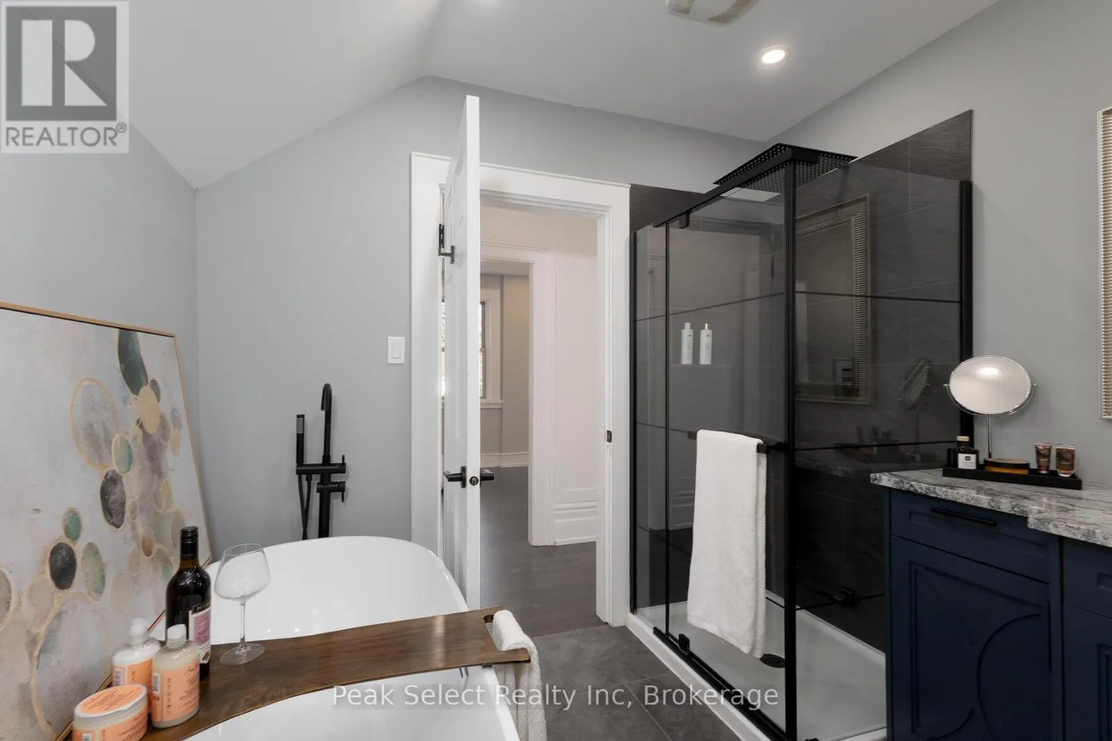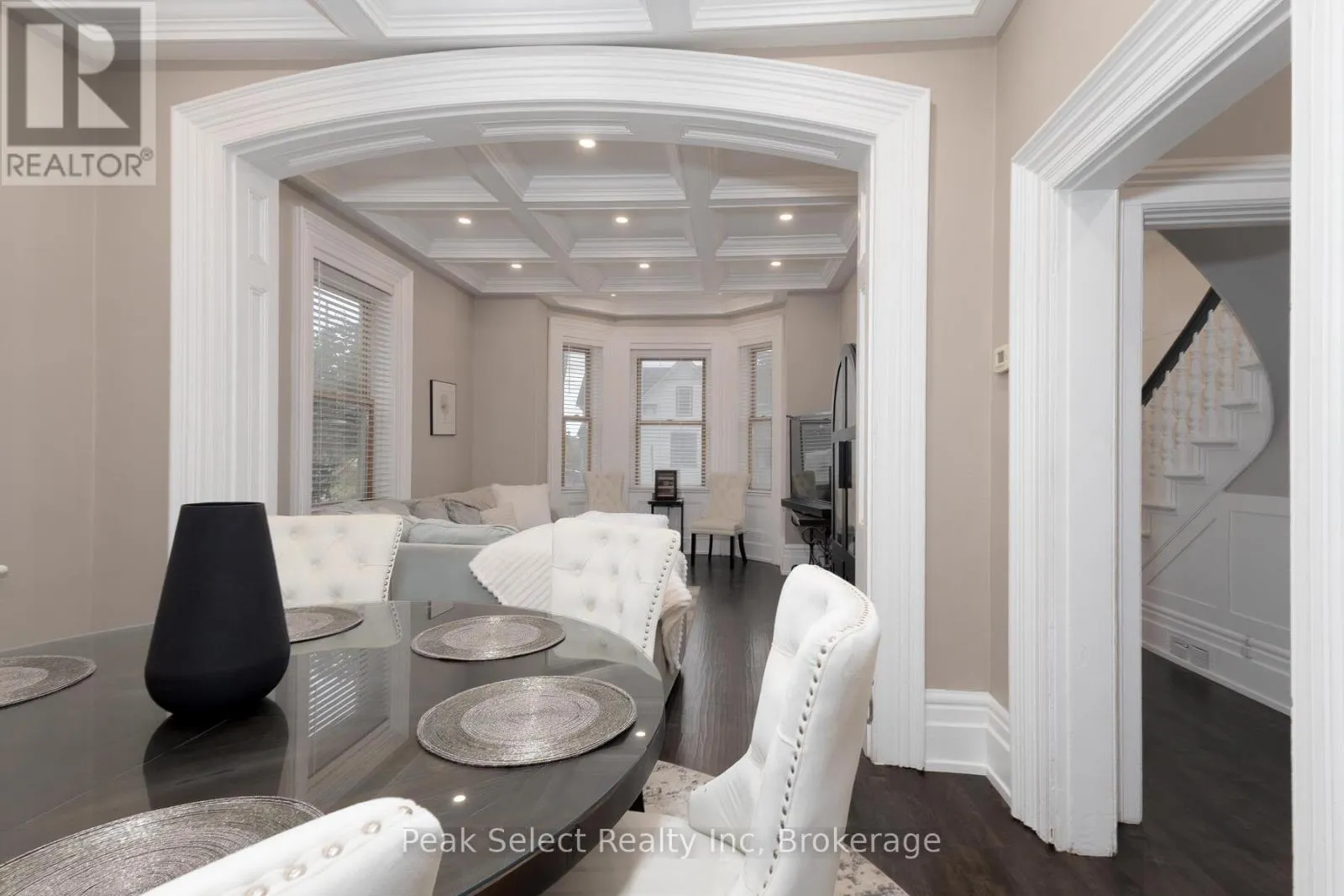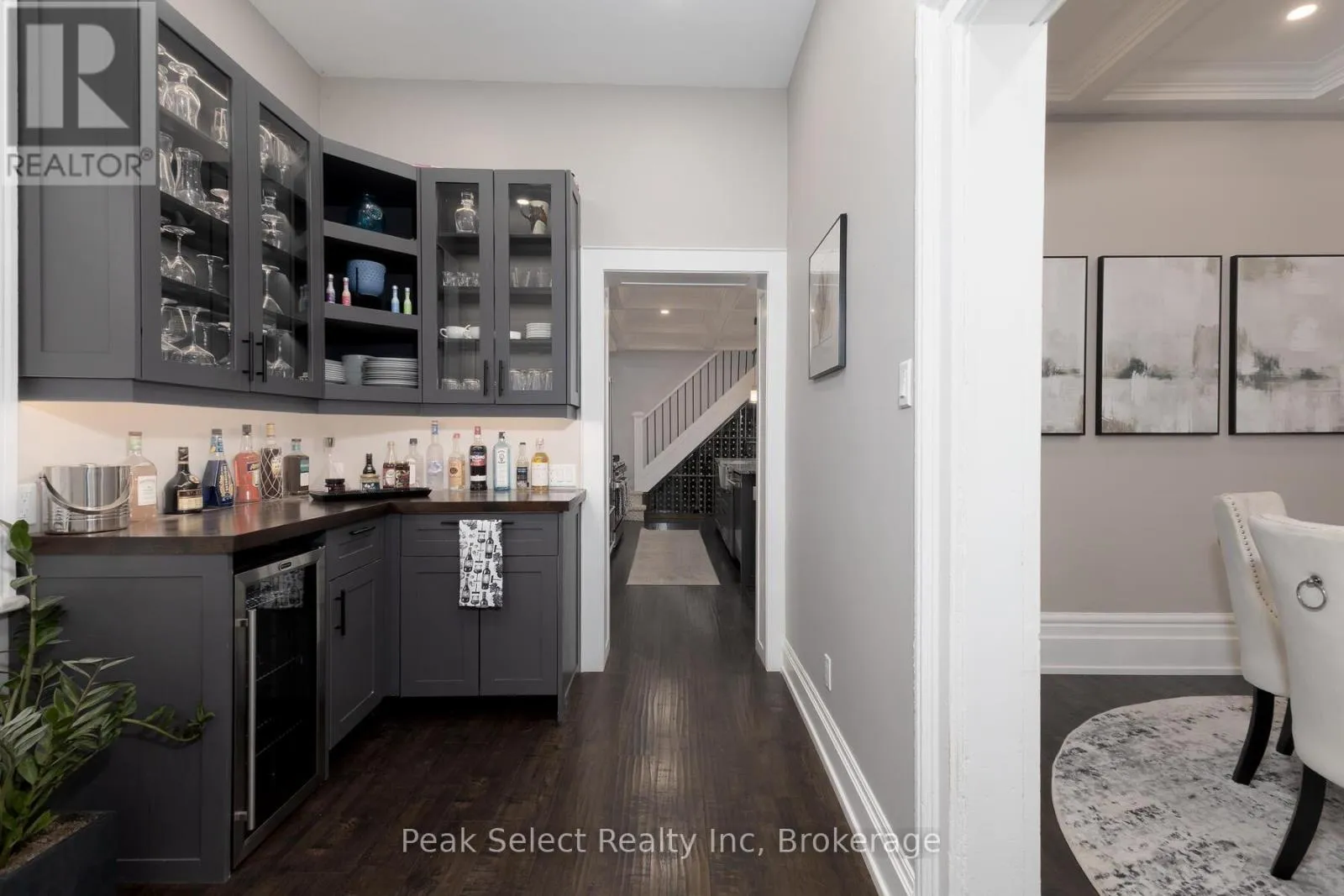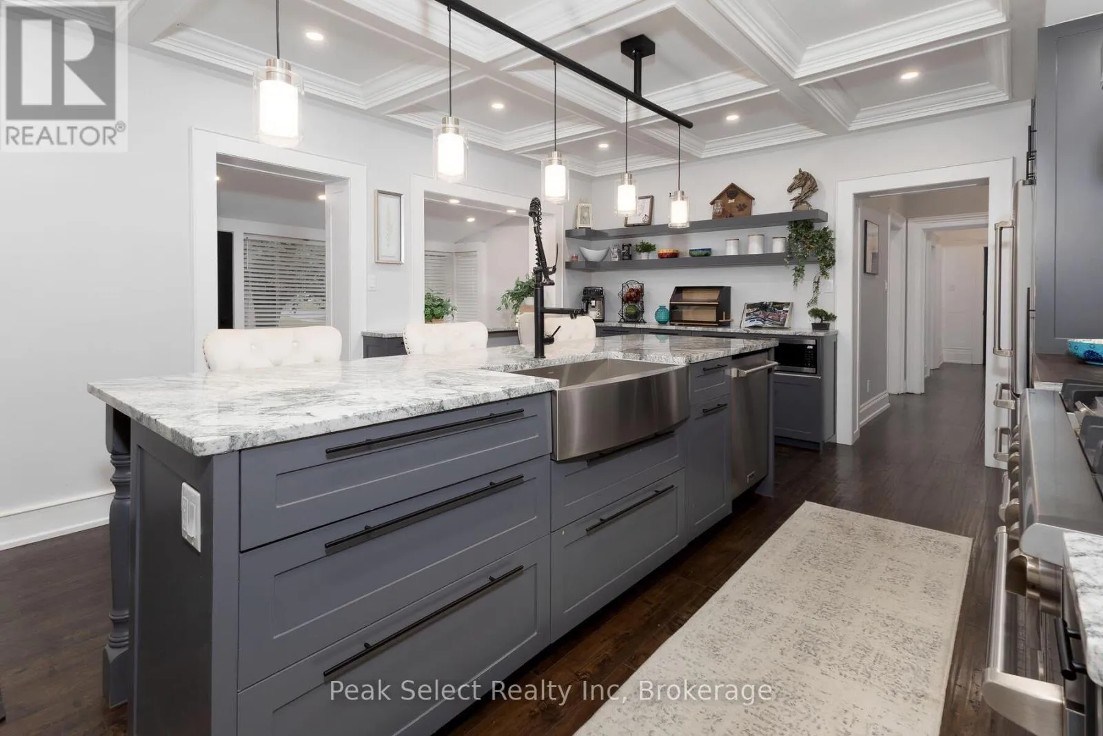 Cross Streets: Queen St E. and St. Andrew St. ** Directions: House is located on the southeast corner of Queen St E. and St. Andrew St. Driveway is off of St. Andrew. Welcome to 382 Queen St. E., in the picturesque town of St. Marys, ON. This 1890 solid-brick beauty has been extensively modernized and is ready for a new family to call her own. Renovated in 2023 for those who love to entertain or host family gatherings, key features include a large dining room directly off of the kitchen, a separate bar area ideal for preparing cocktails or for use as a coffee bar, and a separate living room with bay window. The kitchen stands as the hallmark trait of the home, with modern cabinetry, a large centre island with breakfast bar, a 48" gas range, an apron farmhouse sink, and a built-in, beautifully-crafted walnut cutting board counter. The focal point, however, is the magnificent wine refrigeration cabinet built in under a staircase, which could be repurposed to house fruits, cheeses, or other beverages if wine isn't your thing. The magnificent coffered ceiling that flows from kitchen, dining to living room levels up the elegance. Travel up the curved staircase to an upstairs that hosts 3 bedrooms, including a large Primary suite with natural gas fireplace, a 4-piece bath with glassed-in shower, a claw-foot tub and spacious vanity. A back "servant's staircase" leads from this bedroom to the kitchen for those urgent early-morning coffee runs. Outside you will find a large raised wood deck and private, fenced-in backyard. Take a short walk to the downtown core to enjoy the fabulous shops, cafes and restaurants. (id:27476)