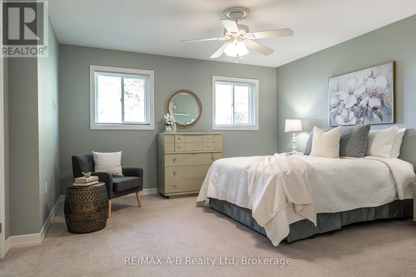 Cross Streets: Southvale Rd. ** Directions: From James St, turn east onto Maxwell St, south onto Southvale Rd and west onto Homefield Court. This versatile and well-maintained bungalow offers comfortable living on a quiet court. The main floor features 2 spacious bedrooms and 2 bathrooms, including a beautifully renovated (2023) ensuite with a walk-in shower. The open-concept kitchen, dining, and living area, with a gas fireplace, flows seamlessly to a private backyard that backs onto soccer fields, offering both peace and privacy. The fully finished basement adds even more living space with a large rec room (with rough-ins for a fireplace and wet bar), a 3rd bedroom, a 4-piece bathroom, and plenty of storage. Convenient main-floor laundry is located off the entryway from the attached garage, an added bonus for everyday living. Located close to walking trails, the Pyramid Recreation Centre, and more, this home combines comfort, convenience, and an ideal setting for any lifestyle. Click on the virtual tour link, view the floor plans, photos and YouTube link and then call your REALTOR to schedule your private viewing of this great property! (id:27476)