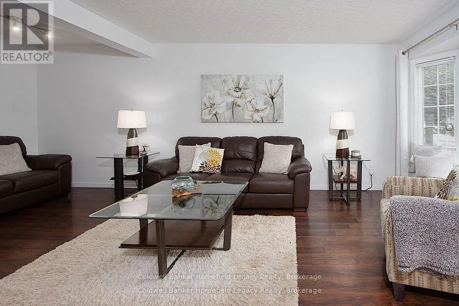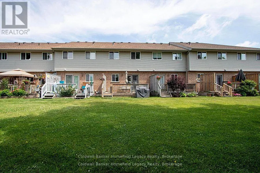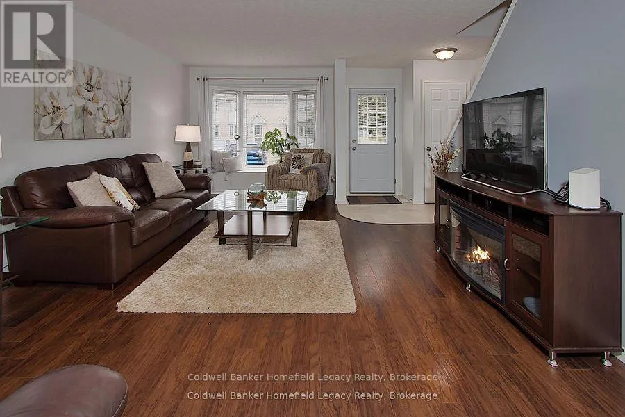 Cross Streets: Southvale and James South. ** Directions: James St. to Southvale. Unit 17-20 Southvale Road. Book your showing to view this well-maintained and thoughtfully updated townhome backing onto a trail. The open-concept main level offers a spacious living and dining area combination with large windows, a powder room, and a modern kitchen featuring stainless steel appliances and recent updates. Sliding doors lead to a private deck overlooking green space.The upper level includes a generous primary bedroom, additional bedrooms, and a well-appointed main bath. The finished basement adds valuable living space with a large family room, built-in shelving, and projection TV setup-ideal for entertaining, relaxing, or accommodating guests. A great opportunity for first-time buyers, downsizers, or families seeking a quiet, convenient location. (id:27476)