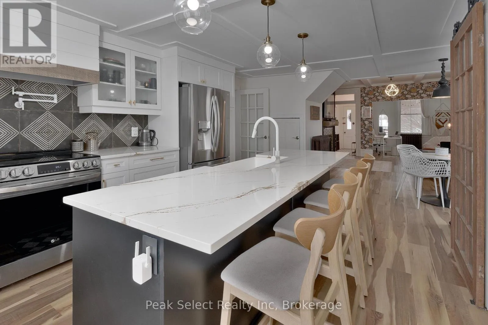 North Side of Queen St E between St. Andres St N & St. John St N This beautifully restored century brick cottage blends timeless 1880s character with over $200,000 in thoughtful modern renovations. Set on a mature, deep 48.5 x 150 ft lot, the home offers curb appeal, functionality, and peace of mind with extensive upgrades completed in recent years. Inside, the home has been completely reimagined. The open-concept main floor features walls removed to create a bright, flowing layout with all-new luxury vinyl plank flooring throughout. The fully renovated kitchen is a standout, offering quartz countertops, a large island, farmhouse apron sink, pot filler, pantry, new appliances, stylish backsplash, and updated lighting. The main floor also includes a powder room, a generous primary bedroom with walk-in closet, and a luxurious ensuite featuring a standalone tub, custom glass shower, and double-sink vanity. A custom gas fireplace with built-in shelving anchors the living space, while ductless air conditioning and all-new light fixtures add comfort and polish. The second floor, formerly unfinished attic space, has been transformed into a functional living area with two bedrooms and a full bathroom. The floor was lowered to create proper ceiling height, including a bedroom with walk-in closet and skylights. Additional highlights include new carpeting, tiled bathroom floors, a 3-piece bath with tub/shower, radiant baseboard boiler heating with thermostat, and a ductless air-conditioning wall unit. Outside, the property offers privacy and outdoor enjoyment with a covered front porch, spacious deck, fenced yard with gates (2017), and a tandem driveway with parking for up to four vehicles. Exterior updates include new siding, eavestroughs, soffits, fascia, and gutter guards (2025), five new windows, a new sliding glass door, updated shingles over the mudroom, modern pot lighting, and two upper-level skylights. All of this within walking distance to beautiful downtown St. Marys, schools, parks and rec centre. (id:27476)