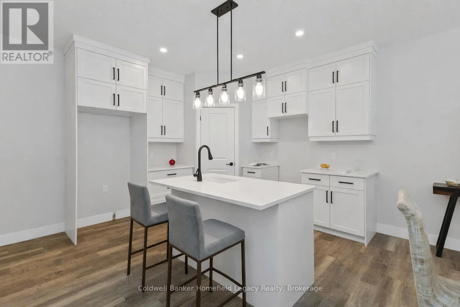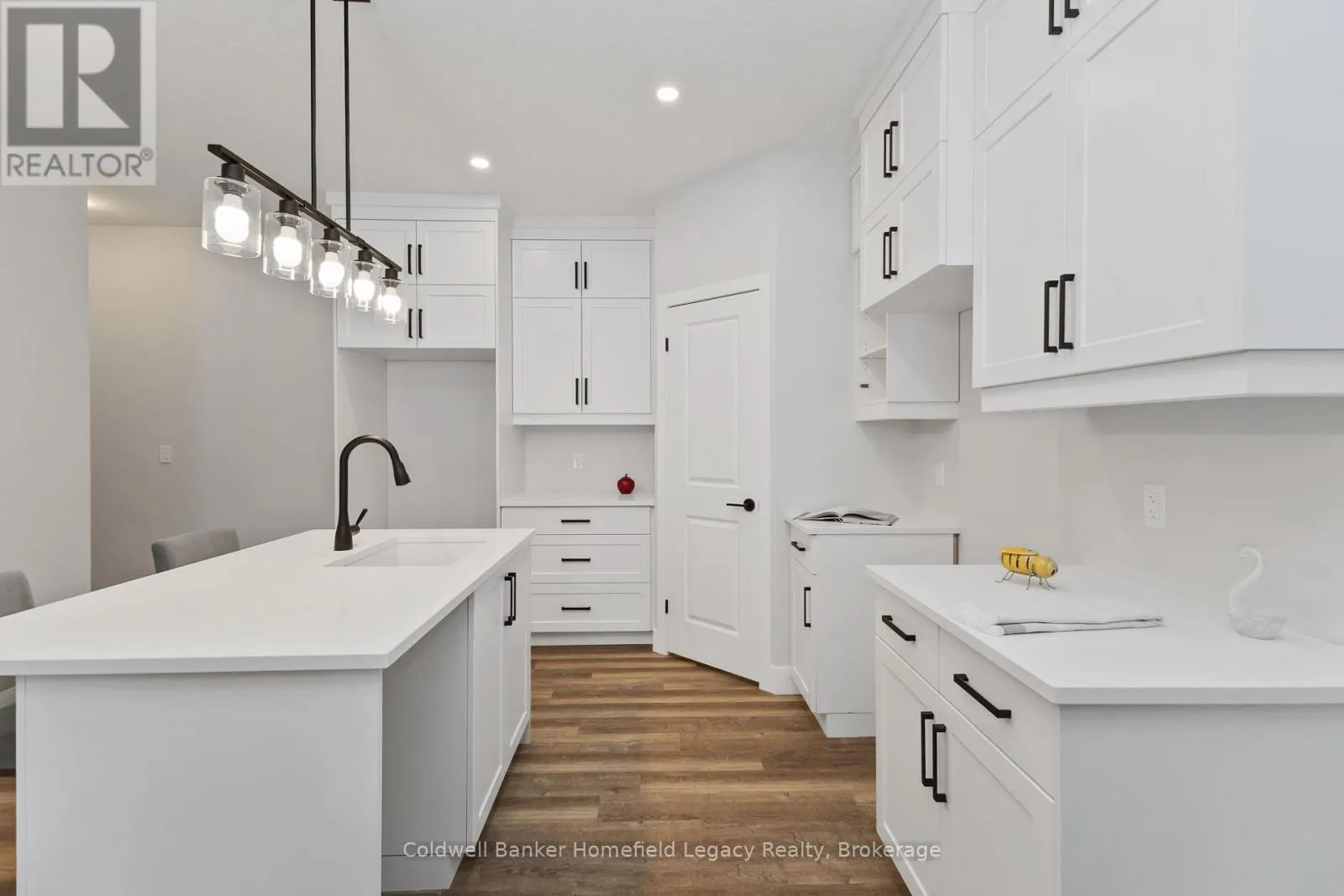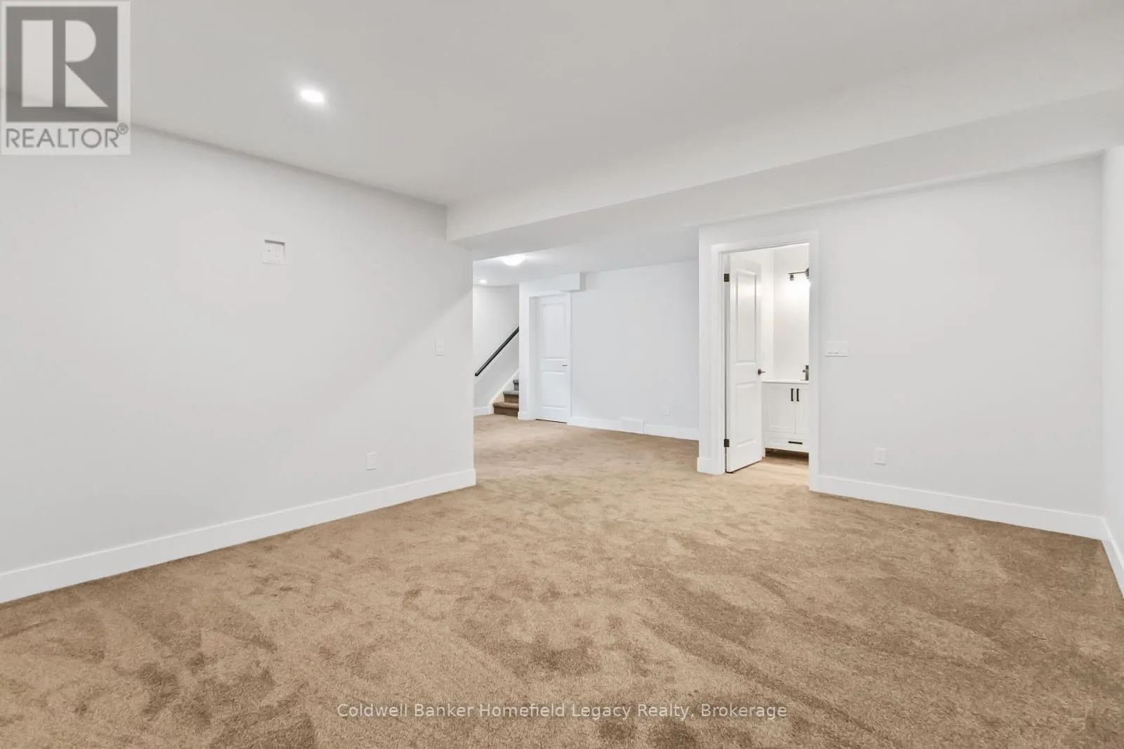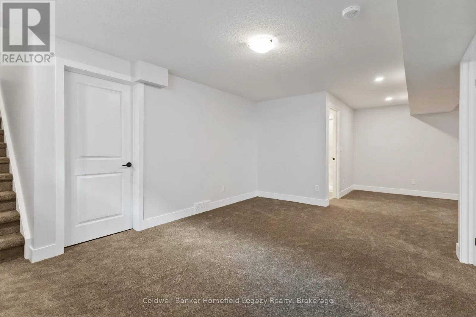 Cross Streets: James Street N and Egan Ave. ** Directions: James Street N to Egan Ave. Welcome to 165 Egan Avenue, Unit 6 - a well-finished 2-bedroom, 3-bath vacant-land condominium townhouse in one of St. Marys' most desirable newer communities. Offering a smart, functional layout with one bedroom on the main level and a second bedroom in the lower level, this home is a strong fit for downsizers, professionals, or anyone looking for flexible space with low-maintenance living.The bright, open-concept main floor features a modern kitchen with quartz countertops, a center island, and the added convenience of a dedicated pantry. The primary suite includes a private ensuite and an ensuite-to-walk-in closet connection, with laundry located directly in the walk-in closet for day-to-day efficiency.The lower level is partially finished, providing additional living space potential along with a bedroom, third bathroom, and ample storage. Complete the package with a private deck, a 1.5-car attached garage with inside entry, and a double driveway. Conveniently located near parks, schools, trails, and downtown St. Marys amenities - move-in ready with immediate possession available. (id:27476)