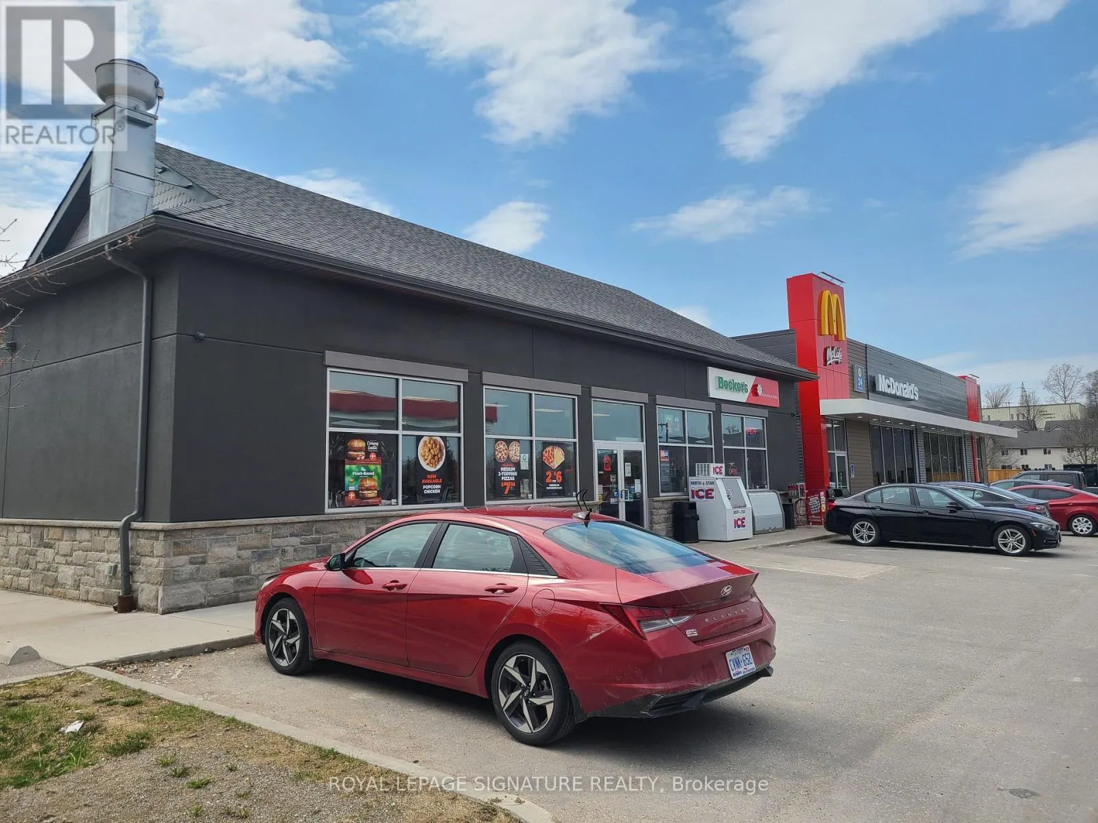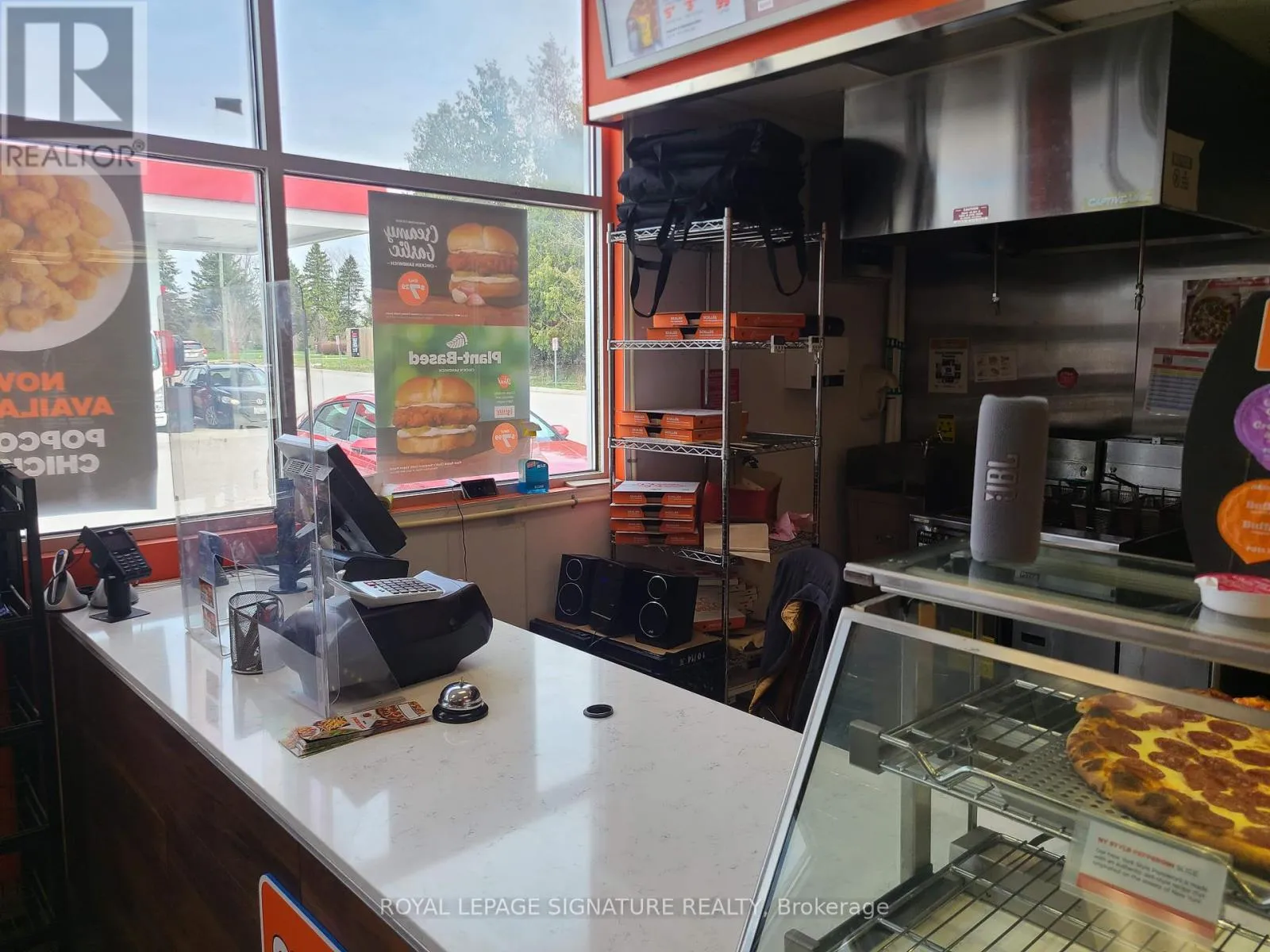 Queen & Cain Outstanding opportunity to lease a fully built-out quick service restaurant space in a modern Esso gas station that is also home to Becker's Convenience and McDonald's. This unit is in excellent condition and still feels new, offering a turnkey setup for a wide range of concepts,cuisines, or franchises. The 750 sq ft space is located inside the main building with its own dedicated service counter and prep area. Features include two commercial hood systems totaling 11 feet, two walk-in units, and ample prep space. Extensive leaseholds and equipment are already in place, making it ideal for a smooth and efficient conversion to your brand. Great lease rate of $2,900 gross rent including TMI and all utilities, with plenty of term remaining.Take advantage of strong exposure from gas station traffic and a solid customer base from St.Marys and the surrounding area, with flexibility to introduce a variety of food or retail concepts. (id:27476)