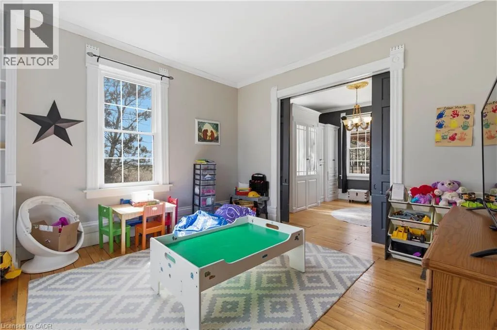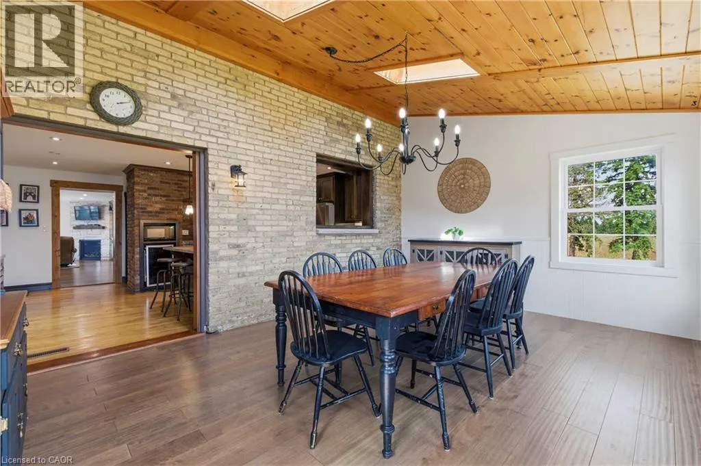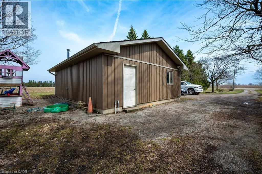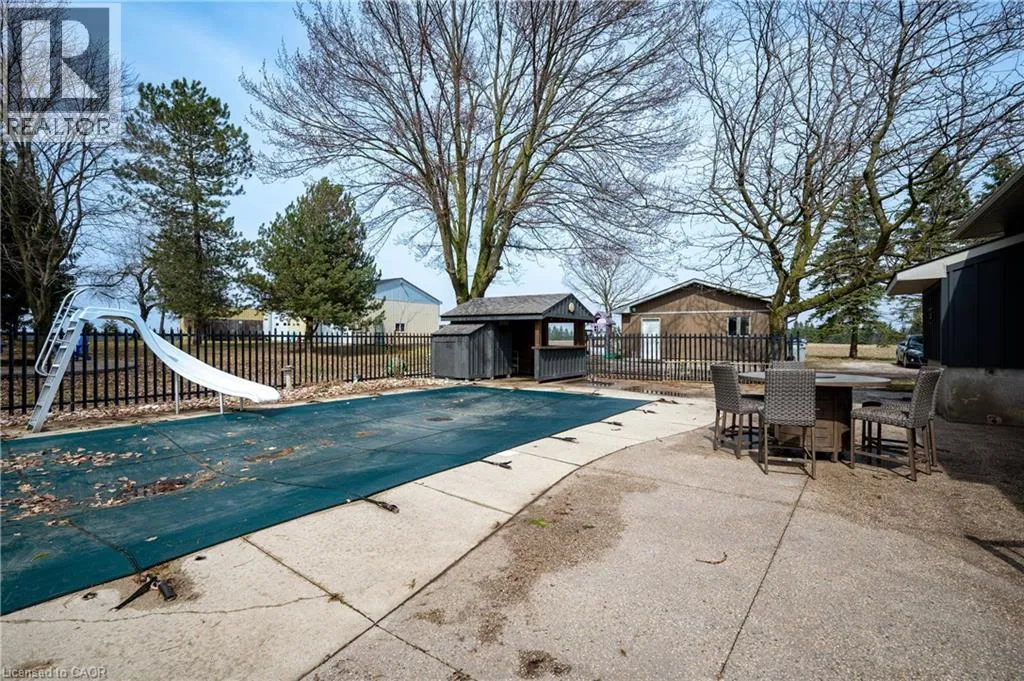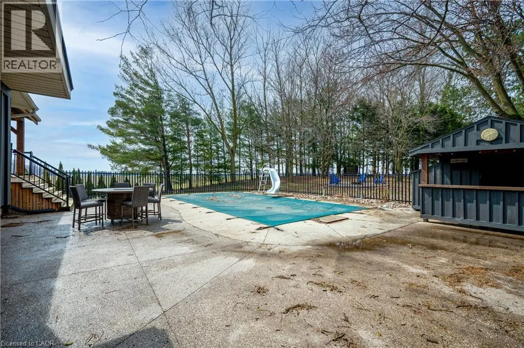 TRANQUIL COUNTRY ESTATE! Located close to St Mary's on a paved road, this stunning 1.2 acre home offers an unparalleled view of singing pines, towering trees, rolling lawns, farmerâs fields and a sparkling heated inground pool. Step into the beautifully updated foyer that has plenty of storage and provides access to a bright laundry room and newer 4 piece bath. The welcoming family room has custom built-in shelving, a lovely stone fireplace, and a walk-out to a gorgeous pergola and scenic views. Cooking will be a joy in the large kitchen and the sunny dining room can host intimate meals for friends and family. The gracious living room features antique pocket doors, convenient built-in shelves and spacious enough to accommodate large family gatherings. Beside it is the den that would also work well as a main floor bedroom. Upstairs you will find 4 spacious bedrooms and a charming bath. Gardeners and hobbyists will love the detached garage, detached shop with hydro (gas lines installed to shed but not hooked up), 3 decks and firepit. A FRAMEABLE VIEW! (id:27476)
