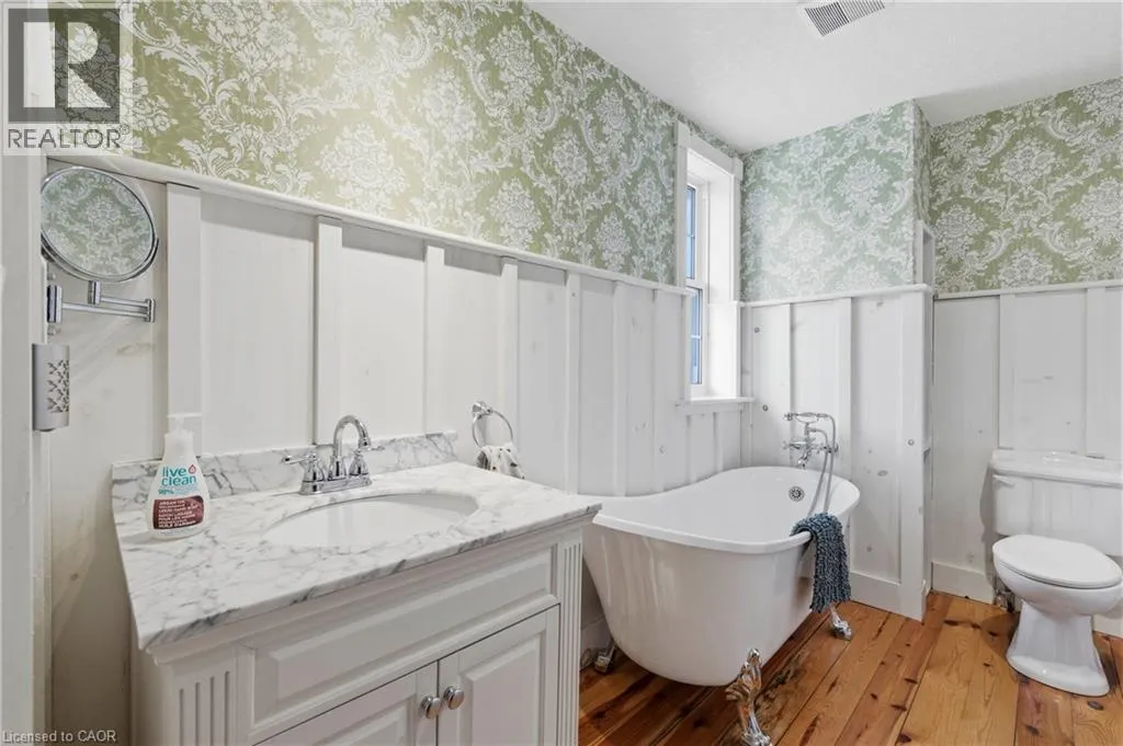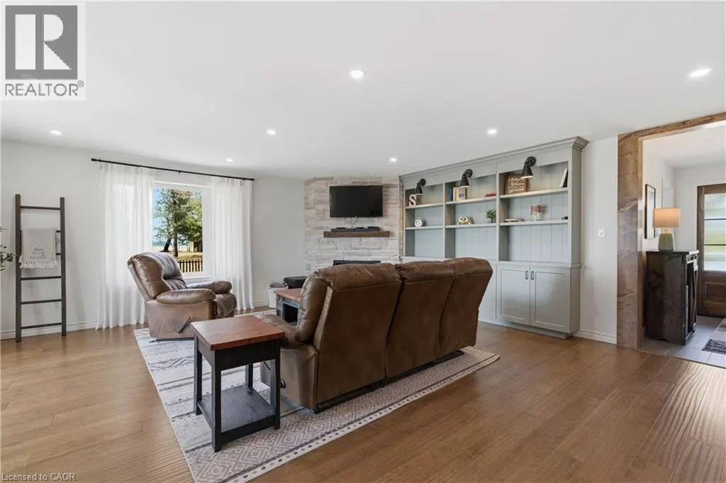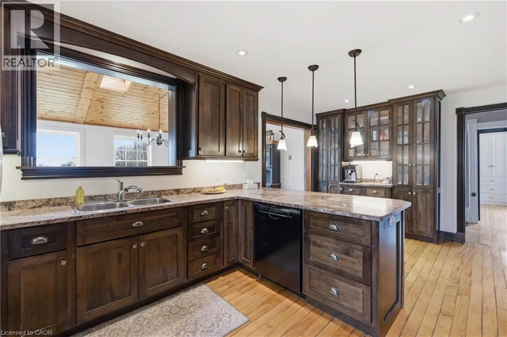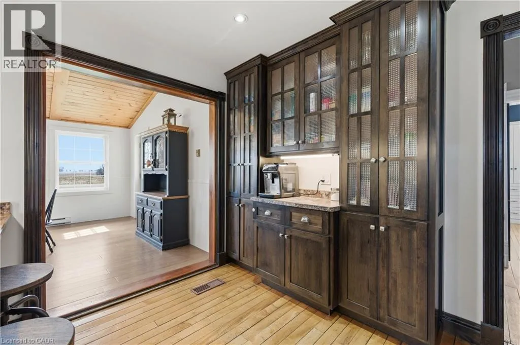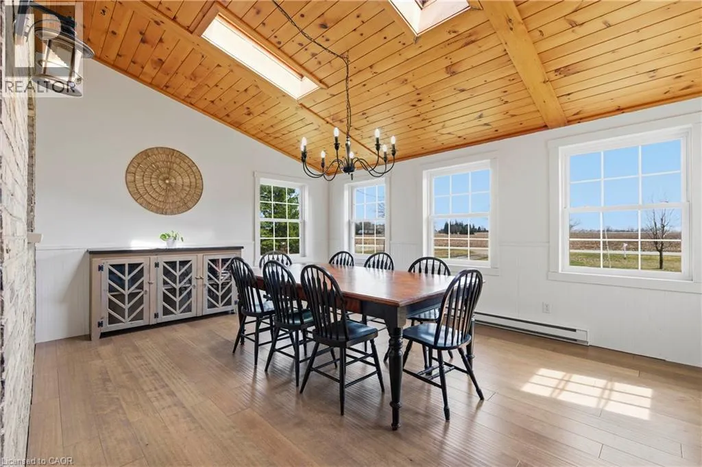 TRANQUIL COUNTRY ESTATE! Located close to St Mary's on a paved road, this stunning 1.2 acre home offers an unparalleled view of singing pines, towering trees, rolling lawns, farmerâs fields and a sparkling heated inground pool. Step into the beautifully updated foyer that has plenty of storage and provides access to a bright laundry room and newer 4 piece bath. The welcoming family room has custom built-in shelving, a lovely stone fireplace, and a walk-out to a gorgeous pergola and scenic views. Cooking will be a joy in the large kitchen and the sunny dining room can host intimate meals for friends and family. The gracious living room features antique pocket doors, convenient built-in shelves and spacious enough to accommodate large family gatherings. Beside it is the den that would also work well as a main floor bedroom. Upstairs you will find 4 spacious bedrooms and a charming bath. Gardeners and hobbyists will love the detached garage, detached shop with hydro (gas lines installed to shed but not hooked up), 3 decks and firepit. A FRAMEABLE VIEW! (id:27476)