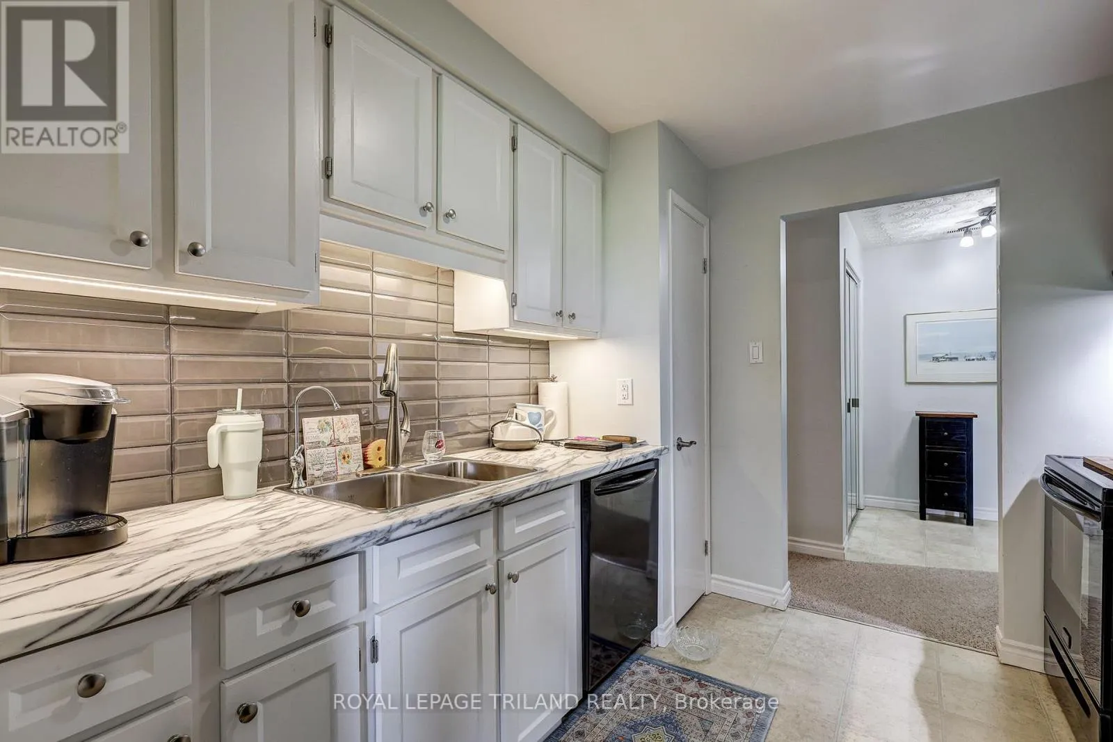 Cross Streets: ELM AND ELMINA. ** Directions: SOUTH ON SUNSET DRIVE TO ELM. EAST TO THE PROPERTY ON THE SOUTH SIDE OF THE ROAD. DIRECTLY SOUTH OF ELMINA. This Spacious 1440sf, Private, One Floor Condo Overlooks Gorgeous Pinafore Lake and Pinafore Park with Breathtaking Panoramic Views. Pride of Ownership is Evident throughout by way of recent Updates and Meticulous Maintenance of each Room. The Oversized Living Room is Perfect for Family Gatherings and has Direct access to the Private Balcony. The Convenient Den/Office enjoys the Same Exceptional Views as the Balcony and both Bedrooms. The Dining Room is Complete with Wainscotting and Leads into the Bright Kitchen with Fridge, Stove, Dishwasher and Abundant Storage. Down the Hall is the Pantry/Utility Room, the Insuite Laundry Area with Full Sized Washer and Dryer and Hot Water Heater, the First Bedroom with Full Closet and the 3 Piece Guest Washroom with Glass Walk In Shower. The Large, Bright Primary Bedroom Boasts a Walk-In Closet and a 4 Piece Ensuite with Double Sinks, Shower and Tub with Hand Rail. Some Rooms Freshly Painted (2024), Some Flooring Updated (2024). Comes with In Suite Forced Air Electric Furnace ( Serviced 2024 ) and Central Air, Private Underground Parking, 2 Private Storage Areas and a Convenient Elevator. (id:27476)