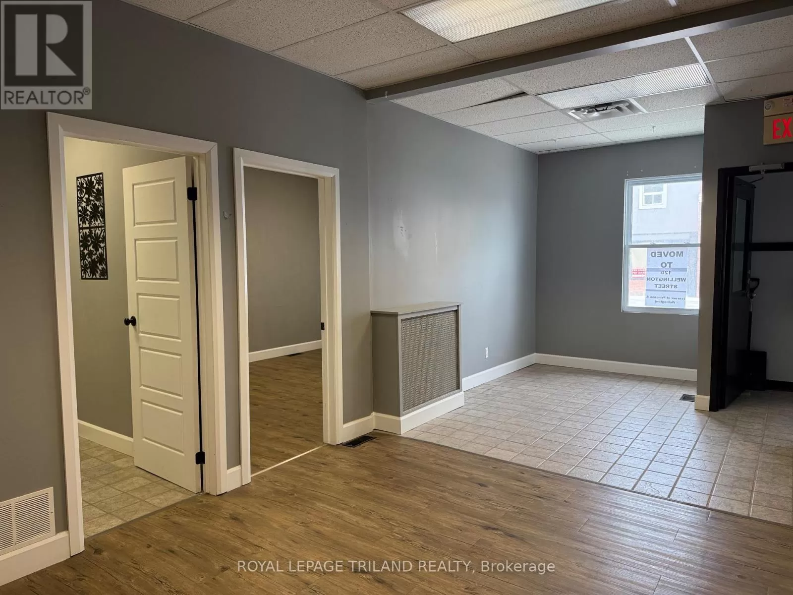 Cross Streets: Ross St. ** Directions: Between Ross & Moore on the south side, access to rear is from Moore St Municipal Parking Lot. Commercial Lease Space Available on Talbot - this commercial lease space is perfect for a variety of businesses with C2 zoning. Featuring three rooms plus garage bay, there is plenty of space to accommodate your needs. The property is located on busy Talbot Street, ensuring great visibility and foot traffic. Ample parking is available, making it convenient for customers and employees. The space has been updated and is in excellent condition. Additional storage in basement, plus access to 2nd garage bay that has exterior access only. Rent is Base $1265/month + Add $1125/month for a total rent of $2390/month +hst (hydro, water, gas included in add rent). (id:27476)