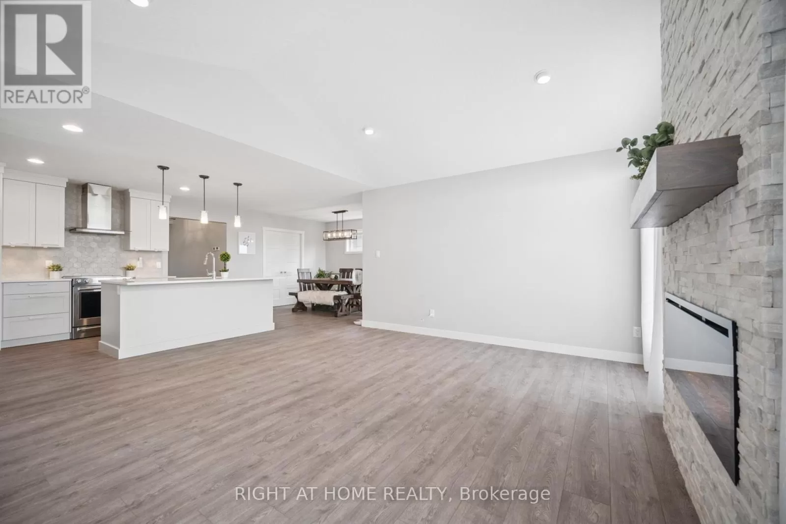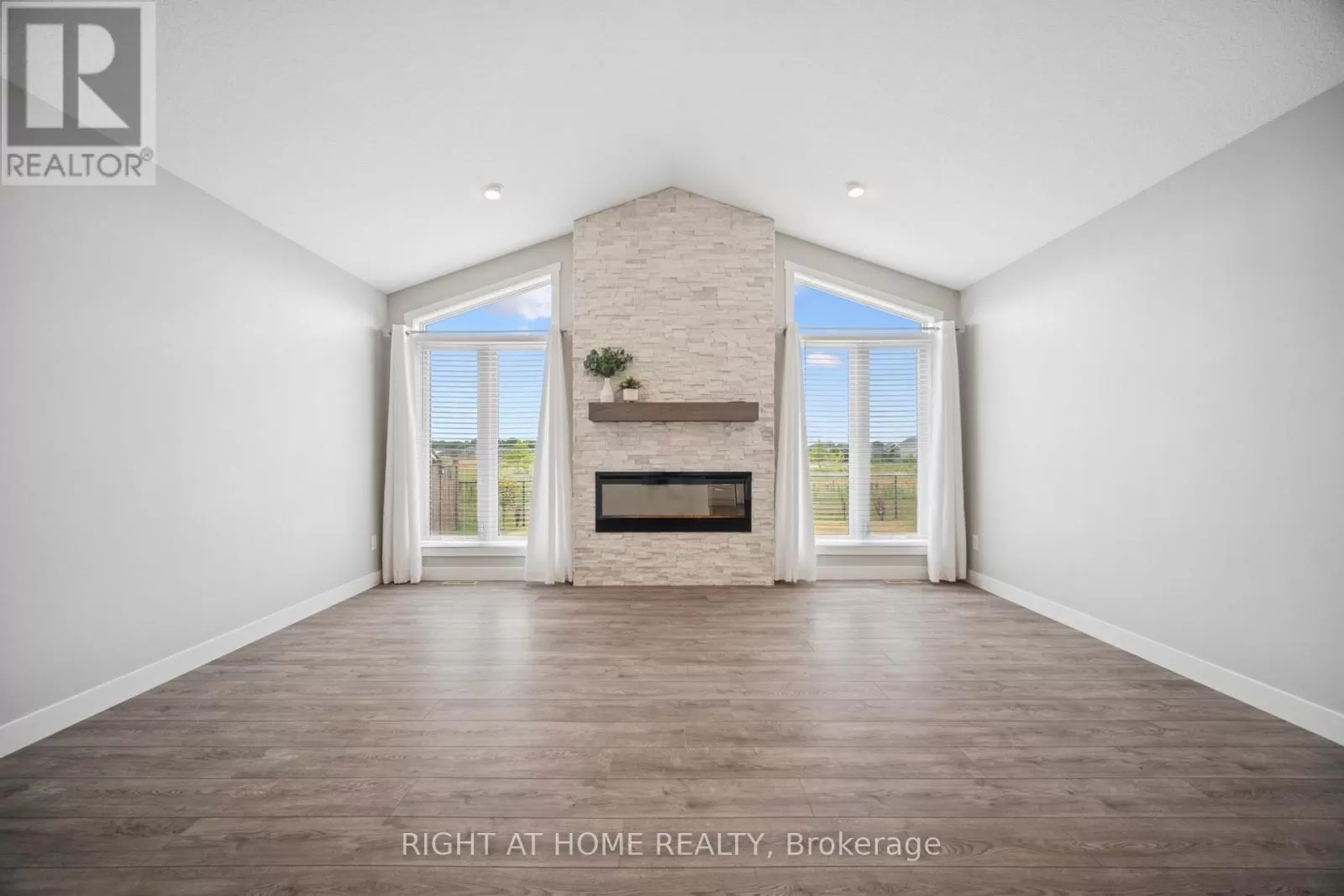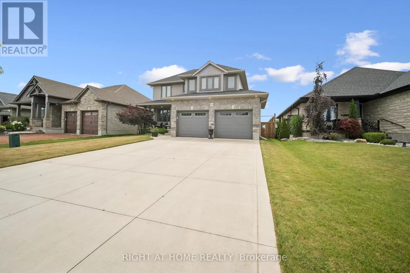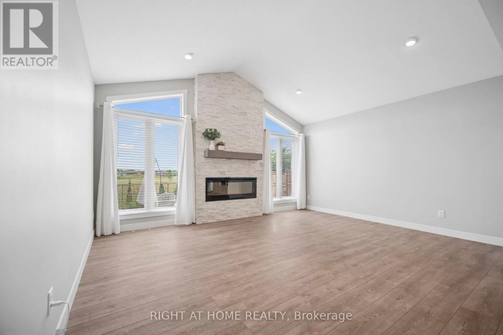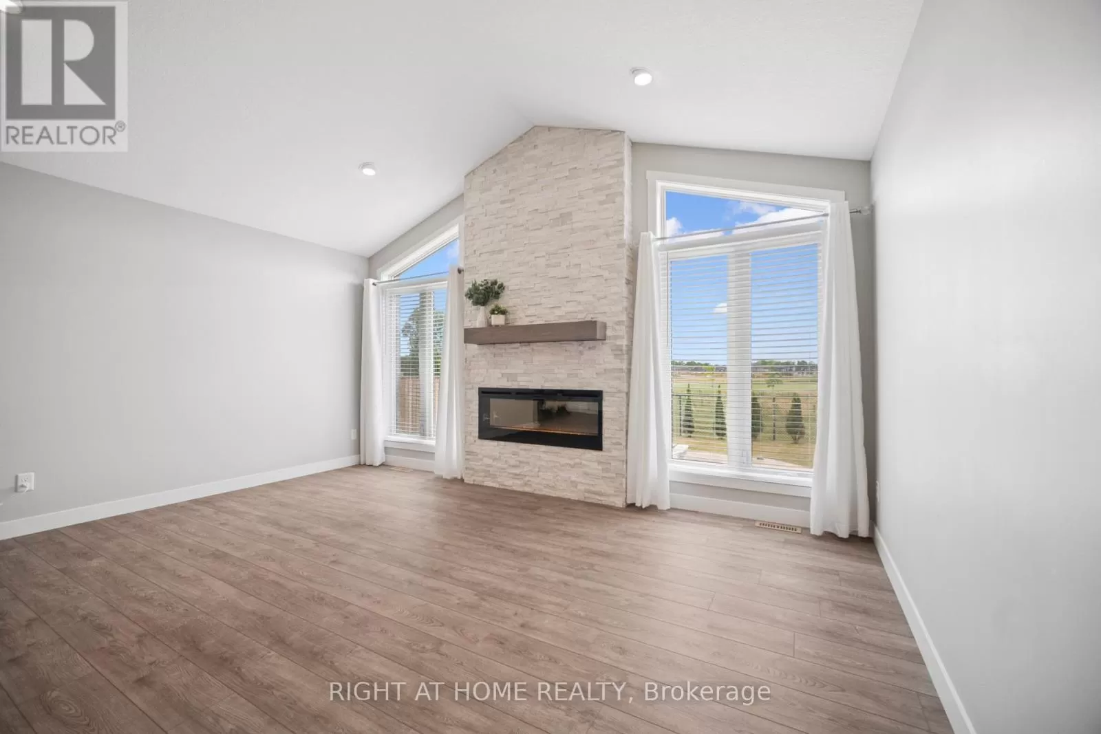 Shaw Valley Dr. and Oakmont St. Welcome to 24 Oakmont - a stylish and spacious 4+1 Bed, 2.5 Bath home on a premium lot in the sought after Shaw Valley Community. Backing onto peaceful city-owned greenspace and a proposed park, this MP Custom Home blends function and flair with a concrete driveway, covered front porch, and beautifully landscaped yard. The entertainer's backyard features a two-tier deck with ambient lighting, a live-edge bar, and gas BBQ hookup. Inside, enjoy an open concept main floor with soaring vaulted ceilings, a bright GCW kitchen with quartz counters, island, backsplash, pantry and a cozy living room with electric fireplace. A main floor office/bedroom and stylish 2 pc bath complete the level. Upstairs offers a laundry room, two spacious bedrooms, a 4pc bath, and a serene primary bedroom with walk-in closet and spa-like ensuite with glass shower and freestanding tub. The finished basement includes a rec room with 8'2" ceilings, an extra bedroom, rough-in bath, and storage. Steps to Daycare, close to Port Stanley Beach, close to 401, Amazon Fulfillment and just minutes from London! (id:27476)
