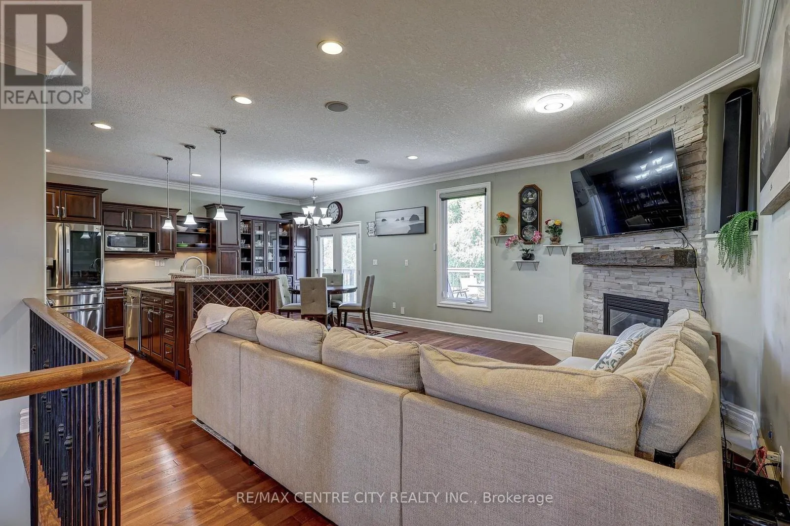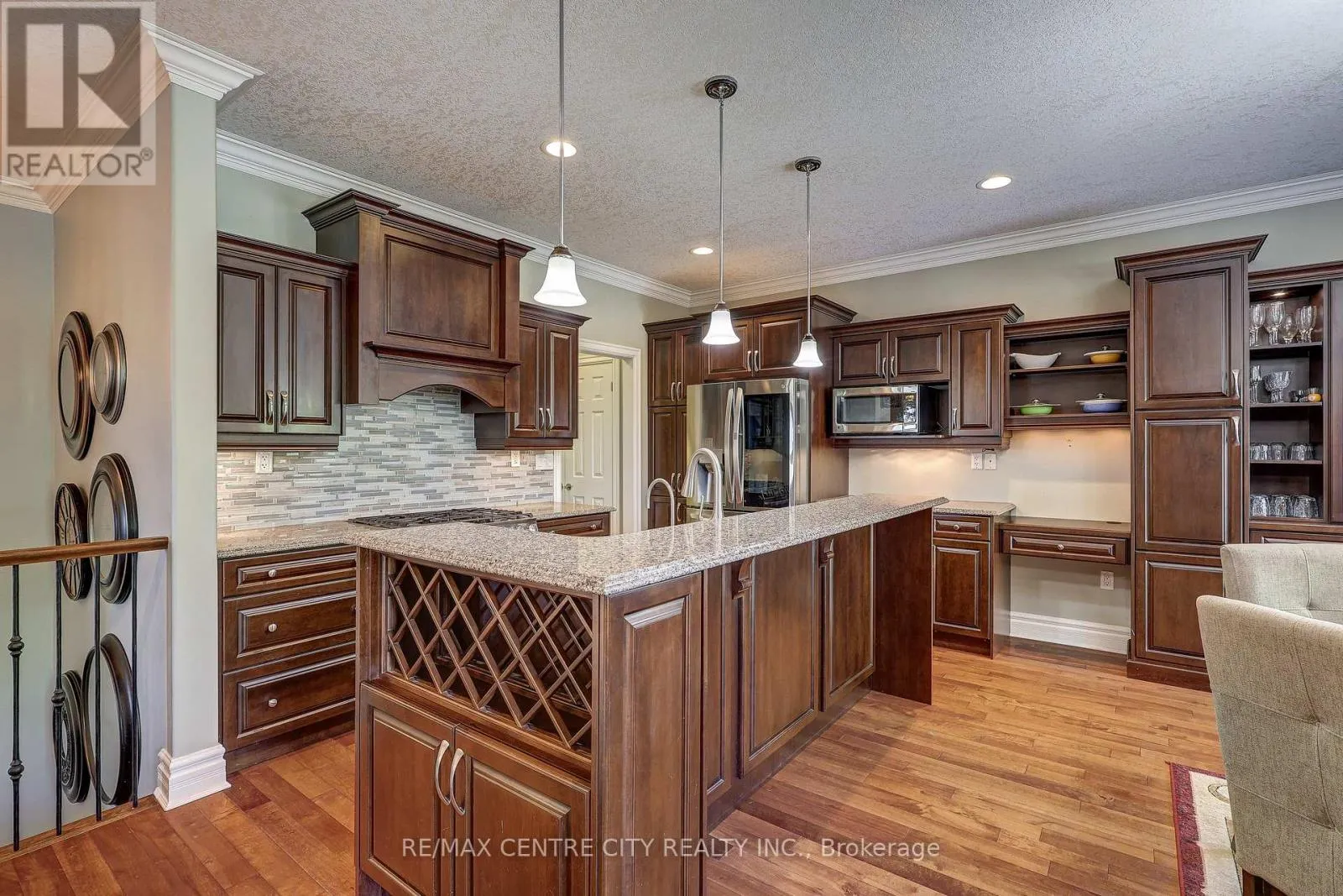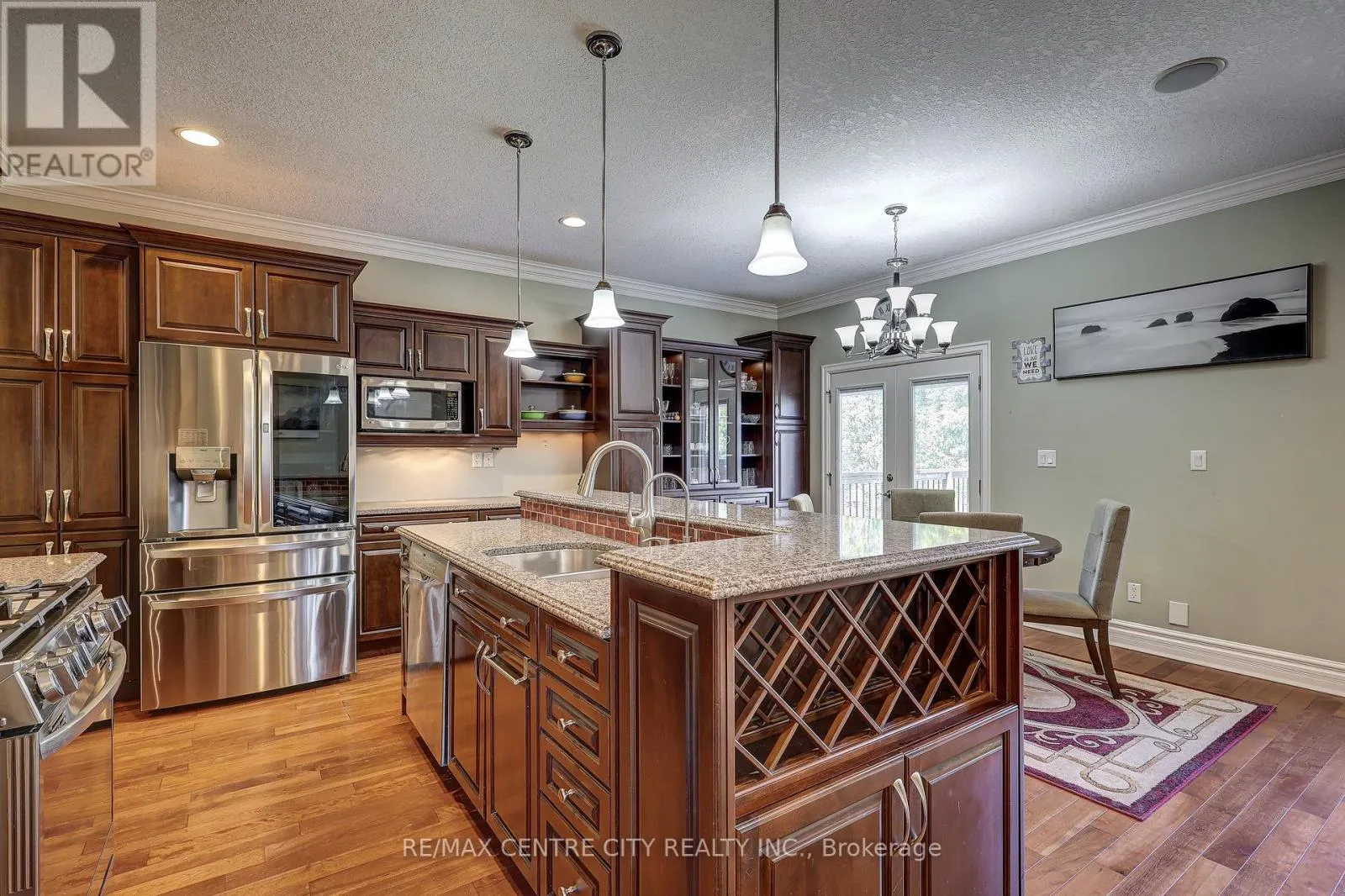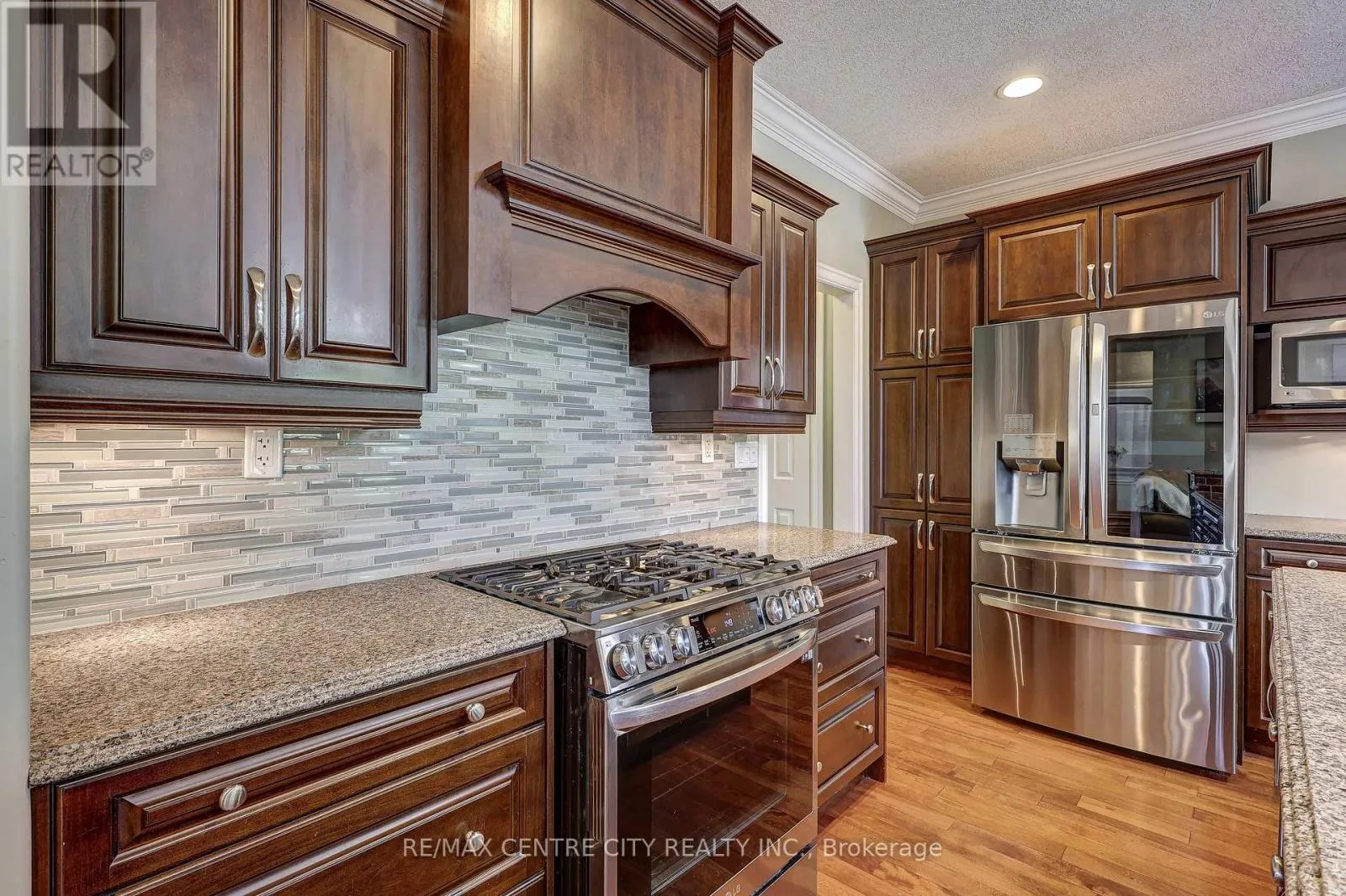 Cross Streets: BURWELL RD AND RON MCNEIL LINE. ** Directions: South off Ron McNeil Line to McGregor Crt. Welcome to 1 McGregor Court, a beautifully maintained bungalow situated in one of St. Thomas' most desirable neighbourhoods in south end with quick access to London and the 401. Offering nearly 2,600 sq. ft. of finished living space, this home features 3+1 bedrooms and 3 full bathrooms. The main floor showcases open concept living with hardwood flooring, crown mouldings, a cozy gas fireplace, and an upgraded kitchen with granite countertops, a smart fridge, and a smart gas stove with built-in air fryer. The living room is equipped with an in-ceiling sound system, perfect for entertaining. Off the kitchen, step out onto a spacious deck overlooking a private backyard oasis featuring a professionally maintained in-ground pool, stamped concrete surround, mature landscaping, and a four-person hot tub. The walk-out lower level offers excellent in-law suite potential with a separate entrance, covered patio, and ample space to add an additional bedroom or even a second kitchen. The entire basement has been professionally set up for radiant in-floor heating, giving future owners the ability to restore and enjoy consistent warmth throughout the lower level with a pool table. Additional highlights include newer window coverings, a newer awning, a 200A electrical panel, a newer sump pump, and a two-car garage with a double wide four car driveway finished in coloured stamped concrete. Ideally located near parks, trails, schools. This home offers the perfect blend of everyday comfort and vacation-style living. (id:27476)