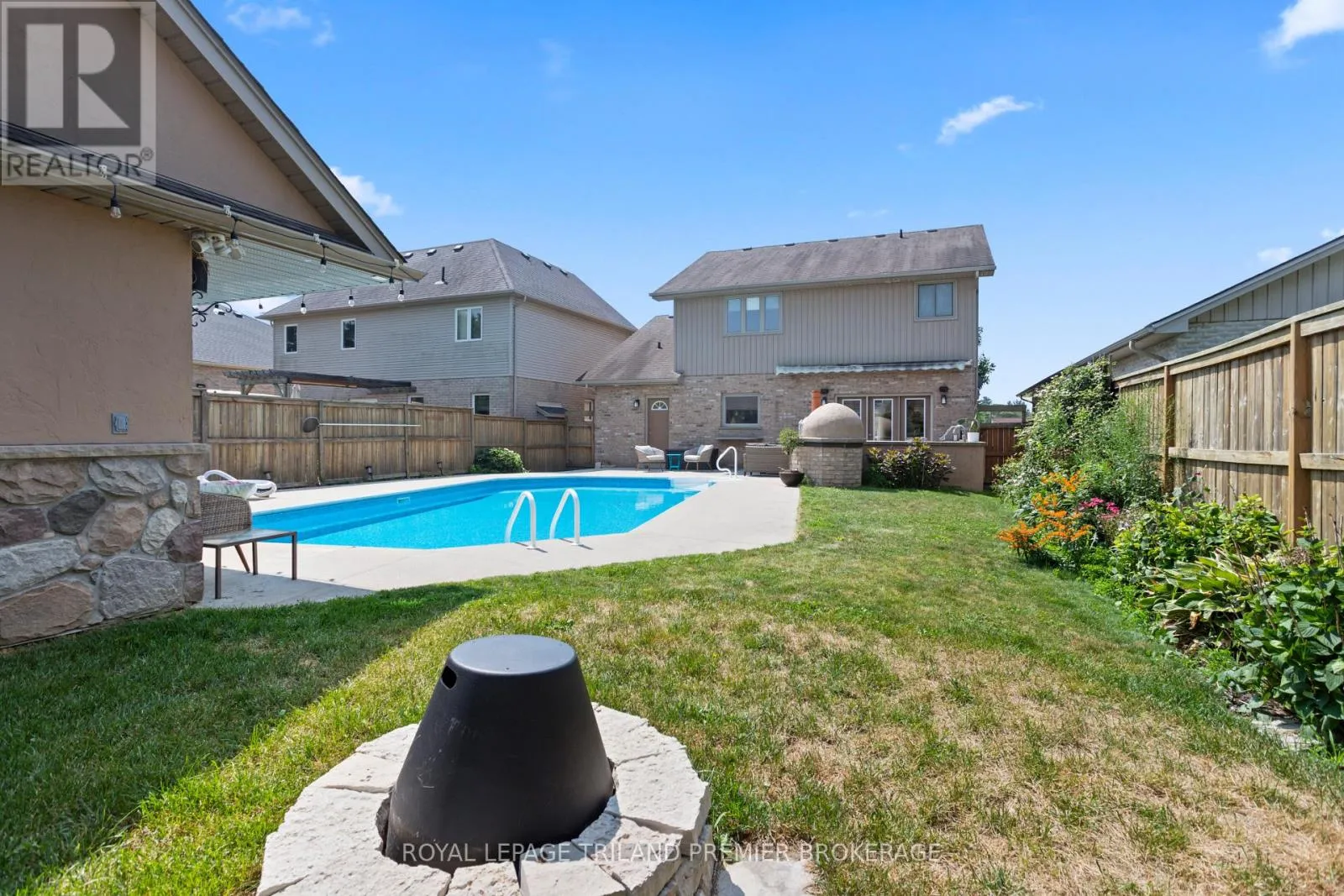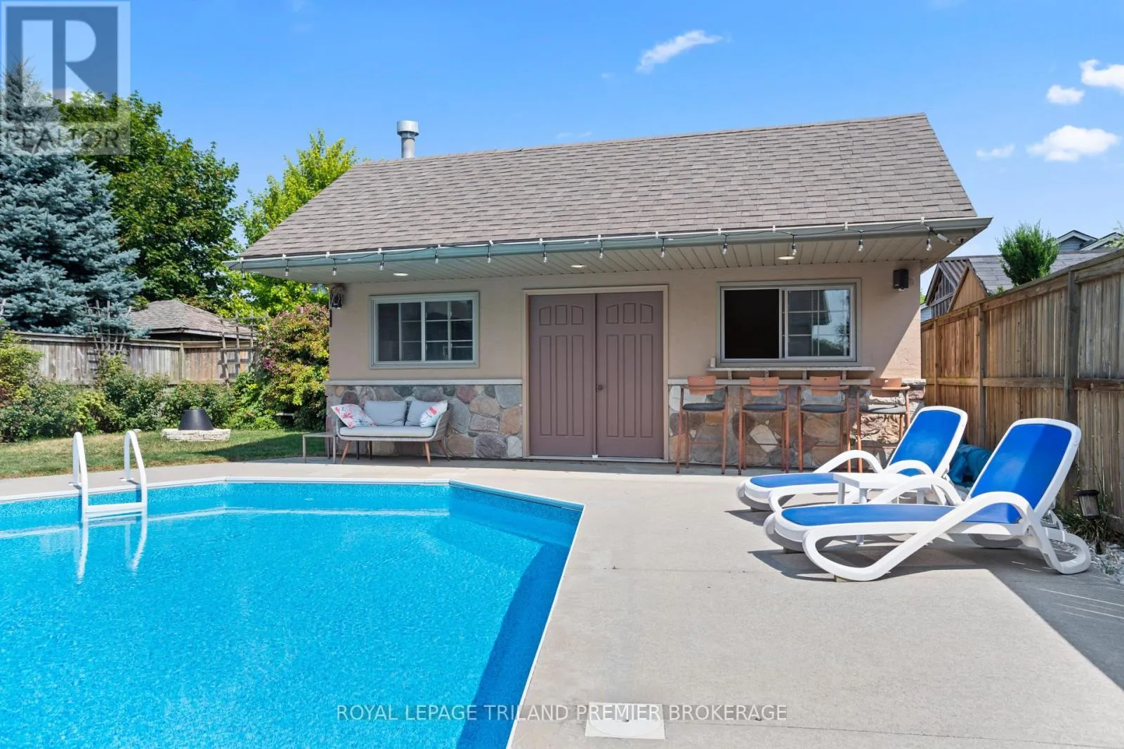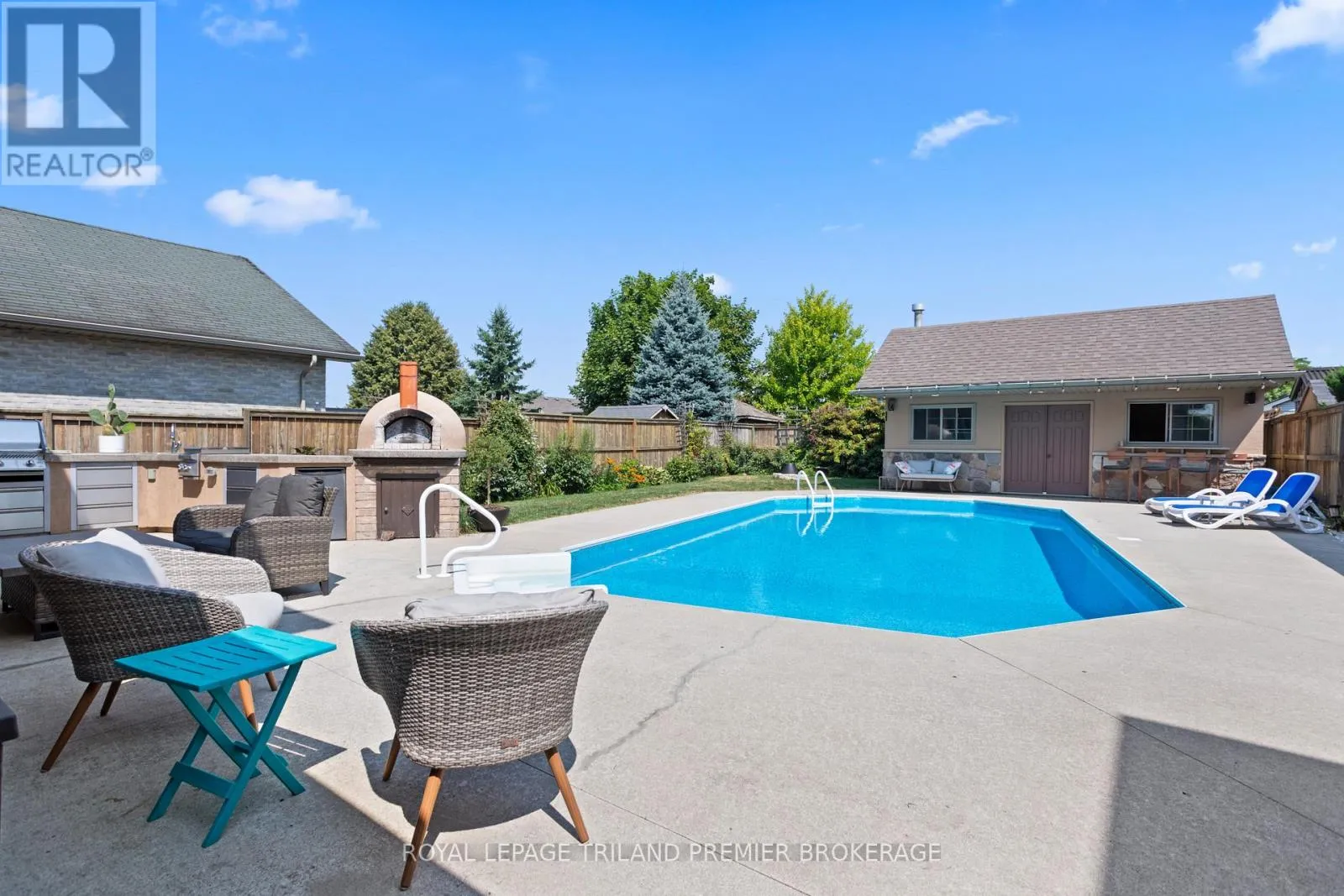 Cross Streets: HIGHVIEW. ** Directions: NEAR HIGHVIEW. Welcome to 13 Kantor Court, where resort-style living begins in your own backyard! This lovely 2-storey home is nestled on a quiet cul-de-sac and offers 3 bedrooms, 3.5 bathrooms, and over 3,000 sq ft of beautifully finished living space. Step into bright open concept main level with 9-foot ceilings, an open- concept layout, and a three-sided gas fireplace. The generous custom maple kitchen features a walk-in pantry, stainless steel appliances, peninsula with breakfast bar, and stunning views of your backyard paradise. Convenient main floor laundry, mudroom and 2-piece bathroom complete the main level. Upstairs, the luxurious primary suite includes two walk-in closets and a spa-like 5-piece ensuite with a custom glass shower and radiant heated floors. Two additional bedrooms and a full bathroom complete the carpet-free upper level. The fully finished basement is the perfect cozy retreat for movie night offering a large recreation room with a wet bar, 3-piece bathroom, and storage area/utility room. The fully fenced, outdoor retreat features an 18 x 36 heated saltwater pool, an expansive patio with gas fireplace hookup, and a heated pool house complete with TV lounge and bar top. Entertain with ease thanks to the outdoor kitchen and custom wood-burning pizza oven, perfect for summer gatherings, cozy fall evenings, and everything in between! This home truly has it all style, comfort, and an outdoor space you'll never want to leave all situated in a quiet, family friendly neighbourhood in lovely St. Thomas! Recent updates: Furnace and Hot Water Heater (2023), pool liner (2024), dishwasher (2023). (id:27476)