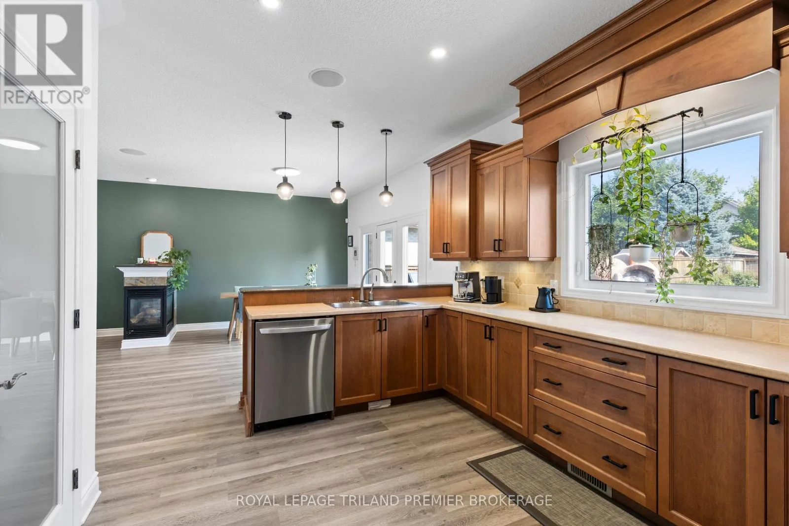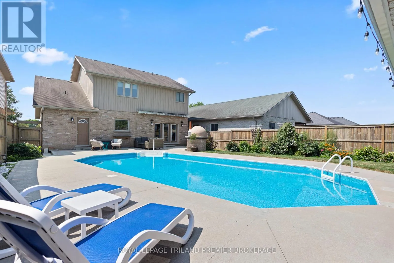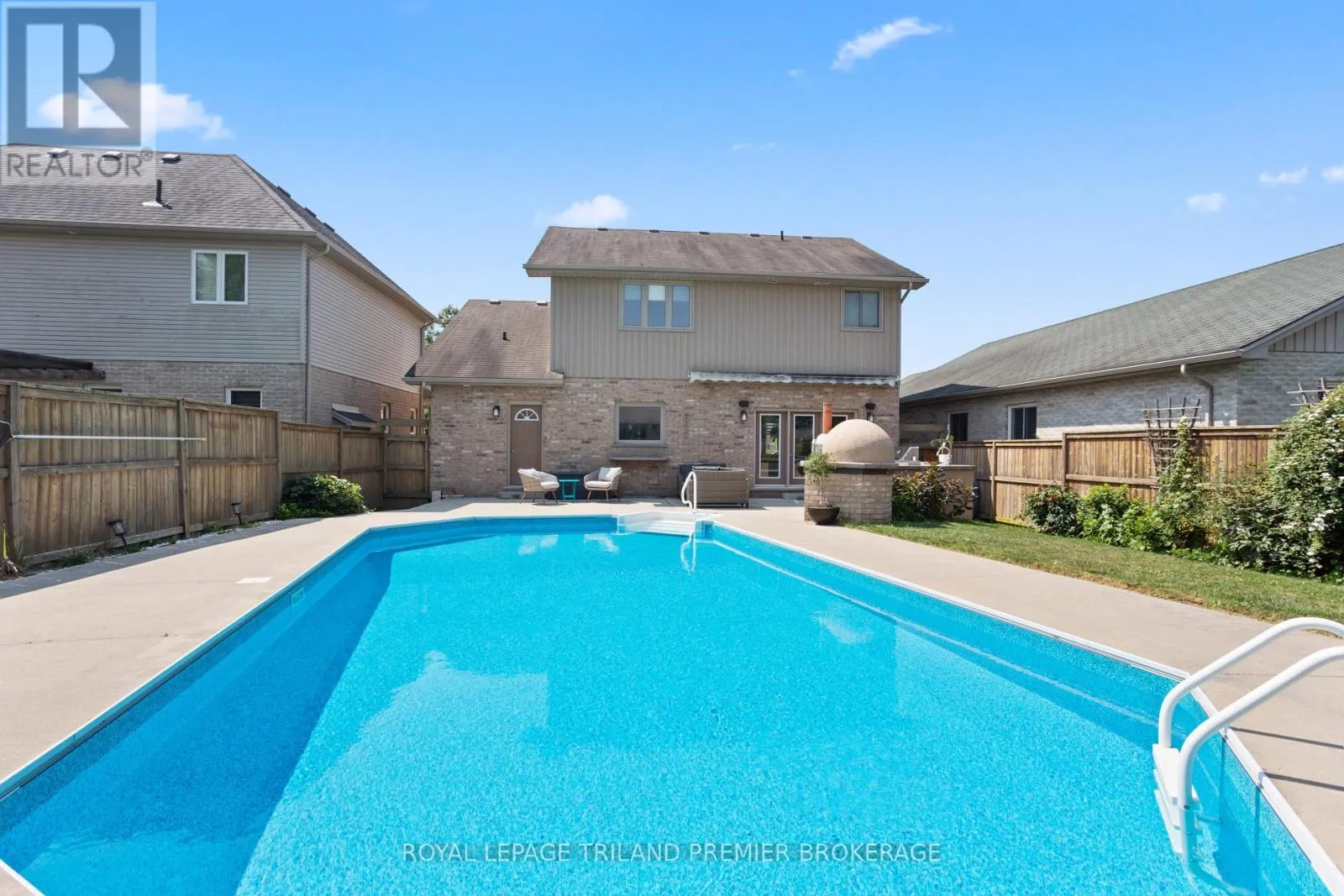 Cross Streets: HIGHVIEW. ** Directions: NEAR HIGHVIEW. Welcome to 13 Kantor Court, where resort-style living begins in your own backyard! This lovely 2-storey home is nestled on a quiet cul-de-sac and offers 3 bedrooms, 3.5 bathrooms, and over 3,000 sq ft of beautifully finished living space. Step into bright open concept main level with 9-foot ceilings, an open- concept layout, and a three-sided gas fireplace. The generous custom maple kitchen features a walk-in pantry, stainless steel appliances, peninsula with breakfast bar, and stunning views of your backyard paradise. Convenient main floor laundry, mudroom and 2-piece bathroom complete the main level. Upstairs, the luxurious primary suite includes two walk-in closets and a spa-like 5-piece ensuite with a custom glass shower and radiant heated floors. Two additional bedrooms and a full bathroom complete the carpet-free upper level. The fully finished basement is the perfect cozy retreat for movie night offering a large recreation room with a wet bar, 3-piece bathroom, and storage area/utility room. The fully fenced, outdoor retreat features an 18 x 36 heated saltwater pool, an expansive patio with gas fireplace hookup, and a heated pool house complete with TV lounge and bar top. Entertain with ease thanks to the outdoor kitchen and custom wood-burning pizza oven, perfect for summer gatherings, cozy fall evenings, and everything in between! This home truly has it all style, comfort, and an outdoor space you'll never want to leave all situated in a quiet, family friendly neighbourhood in lovely St. Thomas! Recent updates: Furnace and Hot Water Heater (2023), pool liner (2024), dishwasher (2023). (id:27476)