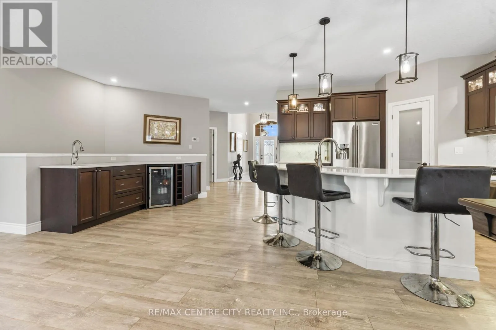 Cross Streets: ROYAL DORNOCH DRIVE. ** Directions: ROYAL DORNOCH DR to MUIRFIELD DR. Welcome to 18 Muirfield Drive, a stunning bungalow built in 2019 by Collier Homes with 1,875 sq ft of main floor living space, this home was designed to impress with thoughtful details throughout. Step inside the inviting entryway featuring a cathedral ceiling that sets the tone for the spacious design. The open-concept living room boasts a tray ceiling with crown molding and a cozy gas fireplace, creating a warm yet sophisticated atmosphere. The 9 ft ceilings throughout amplify the sense of openness, while the bet bar makes entertaining effortless. This home offers 3 generous main floor bedrooms, including a primary retreat complete with a tray ceiling detail, 4-piece ensuite, and private patio sliding doors leading to the backyard. The stamped concrete patio provides a perfect outdoor living space for summer gatherings. Practical features add even more value: a garage equipped with an electric car charger, concrete driveway, a convenient and spacious main floor laundry, and an additional 1,875 sq ft of unfinished basement space with 4 large egress windows ideal for creating a rec room, gym, or additional bedrooms to suit your family's needs. (id:27476)