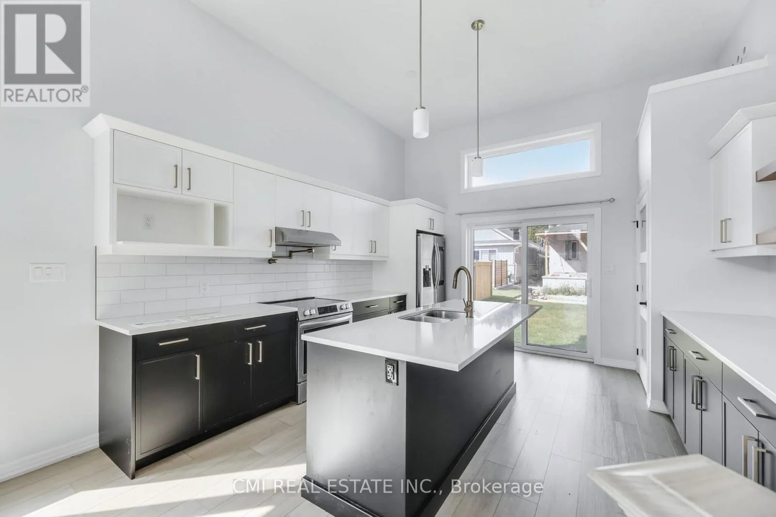 Elm St / Centennial Rd Welcome to this meticulously designed, four-bedroom detached home, offering a bright and open-concept main floor designed for modern living. The heart of the home features a gourmet kitchen with sleek quartz countertops, a walk-in pantry, and island perfect for casual gatherings. The adjacent living room provides a cozy focal point with a custom feature wall, electric fireplace, and thoughtful built-in shelving/cabinetry. Patio doors lead directly from the dining area to the backyard, creating a seamless flow for summer entertaining. The upper level is a private sanctuary, featuring three generously sized bedrooms. Retreat to the luxurious primary suite which boasts a four-piece ensuite and an expansive walk-in closet. The finished lower level adds incredible versatility with a warm family room, a fourth bedroom, and a full bathroom ideal for guests or a private in-law space. Move-in ready and an absolute must-see! (id:27476)
