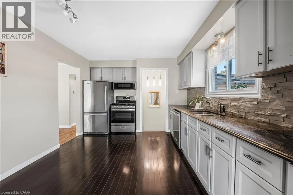 S Edgeware Rd/ Locke Ave Welcome to 27 Locke Ave! This beautifully updated 3 bed, 2 bath home is nestled in a quiet, family-friendly northeast neighbourhoodâsteps from a park, elementary school, and scenic walking trails around Dalewood Conservation Area. Move-in ready and full of charm, this home features a renovated kitchen with granite counters and refaced cabinets, a spacious living room, and 3 main-floor bedrooms including a primary with walkout to the deck. Both bathrooms have been updated with new vanities, ceramic tile floors, and an upgraded toilet. The finished lower level offers a large rec room, office/den, 3pc bath, and ample storage. Recent upgrades include new carpeting, mirrored closet doors, a resurfaced deck, and a new asphalt driveway. The fully fenced, private backyard is perfect for relaxing or entertaining. Plenty of parking with an extended driveway and attached single-car garage. Excellent curb appeal, easy access to London & Hwy 401. A perfect blend of style, function, and locationâready for you to call home (id:27476)