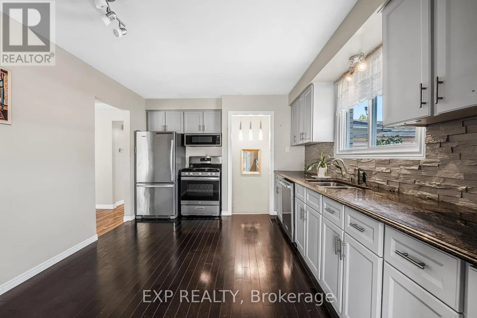 S Edgeware Rd/ Locke Ave Welcome to 27 Locke Ave! This beautifully updated 3 bed, 2 bath home is nestled in a quiet, family-friendly northeast neighbourhoodsteps from a park, elementary school, and scenic walking trails around Dalewood Conservation Area. Move-in ready and full of charm, this home features a renovated kitchen with granite counters and refaced cabinets, a spacious living room, and 3 main-floor bedrooms including a primary with walkout to the deck. Both bathrooms have been updated with new vanities, ceramic tile floors, and an upgraded toilet. The finished lower level offers a large rec room, office/den, 3pc bath, and ample storage. Recent upgrades include new carpeting, mirrored closet doors, a resurfaced deck, and a new asphalt driveway. The fully fenced, private backyard is perfect for relaxing or entertaining. Plenty of parking with an extended driveway and attached single-car garage. Excellent curb appeal, easy access to London & Hwy 401. A perfect blend of style, function, and locationready for you to call home. (id:27476)
