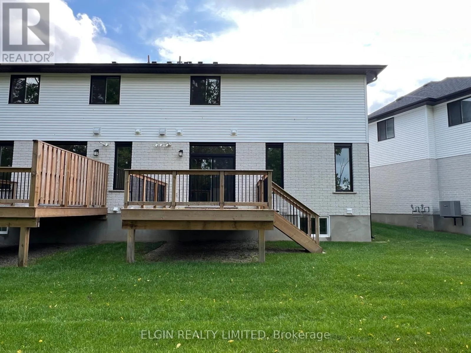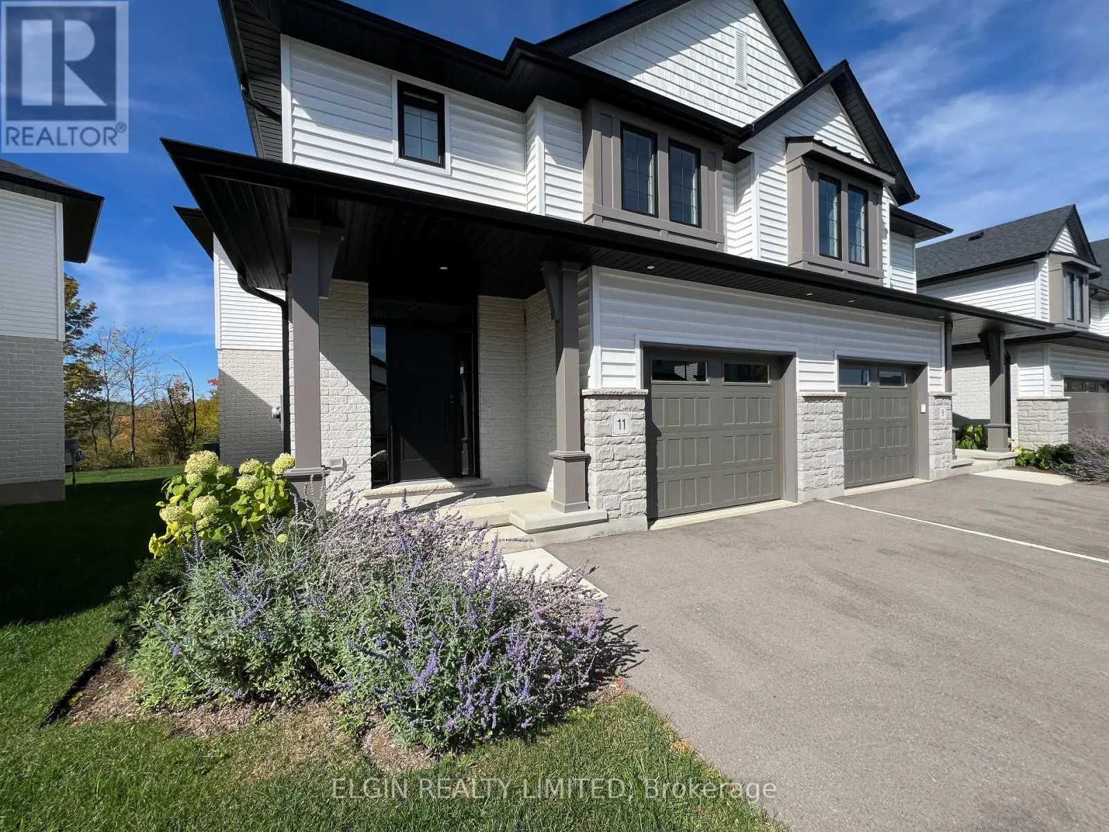 Cross Streets: Sunset Drive & Shaw Valley Drive. ** Directions: Sunset Dr. to Shaw Valley Dr., right on Old Course Rd., left on Royal Dornoch. Welcome to 11-49 Royal Dornoch Drive beautifully crafted by Hayhoe Homes, this semi-detached two-storey perfectly blends luxury, space, and functionality across three finished levels. Offering 4 bedrooms, 2.5 bathrooms, plus a dedicated office, this home features an open-concept main floor with 9' ceilings, hardwood and ceramic tile flooring (as per plan), and a designer kitchen complete with hard-surface countertops, tile backsplash, island, and cabinet-style pantry. The kitchen flows seamlessly into the dining area and great room, highlighted by an electric fireplace and patio doors leading to a rear deck with views of trees and the valley beyond. Upstairs, the spacious primary suite includes a walk-in closet and a spa-inspired ensuite with a freestanding soaker tub, tiled shower, and double vanity with hard-surface counters. Three additional bedrooms, a 4-piece main bath, and convenient second-floor laundry complete the upper level. The finished lower level adds even more living space with a large family room and private office ideal for working from home. Additional features include 200 AMP electrical service, garage door opener, BBQ gas line, Tarion New Home Warranty, and numerous upgraded finishes throughout. Located in the desirable Shaw Valley community, close to parks, trails, schools, shopping, restaurants, and just a short drive to the beaches of Port Stanley. (id:27476)