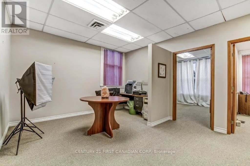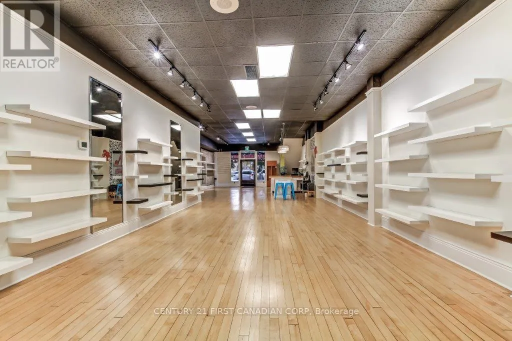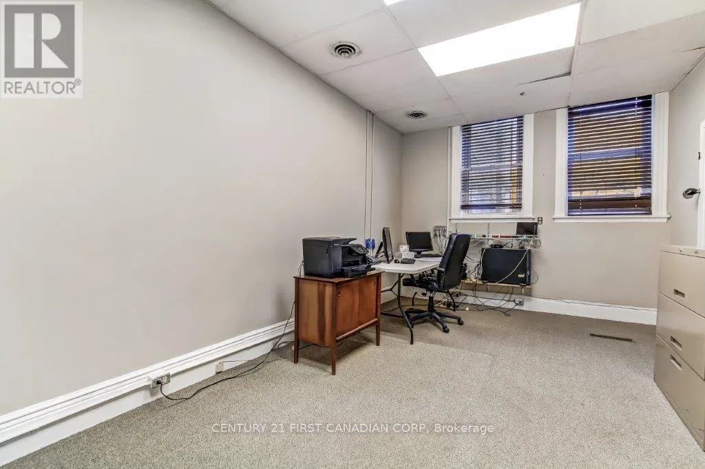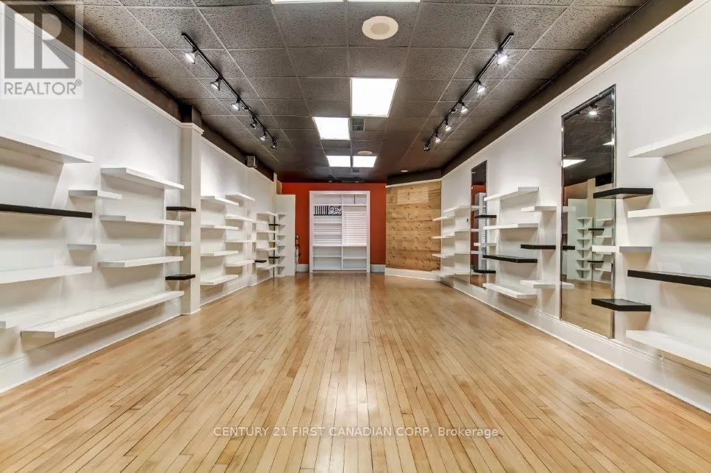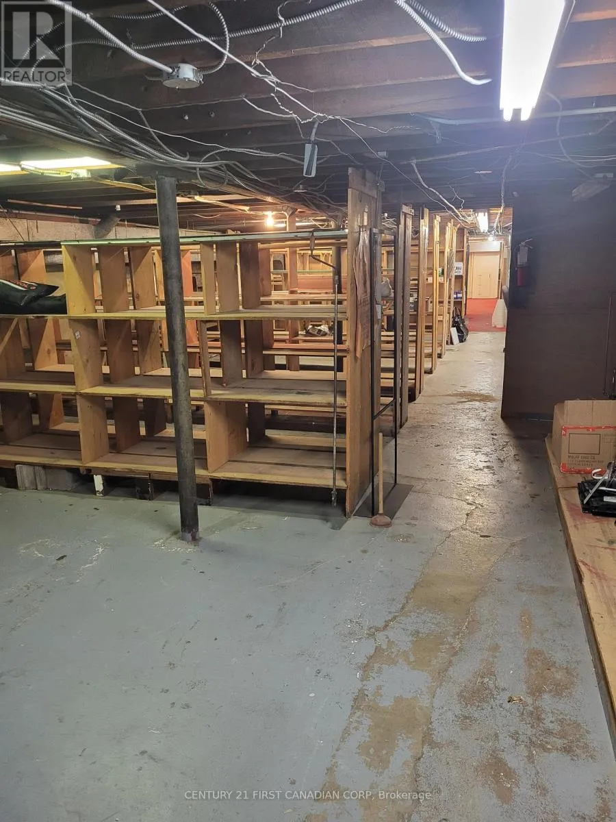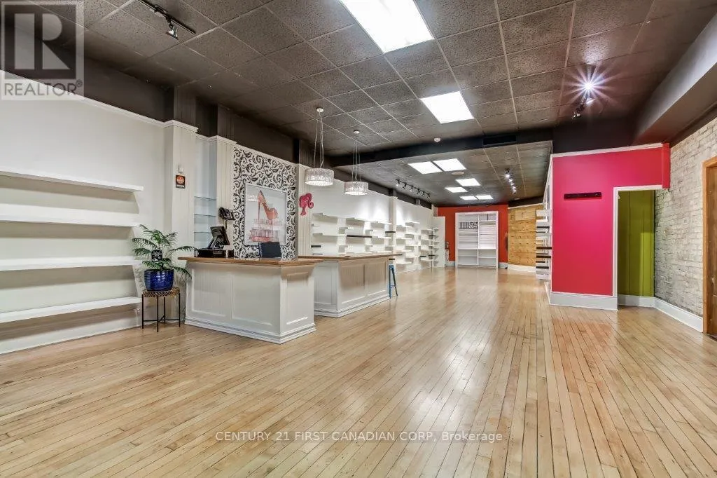 Talbot St between Mary St and Southwick St This prime downtown location in St Thomas property offers a move-in ready retail space or other multi-use options with C2 zoning. Located at 429 Talbot St the storefront offers excellent visibility, high traffic area with unlimited growth potential. Formally a footwear and clothing business, this building awaits a new transformation to suit your needs. Spacious basement for warehousing with conveyor belt system. The second floor currently set up for office use consisting of 4 offices, meeting area, small kitchenette and a 2pc bath. Conversion for residential use is a possibility. The office space is approximately 1100sqft with a separate entrance at the front of the building. Also two designated private parking spaces with back door entry access and alarm system. This is a great opportunity for business owners or investors in the downtown core area! (id:27476)