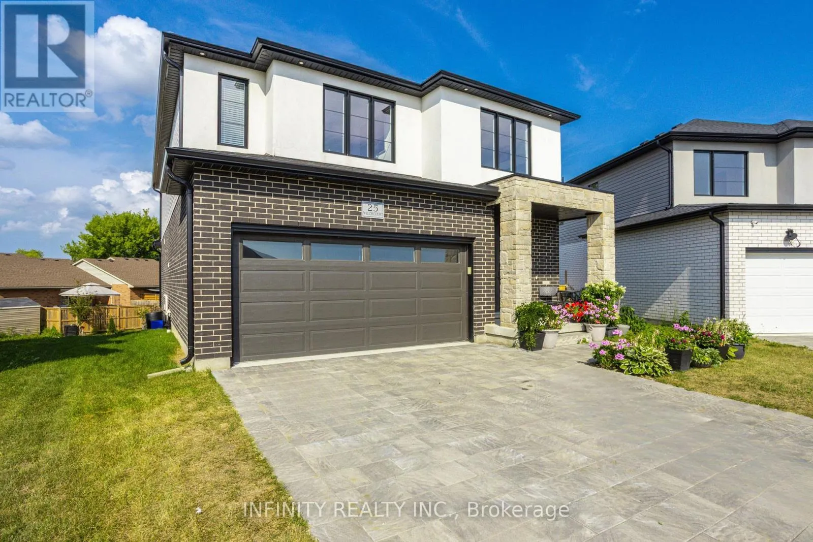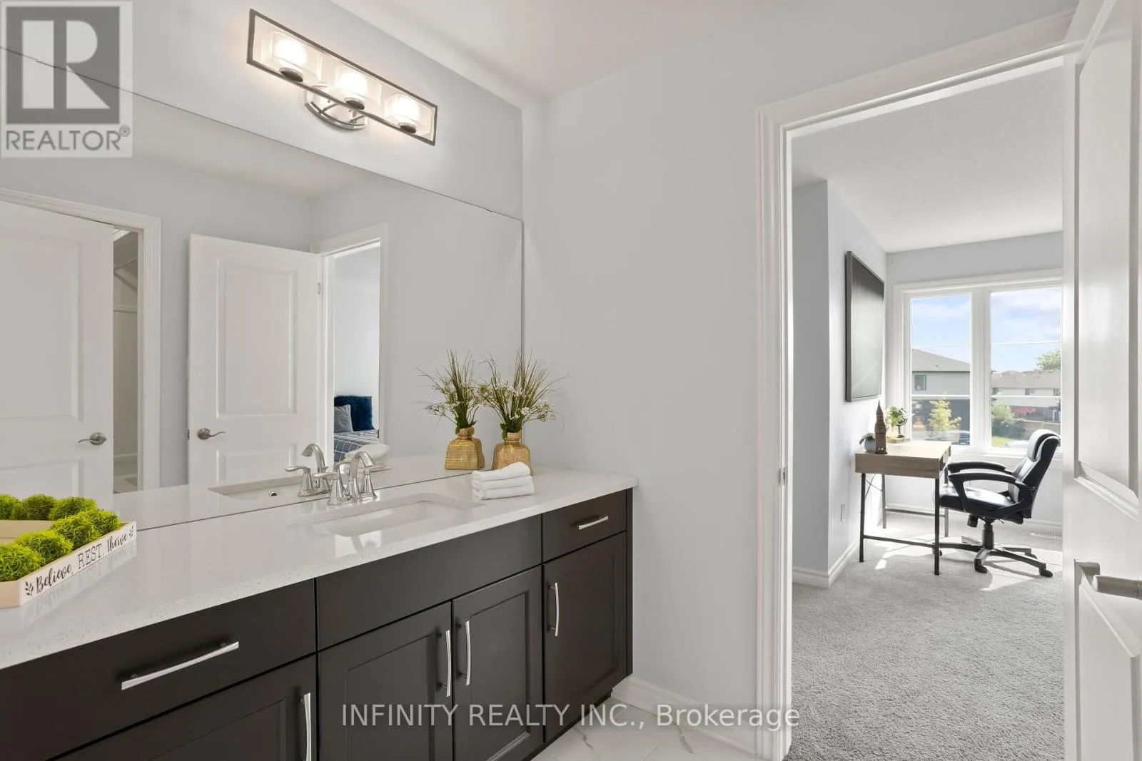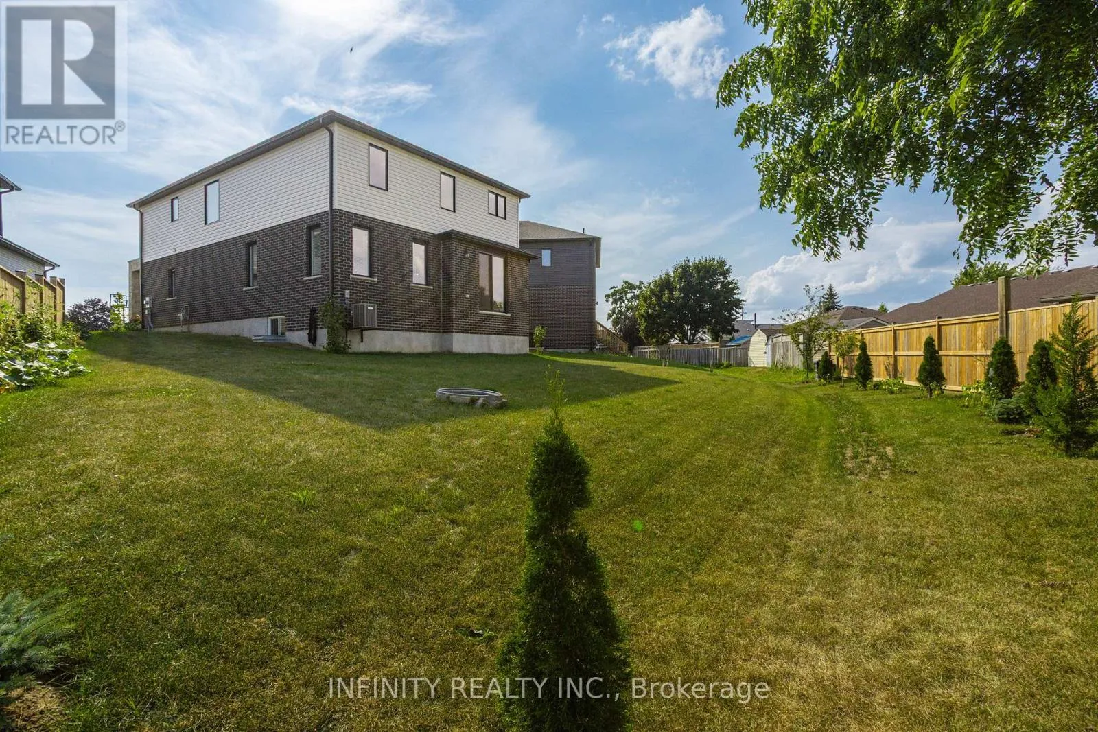 Wellington St & Welch Ct Welcome to this like NEW contemporary 2 storey home situated on a Premium Oversized Pie shaped lot, tucked away at the end of a quiet Cul-de-sac in desirable St. Thomas. Offering approx. 3811 sq ft of total space with 2629 sq ft of above grade elegant living space & still under Tarion New Home Warranty with 5 years remaining, this 4 Bed 4 Bath beauty is move-in ready.The main level features hardwood and ceramic tile throughout, pot lights, a bright Living Room, Formal Dining Room & a spacious Dinette. The stunning contemporary Kitchen boasts an island, quartz counters, a stylish backsplash & abundant cabinetry, perfect for both everyday living & entertaining. A convenient 2pc Bath and main floor Laundry complete this level.Upstairs, the huge Primary Suite offers a walk-in closet and spa like 5pc Ensuite with dbl sinks, glass shower & soaker tub. A second bedroom includes its own 3pc ensuite, while two additional spacious bedrooms share a 4pc Jack & Jill bath, ensuring every bedroom has direct bathroom access.With parking for 6 (2 Car garage + 4 Car driveway) and a large yard, theres plenty of room for family and guests. Some images are virtually staged. Located minutes from Elgin Mall, shopping plazas, schools, parks, restaurants & with easy access to the highway, this home blends style, comfort & convenience. (id:27476)