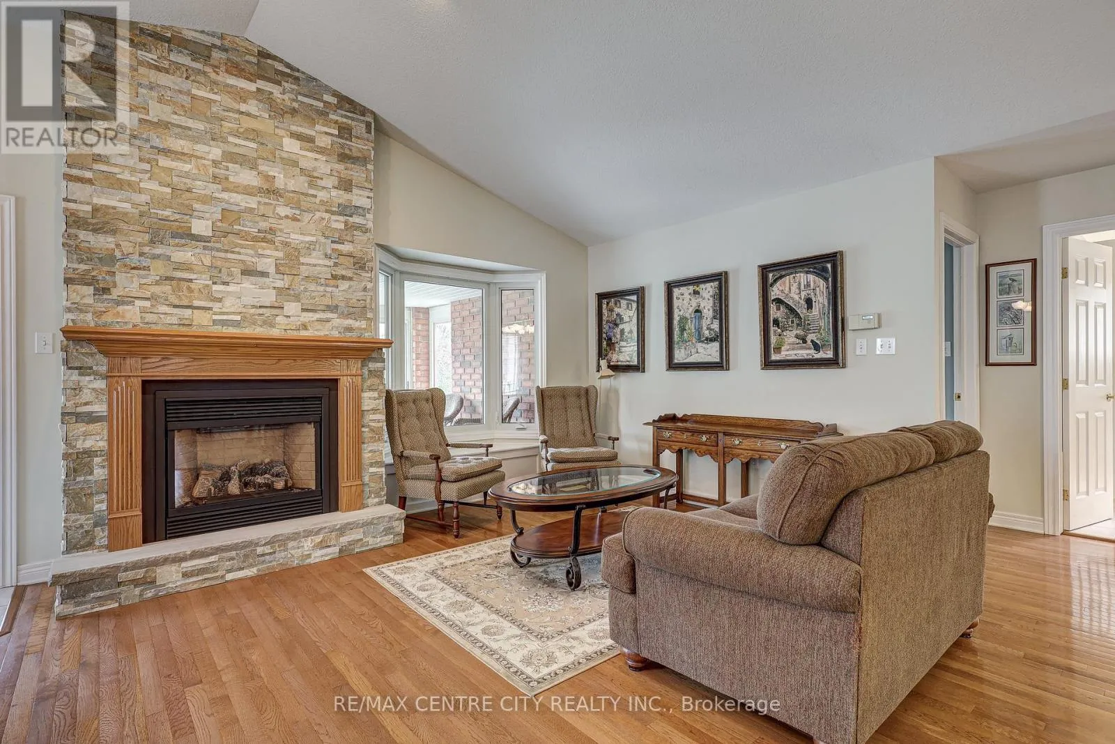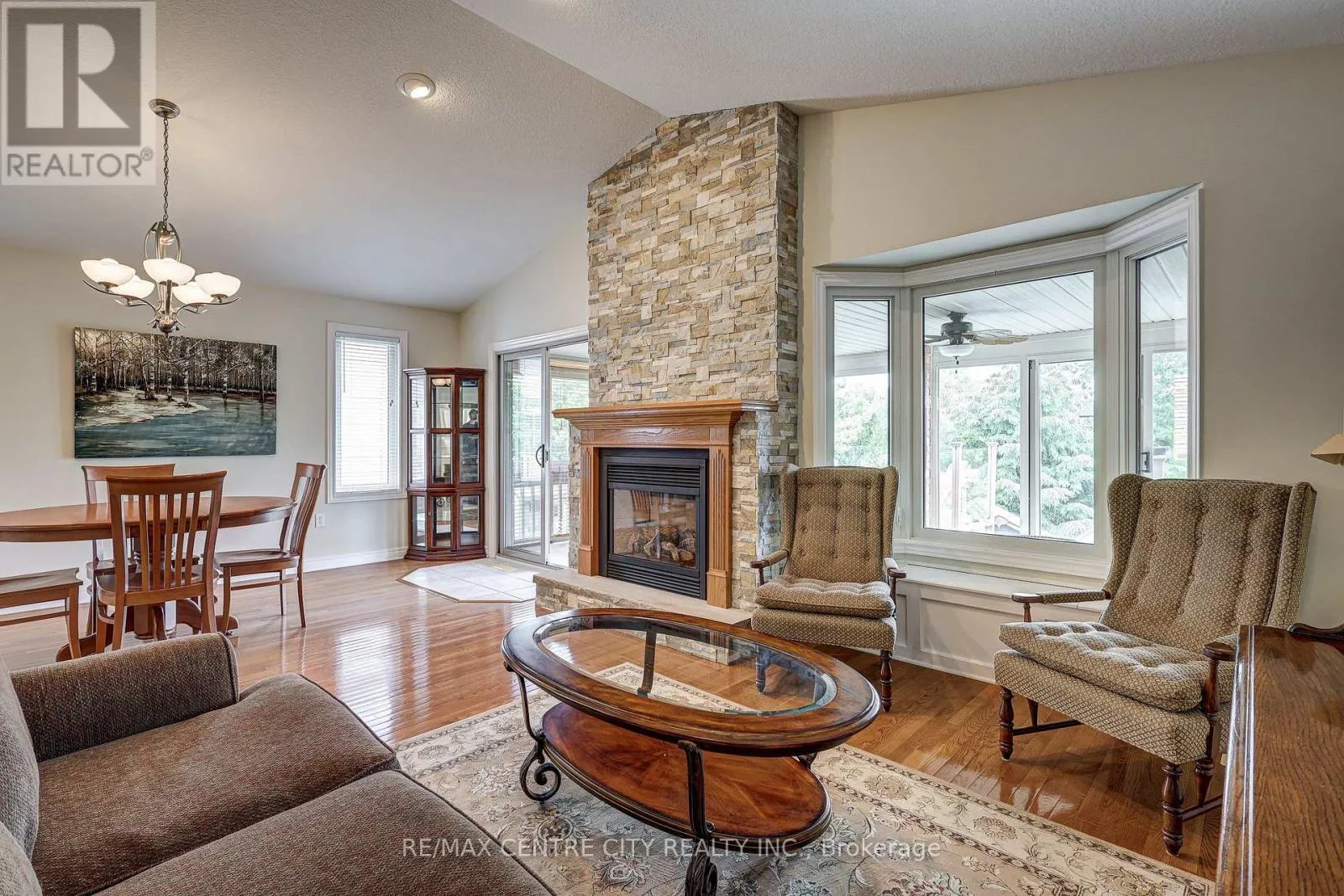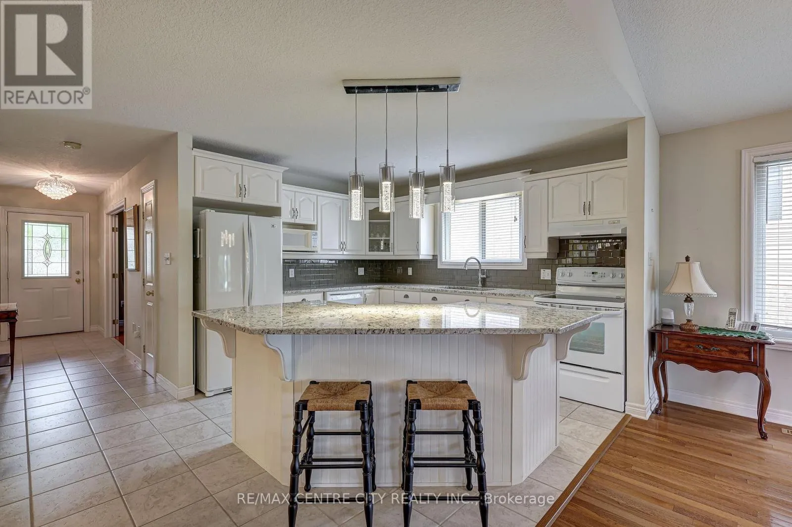 Cross Streets: Hickory Lane and Lake Margaret Trail. ** Directions: Off Lake Margaret Trail, north of Southdale Line. Stunning bungalow backing onto a pond and trails that run through prestigious Lake Margaret Estates. This unique home offers a walk-out basement, 2 sunrooms, an elevated deck with great views, an open concept main floor with a vaulted ceiling, an updated kitchen with and island and granite countertops, main floor laundry, a large master bedroom with a vaulted ceiling and walk--in closet. Great additional living space in the level with an l-shaped rec-room with access to a sunroom leading into the backyard, 2 additional bedrooms and a 3 piece bathroom. New roof approximately 2018. A must see! (id:27476)