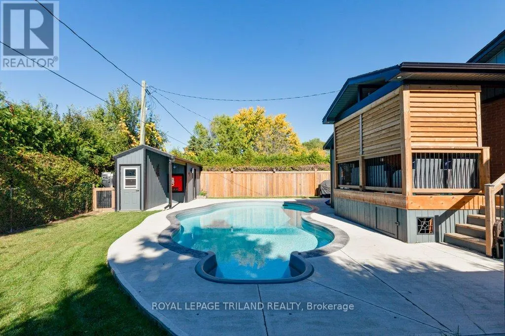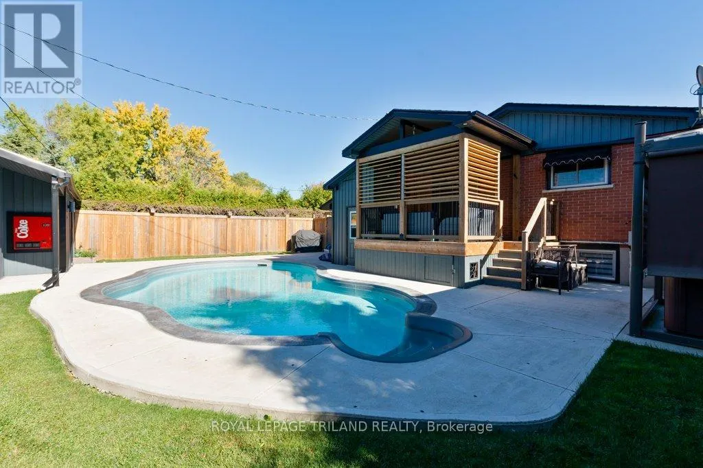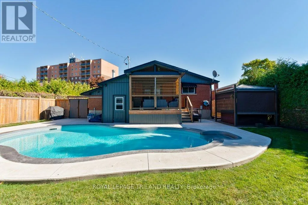Cross Streets: South Edgeware Road & Burwell Drive. ** Directions: From Highbury Avenue, West on South Edgeware to intersection of Burwell Road & South Edgeware, take next right onto Confederation Drive. Home is on the left. Pride of ownership is evident in this meticulously maintained raised bungalow! Upon entering the main floor you'll find a spacious Casey's kitchen, gas cooktop, built in oven and inviting island perfect for entertaining. The open concept family room and dining room provide plenty of space to gather with everyone. A large primary suite, additional bedroom, and four piece bathroom with jetted tub complete the first layer. In the lower level you'll find a large family room, two more generously sized bedrooms with custom built in closets, three piece bathroom, laundry room with additional wash tub, egress windows throughout the entire level with new blinds (2024), and plenty of well designed storage spaces. A side entrance makes this space the perfect inlaw suite! Outside, you'll find the perfect backyard escape inside the city. A fully fenced yard, covered deck. Relax in your gorgeous in ground pool, surrounded by a concrete patio, hot tub hydrospa with seating for 6, upgraded covana electric gazebo lid with privacy screens, pool house, storage shed and so much more! Truly a must see to appreciate all this family home has to offer! Other notable upgrades include updated 200 amp wiring and panel, R40 insulation in the attic, R20 throughout the home, and new vapour barrier. Conveniently located just two blocks away from all schools including Locke's Public School, as well as Monsignor Morrison Catholic School, a short walk to 1 Password Park and mere minutes from future VW Battery plant. This home has something for everyone in your family! Lot Dimensions:121.32 ft x 62.09 ft x 115.33 ft x 50.39 ft (id:27476)