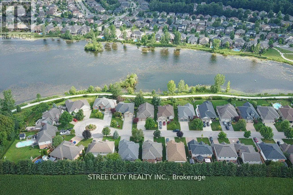 Cross Streets: Lake Margaret Tr. ** Directions: From Southdale. Lakeside Bungalow with Unmatched Views & Trail Access - A Nature Lover's Dream Imagine waking up each morning, coffee in hand, watching kayaks & canoes drift across Lake Margaret-right from the comfort of your great room or primary bedroom. Or spending peaceful evenings under the stars, sitting in the hot tub or gathered around the outdoor gas fireplace beneath a gazebo, wine glass in hand & the sound of nature all around you. This stunning bungalow offers 3,400 sq ft of finished living space & backs directly onto Lake Margaret with a private gate to the walking & hiking trails that lead to Pinafore Park-perfect for daily strolls, runs, fishing adventures & ice skating just steps from your door. Located on a quiet cul-de-sac, this home blends tranquil living with refined design. The main floor features a bright & open concept living room, kitchen, & dining area with rich hardwood flooring and large windows that frame breathtaking lake views. The great room's gas fireplace setup create the perfect atmosphere for relaxing or entertaining, with patio doors opening to your private backyard oasis. The chef's kitchen boasts a large island, updated appliances, gas stove, & extensive cabinetry-ideal for cooking with a view. The primary bedroom offers wall-to-wall custom closet, a sleek 3-piece ensuite, & of course, more views of the lake to wake up to. Two additional main floor bedrooms & a 4-piece bathroom with a jetted tub offer comfort for family or guests. The fully finished lower level is built for entertaining or multi-generational living, featuring a full second kitchen, large family room with another gas fireplace, a rec room with pool table (included), & an "other room" currently used as a 4thbedroom.Step outside to a two-tiered deck, landscaped pond, and a beautifully designed outdoor living space complete with gazebo & gas fireplace-all overlooking the water and framed by mature trees and trail access. This is more than a home-it's a lifestyle! (id:27476)