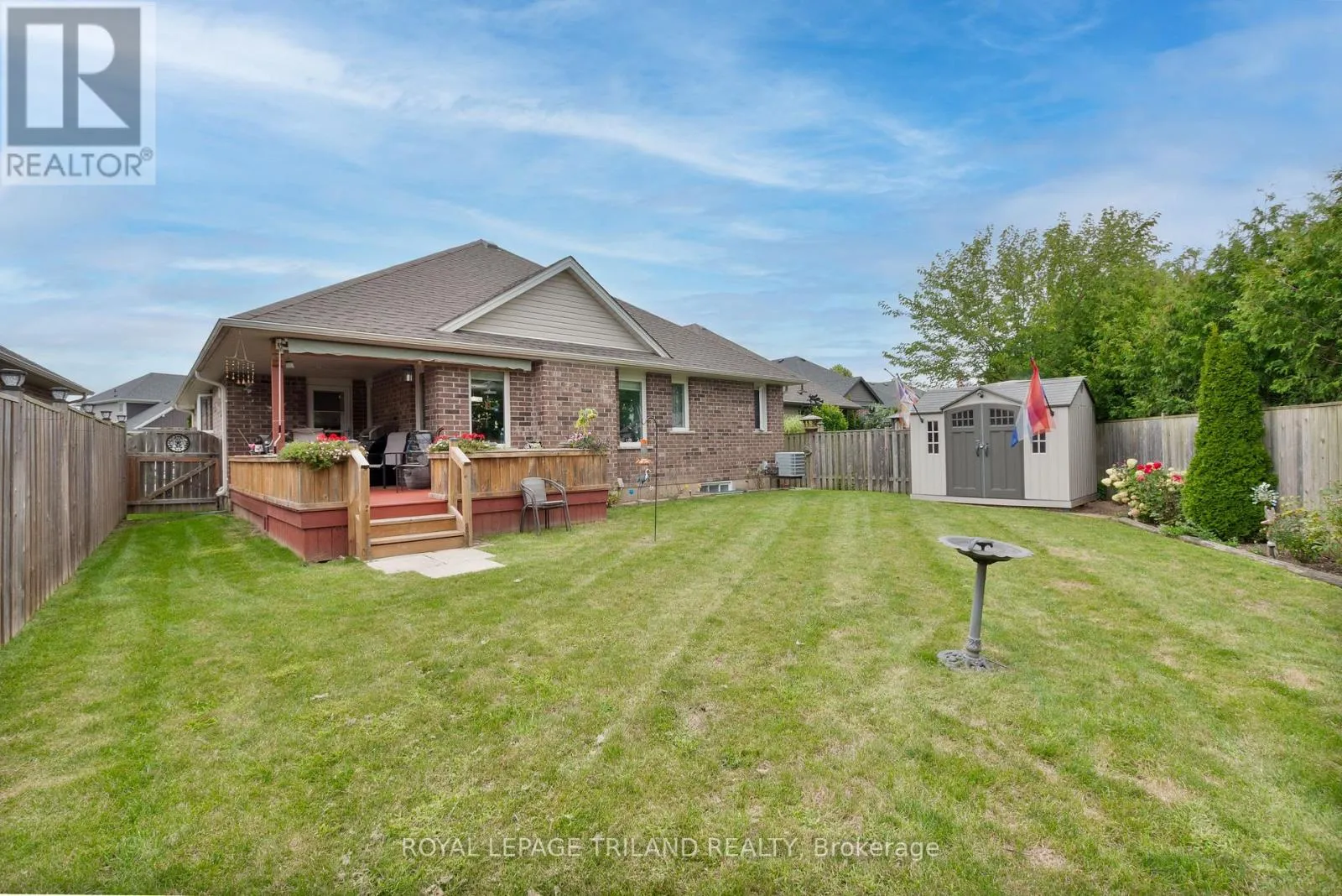 Cross Streets: Pine Valley Drive. ** Directions: Head West from Pine Valley onto Westlake. House is on the left of the first curve. Welcome to this wonderful 3 Bedroom, 3 Full Bathroom bungalow in the north end of St. Thomas. This home has a private double wide driveway with an attached double car garage. Walking into the home from the covered porch is the wide foyer with coat closet and entrance to the garage. Off the foyer through the double wide doors is a bedroom. Close to the bedroom is a 4 pc bath, convenient for guests. Off to the open concept kitchen is a space for the dining table. The kitchen has newer cabinets, an island, lots of counter space with tiled backsplash as well as an over the range microwave and dishwasher. The living room features a vaulted ceiling and gas fireplace. Newer flooring throughout the main floor. A door off the kitchen leads to a partially covered deck, great for the BBQ. The deck then extends to the private fully fenced yard that includes a shed. The primary bedroom which is big enough for a king sized bed has a walk-in closet and an ensuite bath with walk-in tub. Also on the main floor is a convenient laundry room with an extra sink. Going down to the full sized basement there is a professionally finished rec-room, bedroom and 4 pc bath. That just covers some of the lower level. There's lots of room to add another bedroom, office or gym. Other features of the home include central vac, a sump pump, fresh paint throughout and stained deck. The location is close to 1 password park and provides easy access to London and the 401. Have a look today! (id:27476)