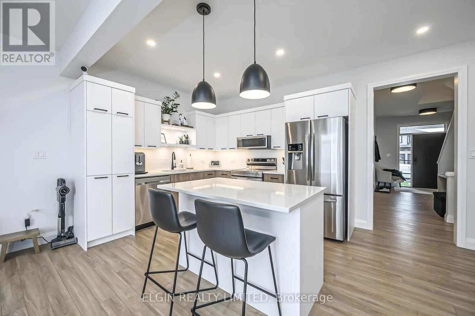 Cross Streets: Renaissance Drive. ** Directions: Off Renaissance Drive East onto Evylean. Welcome to 33 Evylean Court! This modern freehold townhome by Hayhoe Homes (2023) is located in the desirable Orchard Park Meadows community. Move-in ready, this stylish 2-storey townhome offers 3 bedrooms, 2.5 bathrooms, and a single-car garage equipped for and EV charger. Step inside to a bright, open-concept main floor featuring 9' ceilings, luxury vinyl plank flooring, and a designer kitchen with quartz countertops, island, and pantry. The spacious great room includes sliding doors leading to a private rear deck with BBQ gas hookup - perfect for entertaining. Upstairs, you'll find a generous primary suite with a walk-in closet and ensuite, along with two additional bedrooms, a 4-piece bath, and convenient second-floor laundry. The unfinished basement is ready for your personal touch - with a bathroom already roughed in and pre-framed walls for easy finishing. Additional features include central air, HRV, and numerous upgraded finishes throughout. Enjoy freehold living with no condo fees in a prime southeast St. Thomas location - close to the hospital, parks, schools, trails, shopping, and restaurants. Only 25 minutes to London and a short drive to Port Stanley beaches. Don't miss your chance to call 33 Evylean Court home! (id:27476)
