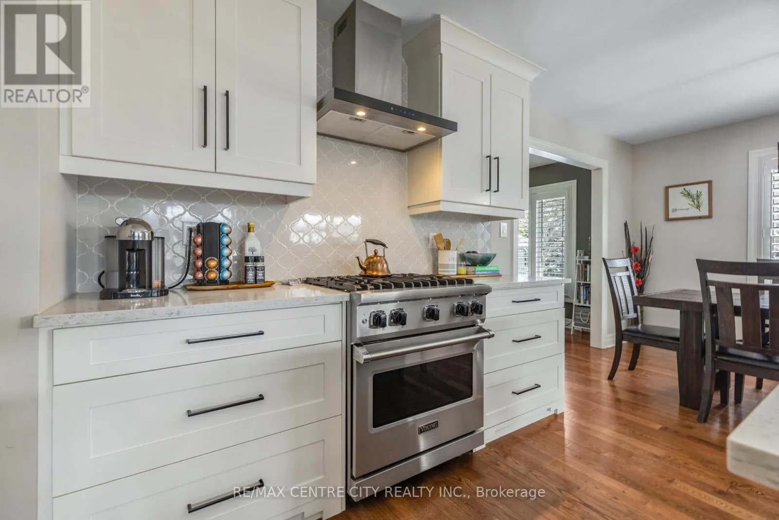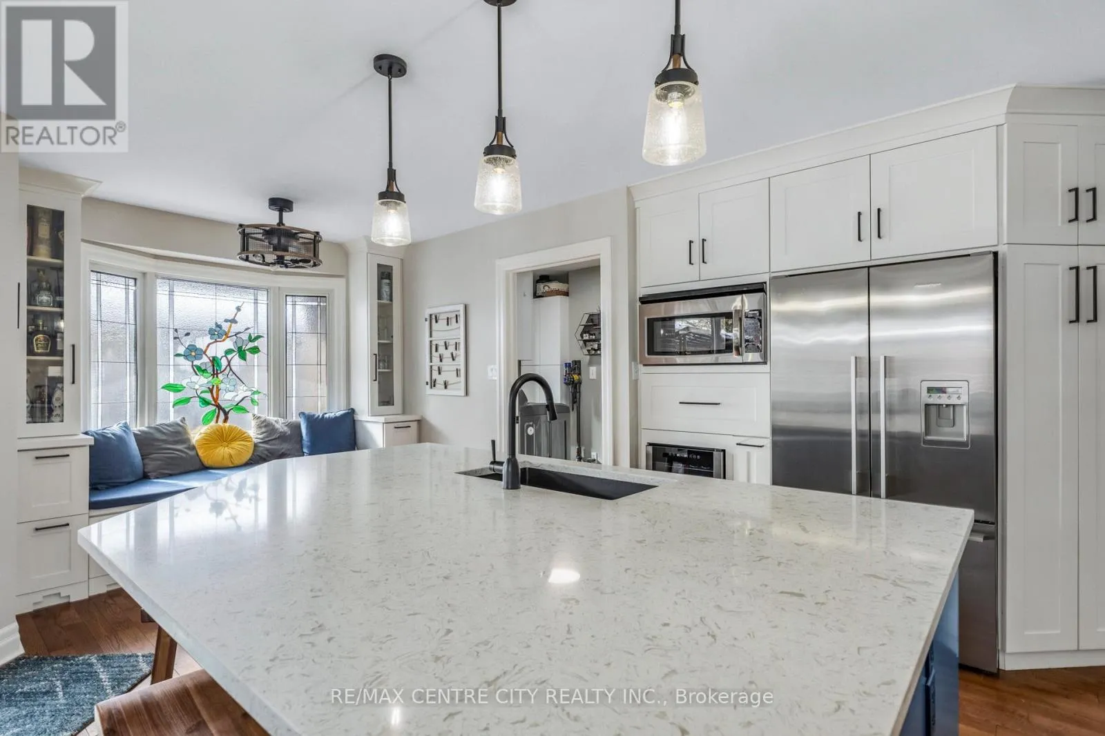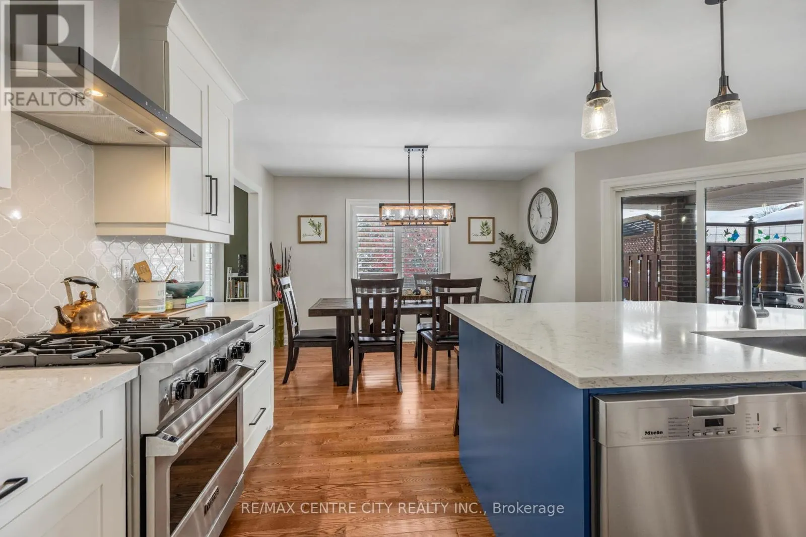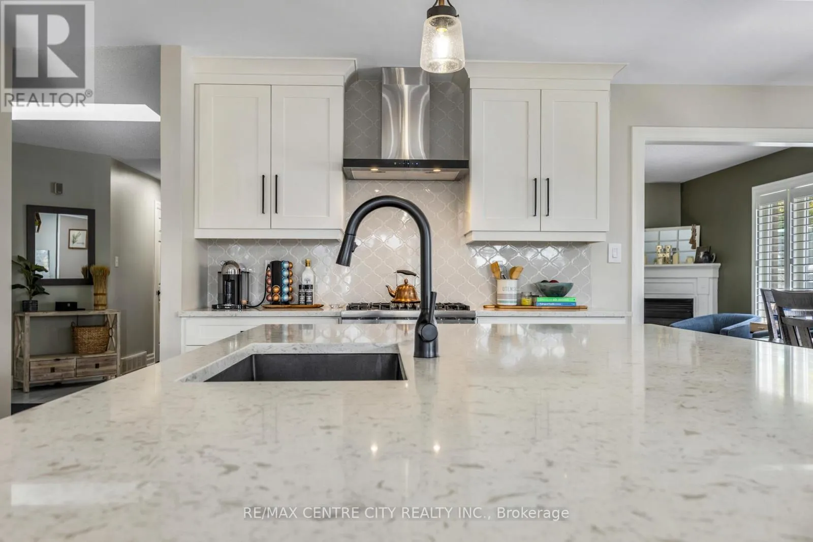 Cross Streets: CHESTNUT ST. & DAUGHERTY. ** Directions: TURN NORTH FROM CHESTNUT ST TO DAUGHERTY DRIVE. Welcome Home! This charming 1672 sq ft ranch-style home, complete with a two-car garage and abundant character, is sure to impress. Upon entering, you are greeted by a spacious tile foyer that bathes in natural light, leading into the expansive living room featuring a gas fireplace. This area seamlessly flows into the custom kitchen, which boasts a large island with seating for four, a reading bench, and access to the backyard. The kitchen was updated in 2023, featuring new quartz countertops, a sink, backsplash, refaced cabinetry, and a range hood that's sits above the top of the line viking gas stove. The main floor also hosts a generous primary bedroom with a 4-piece ensuite, two guest bedrooms, a laundry room, a 2-piece powder room, and a 4-piece guest bathroom. The basement offers a rec room with ample space for the whole family, a den that could be converted into a large fourth bedroom with the addition of an egress window, a cold room, a utility room large enough to serve as a gym, and a 4-piece bathroom. Additional updates include a concrete driveway, a new front door, a rear sliding door, a French drain in the backyard, and updated ensuite finishings, furnace, garage heater. (id:27476)