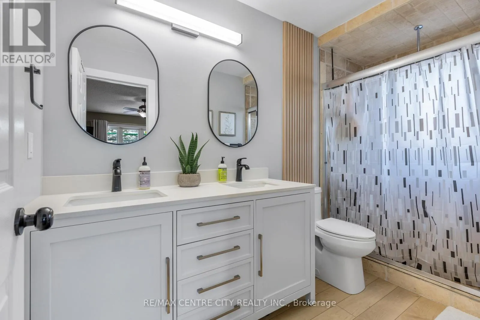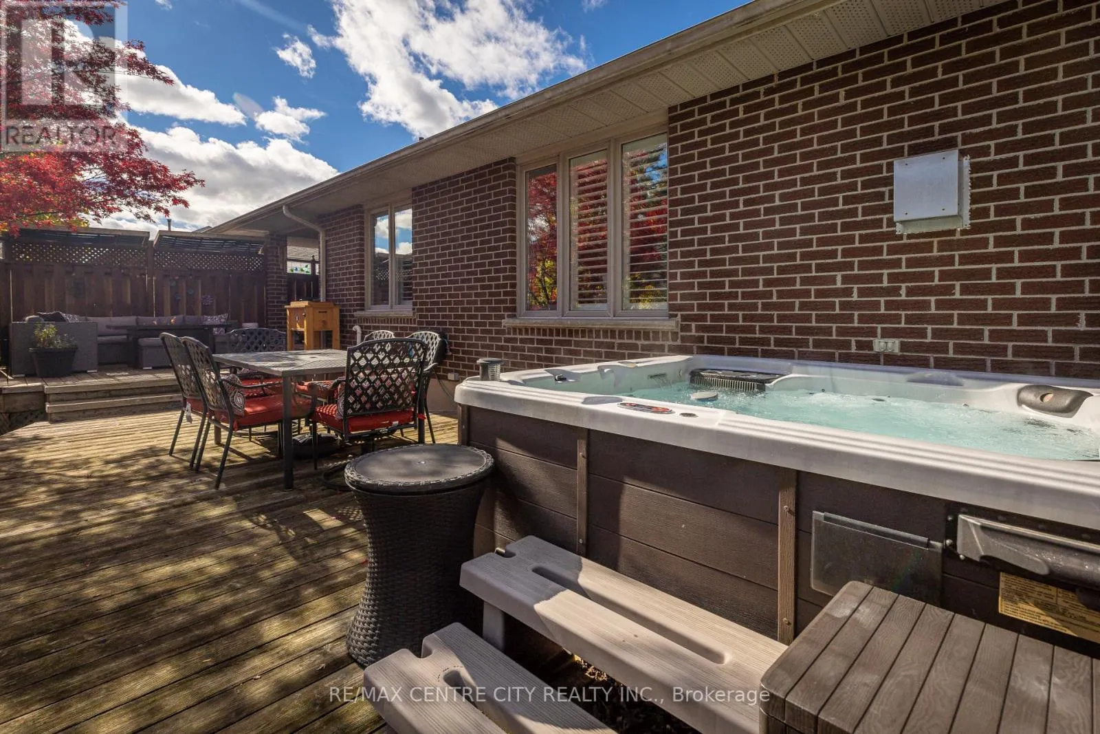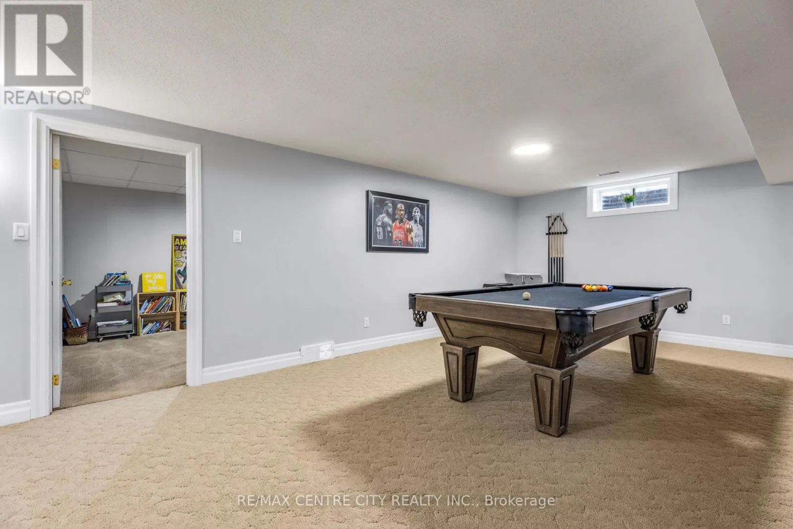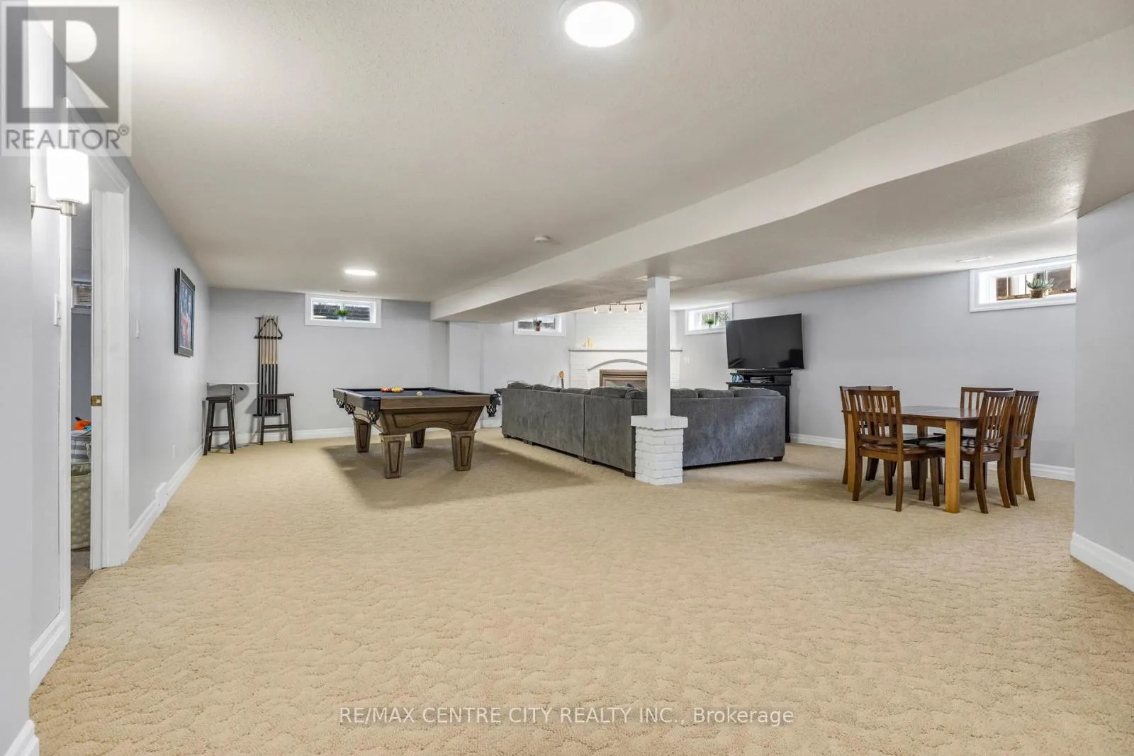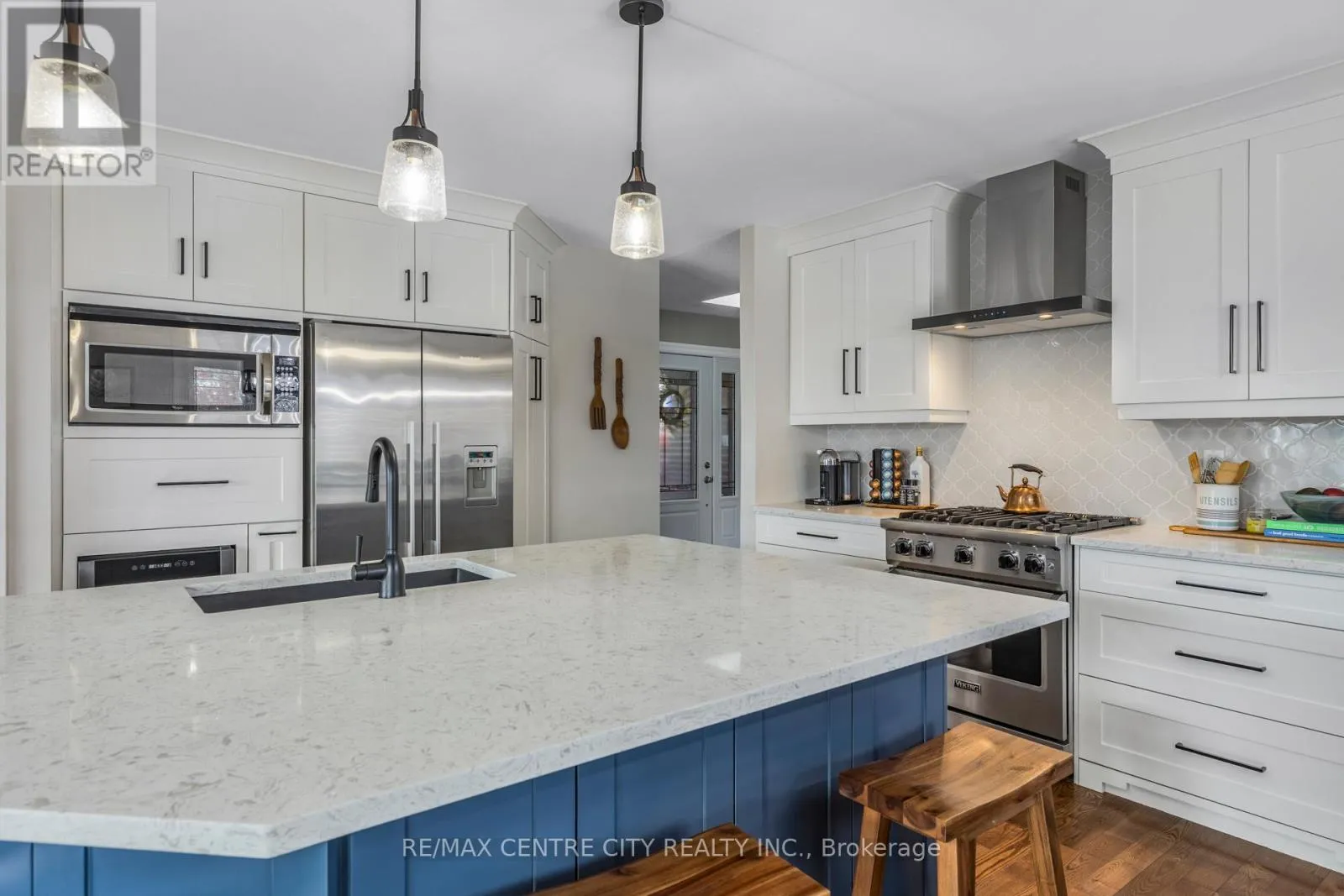 Cross Streets: CHESTNUT ST. & DAUGHERTY. ** Directions: TURN NORTH FROM CHESTNUT ST TO DAUGHERTY DRIVE. Welcome Home! This charming 1672 sq ft ranch-style home, complete with a two-car garage and abundant character, is sure to impress. Upon entering, you are greeted by a spacious tile foyer that bathes in natural light, leading into the expansive living room featuring a gas fireplace. This area seamlessly flows into the custom kitchen, which boasts a large island with seating for four, a reading bench, and access to the backyard. The kitchen was updated in 2023, featuring new quartz countertops, a sink, backsplash, refaced cabinetry, and a range hood that's sits above the top of the line viking gas stove. The main floor also hosts a generous primary bedroom with a 4-piece ensuite, two guest bedrooms, a laundry room, a 2-piece powder room, and a 4-piece guest bathroom. The basement offers a rec room with ample space for the whole family, a den that could be converted into a large fourth bedroom with the addition of an egress window, a cold room, a utility room large enough to serve as a gym, and a 4-piece bathroom. Additional updates include a concrete driveway, a new front door, a rear sliding door, a French drain in the backyard, and updated ensuite finishings, furnace, garage heater. (id:27476)