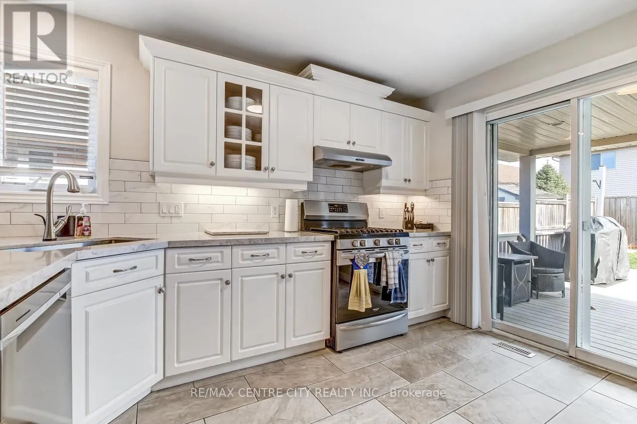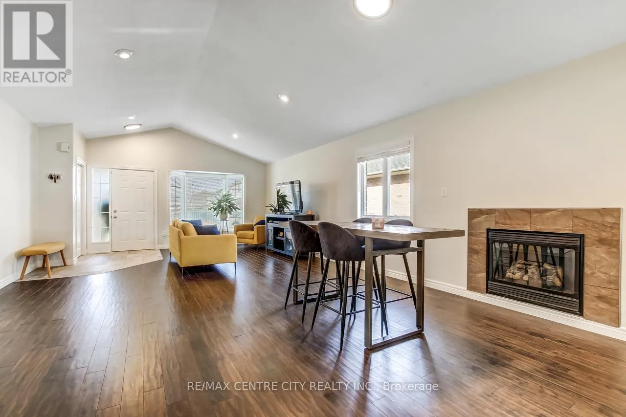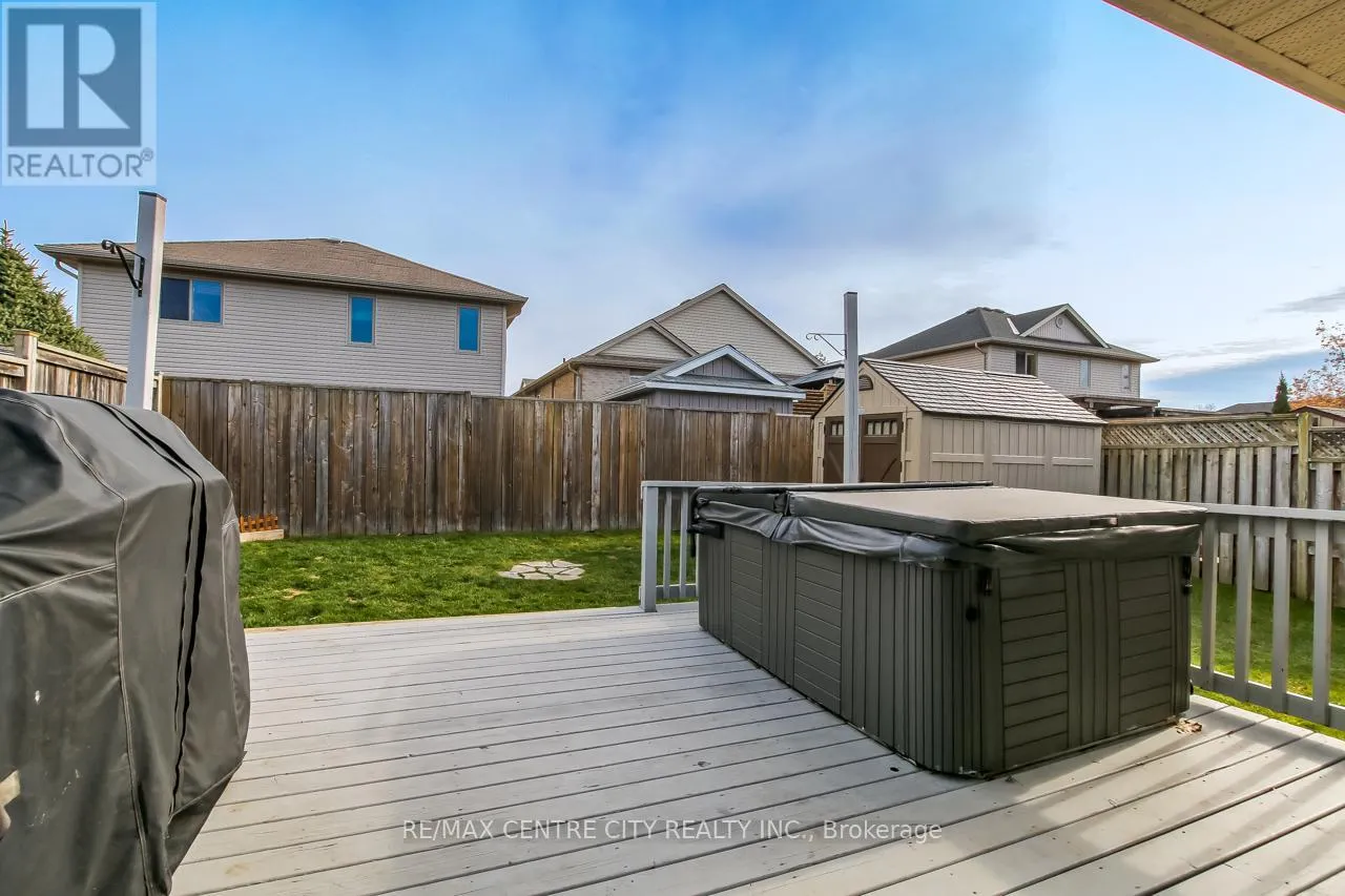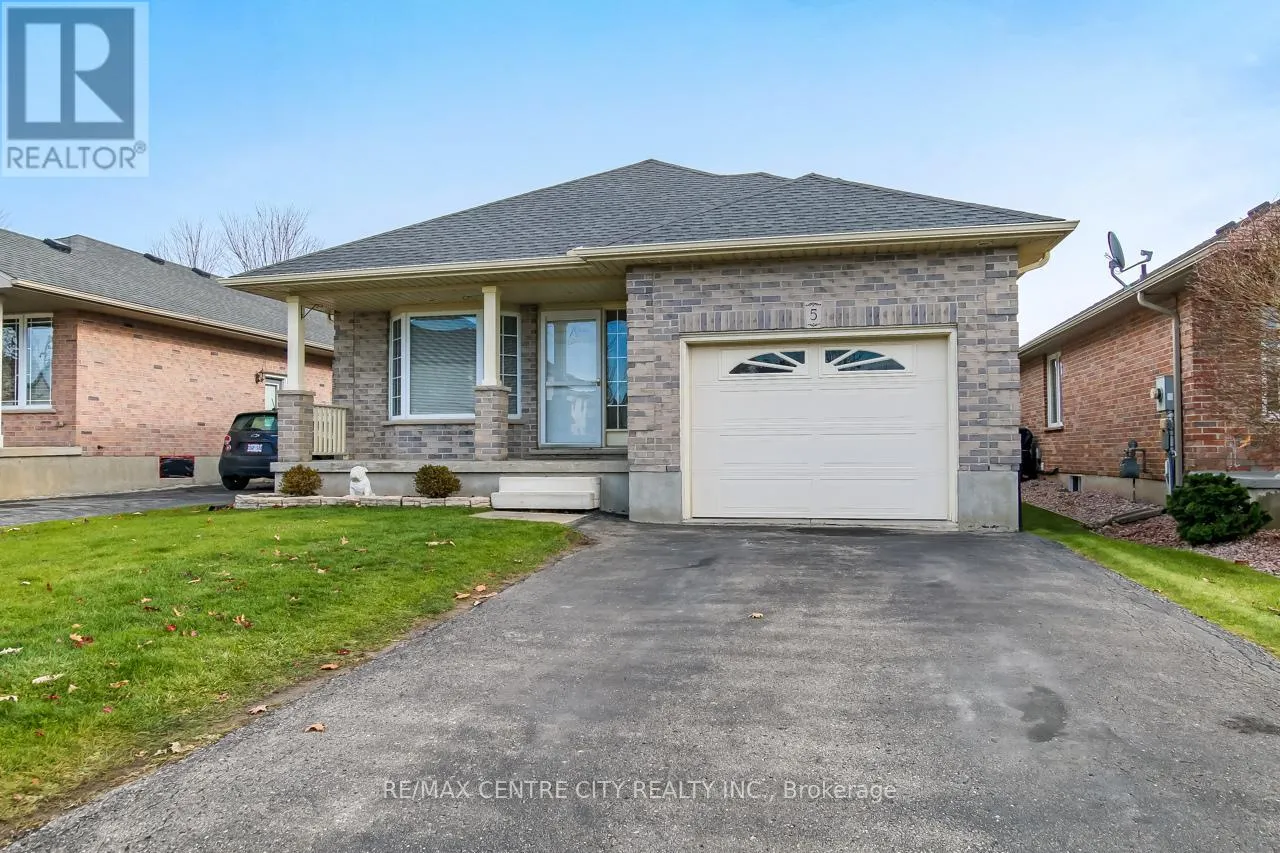 Cross Streets: SOUTHGATE PKWY. ** Directions: FROM 401, CON'T TOWARDS ST. THOMAS, TAKE FIRST EXIT AT ROUNDABOUT ONTO SUNSET DRIVE, TURN LEFT ONTO SOUTHDALE LINE. AT THE ROUNDABOUT TAKE THIRD EXIT ONTO FAIRVIEW AVE. TURN RIGHT ONTO SOUTHGATE PKWY, THEN LEFT ON FAITH BLVD. HOME IS ON YOUE LEFT. Welcome to 5 Faith Blvd., a warm and inviting brick bungalow tucked into a quiet south-side St. Thomas neighbourhood-just steps from St. Joseph's Secondary School and the Fanshawe College campus. From the moment you arrive, the covered front porch and tidy curb appeal set the tone for a home that's been truly cared for and enjoyed. Inside, cathedral ceilings and a bright open-concept layout create an immediate sense of space. Sunlight pours through the large bay window, filling the living and dining area with natural warmth, while the gas fireplace adds cozy charm. The kitchen overlooks it all-perfect for staying connected while cooking-and features a breakfast bar and pantry for added convenience. The main floor offers a spacious primary bedroom, a versatile second bedroom or office, a 3-piece bath, and easy inside access to the attached 1-car garage. Downstairs, the fully finished lower level expands your living space with a generous family room ideal for movie nights or gatherings, a third bedroom, a den perfect for a home office or hobby space, and another 3-piece bath. A combined laundry and utility area adds convenience, with ample storage found throughout the home. Step into the fully fenced backyard and discover your private retreat: a recently updated covered deck with a gas BBQ hookup, perfect for outdoor dining, a garden shed for additional organization, and a relaxing hot tub to unwind under the night sky. Fresh paint and updated lighting throughout make this home truly move-in ready. Ideal for first-time buyers, downsizers, or anyone seeking a comfortable, well-maintained home in a fantastic location. (id:27476)