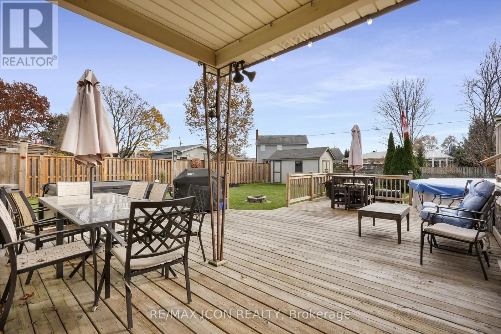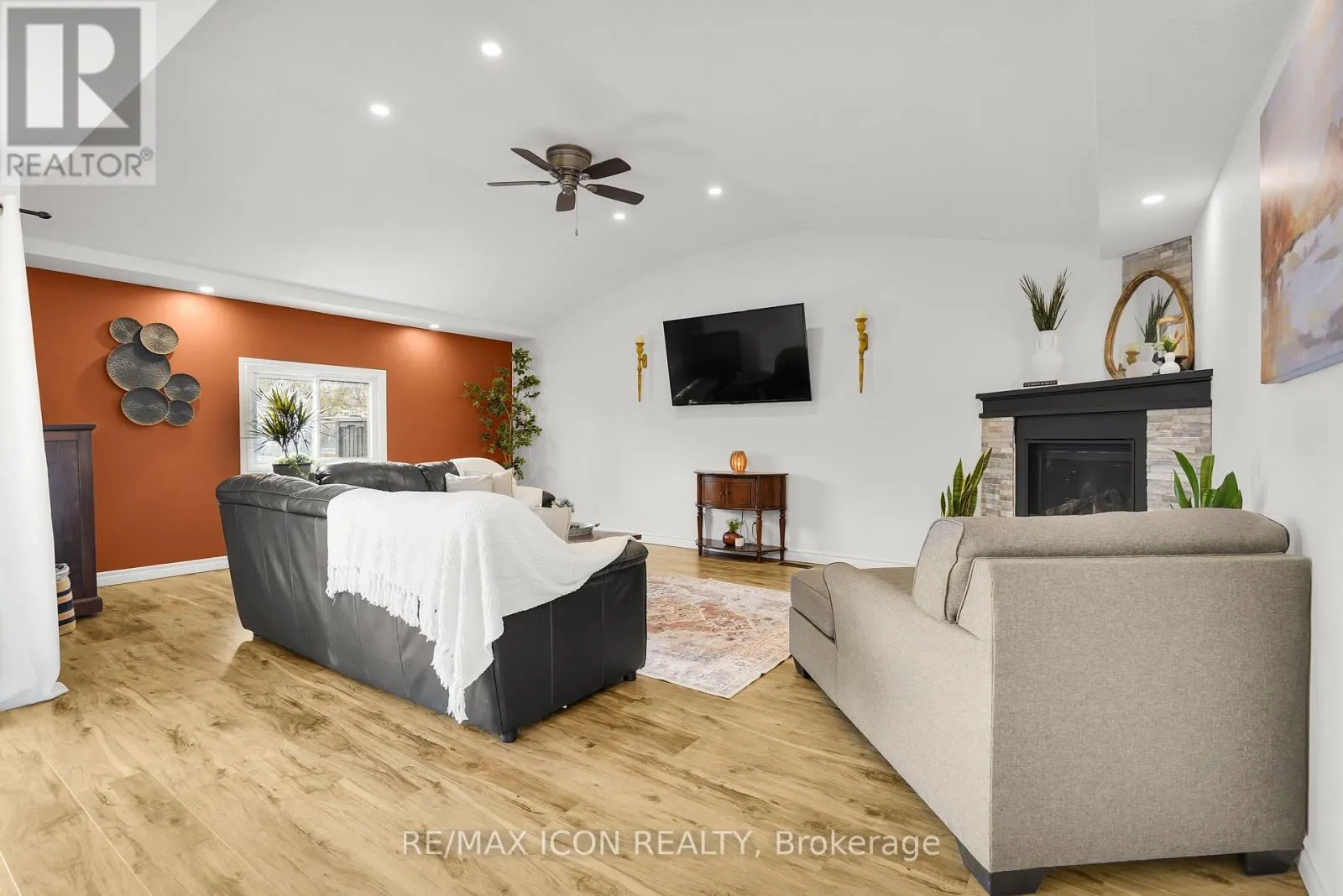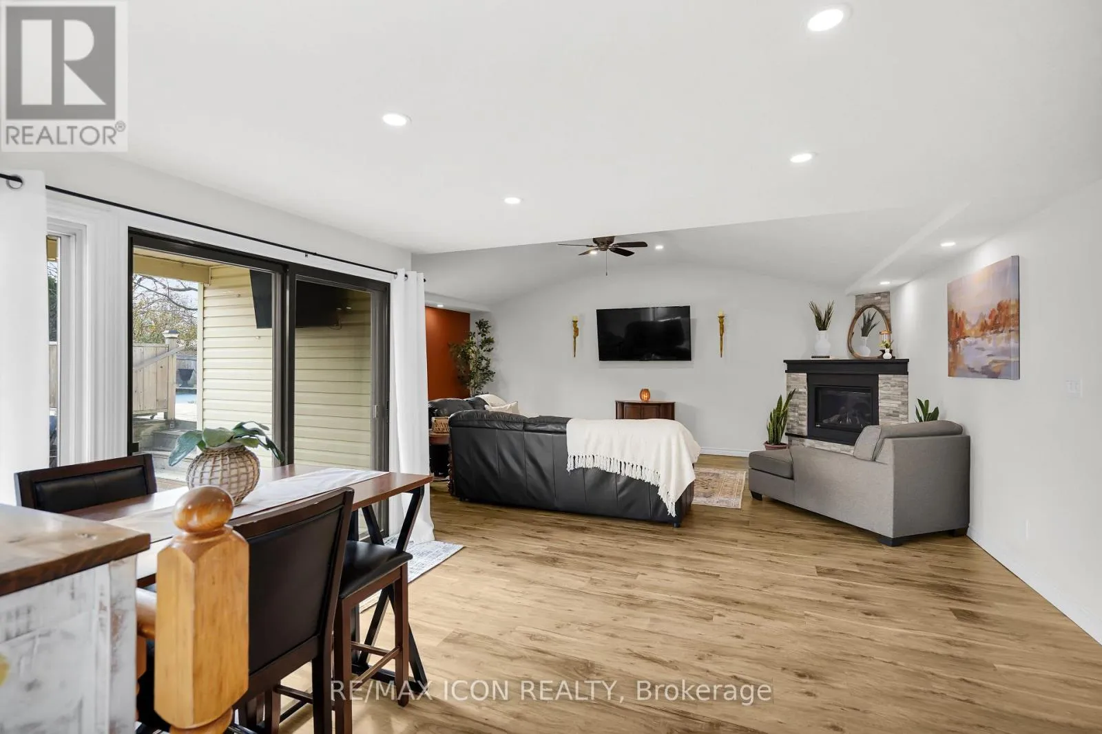 Cross Streets: Manor Road. ** Directions: Travel South on Manor Road Turn Right onto Sinclair Ave (Dead End Street). Welcome to 4 Sinclair Ave in beautiful St. Thomas Ontario. This impeccably maintained home offers a bright, welcoming layout featuring three well-appointed bedrooms-highlighted by a spacious main-floor primary suite-and two tastefully renovated bathrooms (2022). The impressive living room addition (2019) showcases tall ceilings and a gas fireplace, creating an elegant and comfortable setting for everyday living or entertaining. A finished basement provides additional flexible living area to suit a variety of needs. Situated on a quiet dead-end street, the property features a fully fenced, generously sized backyard designed for enjoyment and relaxation. The attached garage has been thoughtfully converted into a recreation space, with the option for easy restoration to a traditional garage. Outdoor amenities include an above-ground heated pool with a new liner (2023), a hot tub(2023), a quality Wagler shed 10 X 16 feet (2023), and a spacious two-tiered deck ideal for gatherings. A new furnace installed in 2024 further enhances comfort and efficiency. Combining modern updates, functional design, and inviting indoor-outdoor living, this move-in-ready home presents an excellent opportunity in a desirable St. Thomas location. (id:27476)