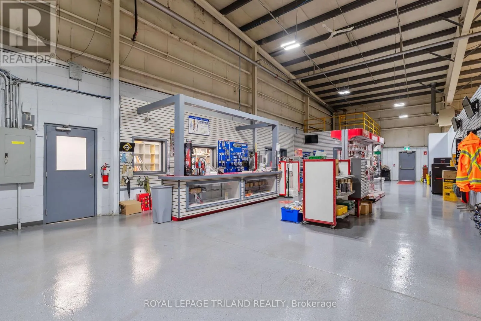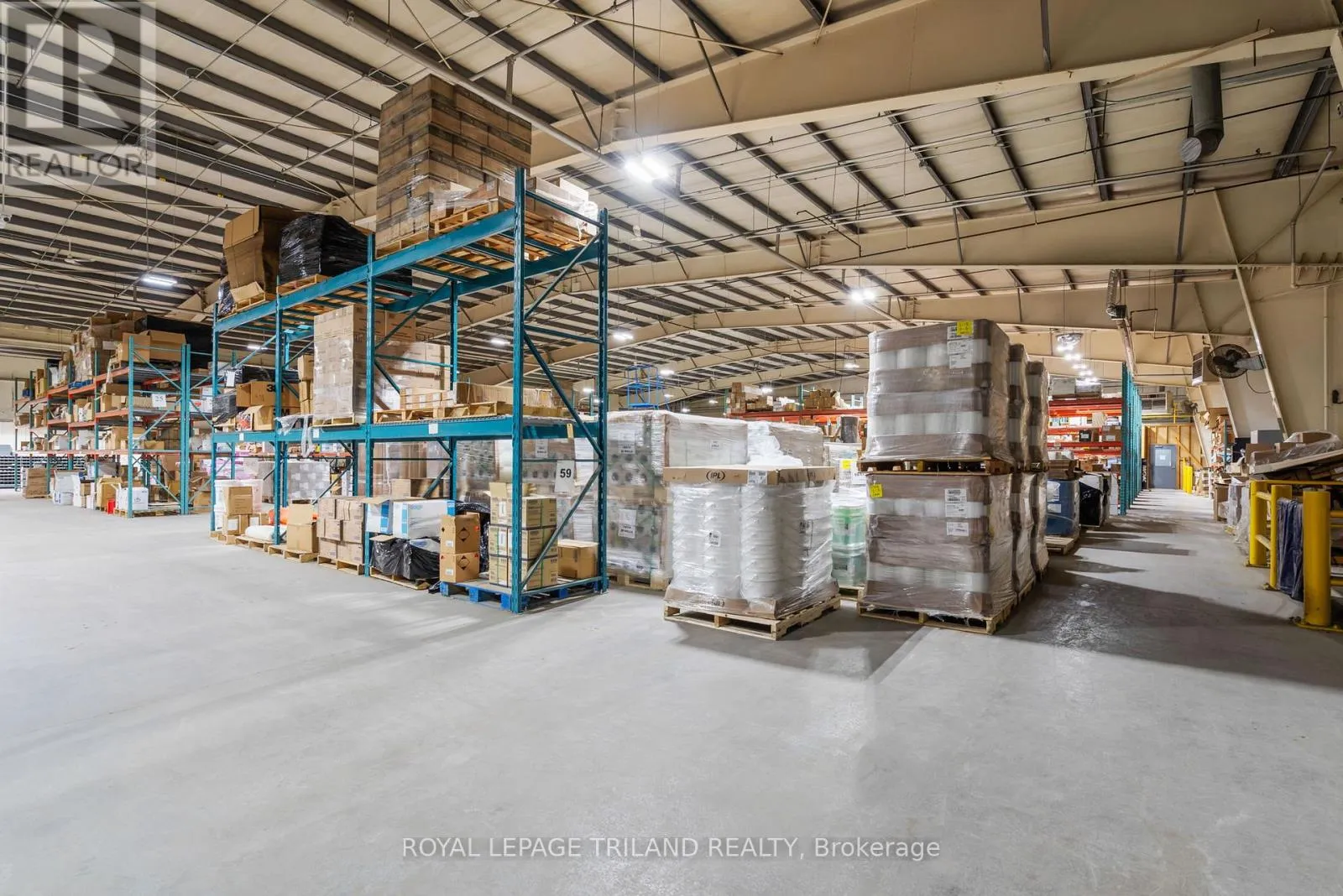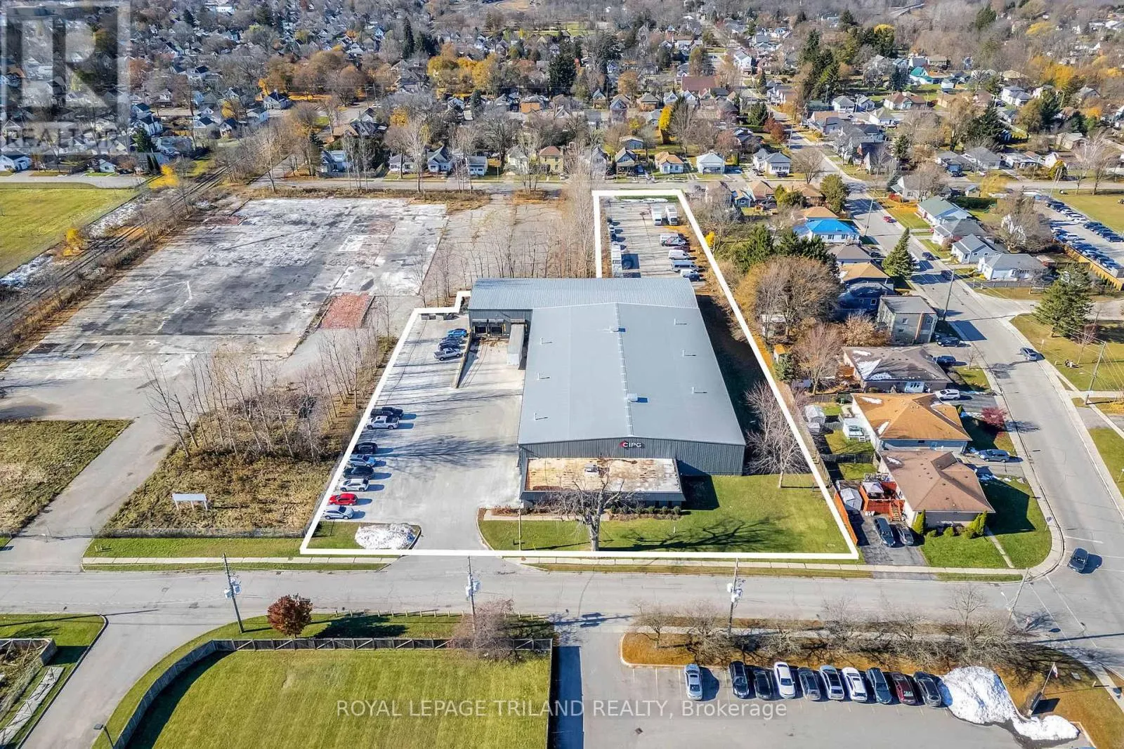 Cross Streets: EDWARD STREET. ** Directions: FIRST AVE TO EDWARD EAST TO WOODWORTH TURN SOUTH. This immaculate warehouse property, located in the northeast portion of St. Thomas, is close to the new battery plant currently under construction and would make an ideal location for a feeder industry. The building was originally constructed in 1974, with an addition completed in 2004.The office portion of the building includes approximately 2,665 square feet, featuring a reception area, private offices, staff washrooms, a retail area, and a boardroom. The warehouse portion is approximately 31,055 square feet. The main area measures roughly 161 feet by 119 feet with a clear height of 17 to 20 feet at the center and includes one office and staff washrooms. The newer section measures approximately 59 feet by 168 feet and includes an office, storage area, a drive-in truck door, and three loading docks. The entire building is fully sprinklered. The rear parking area is fenced and gated. There have been numerous updates and renovations to the building over the past several years. Please note the zoning for this property was changed in 2018 to residential; however, the current warehousing use is legal and conforming. In consultations with the Planning Department of the City of St. Thomas, it was stated that the City is willing to work with a new owner to ensure compliance with any future use. The vendor has occupied the building since 2008 and is relocating to a new facility currently under construction. They would prefer a sale-leaseback for 2-3 years while the new facility is being completed. (id:27476)