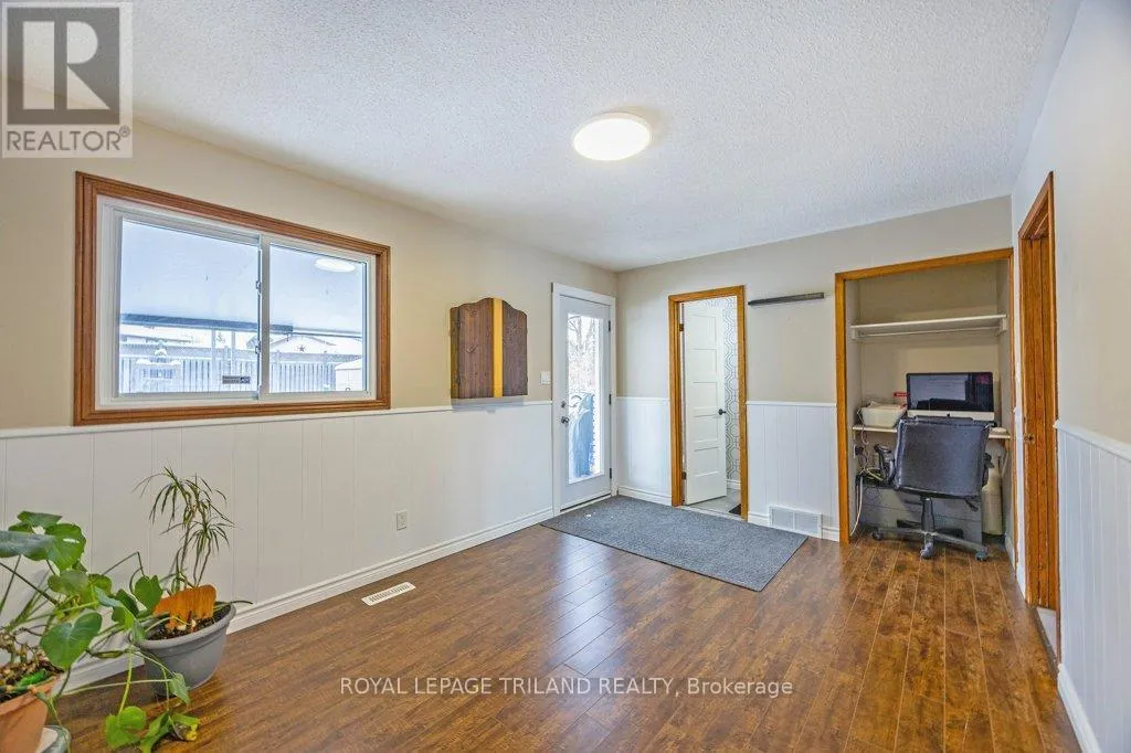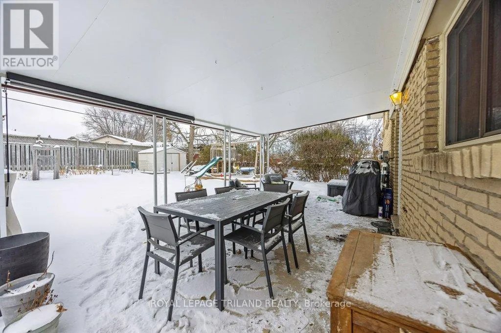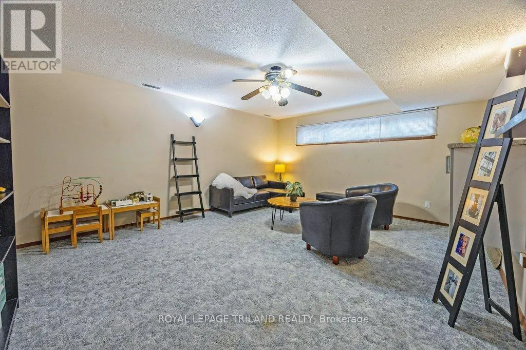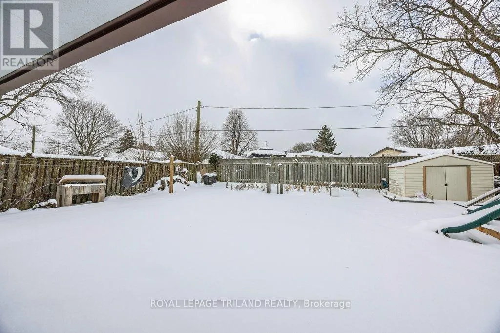 Cross Streets: South Edgeware Road and Confederation Drive. ** Directions: East on South Edgeware Road., North on Confederation Drive., West on Stirling Crescent. Discover this north St. Thomas 4-bedroom, 1.5-bath home featuring a functional layout, attached garage, and fully fenced backyard. Located on a quiet crescent near 1Password Park, you'll enjoy access to walking paths, soccer fields, courts, a splash pad, and a playground. The home is also a short drive to St. Thomas General Hospital, Pinafore Park, Dalewood trails, Waterworks Park, and provides convenient commuting via Highbury and Wellington Roads to London. The main level includes a tiled foyer with closet and shoe storage, direct garage access, and a versatile mudroom/office area with a 2-piece bath and a walkout to the fenced yard. Outside, enjoy a covered patio, playset, and firepit area. The second level showcases an updated kitchen with quartz counters, backsplash, included appliances, and easy flow to the bright dining and living areas. Upstairs, you'll find updated carpet (2025), a linen closet, four bedrooms with closets-one currently outfitted as a walk-in closet with organizer system-and a 4-piece bathroom with tub/shower. The lower level features a spacious rec room with built-in cabinetry and a utility/laundry room with access to a crawl space offering abundant additional storage.This home delivers a practical, well-defined layout ideal for buyers who value separate living spaces and a family-friendly location! (id:27476)