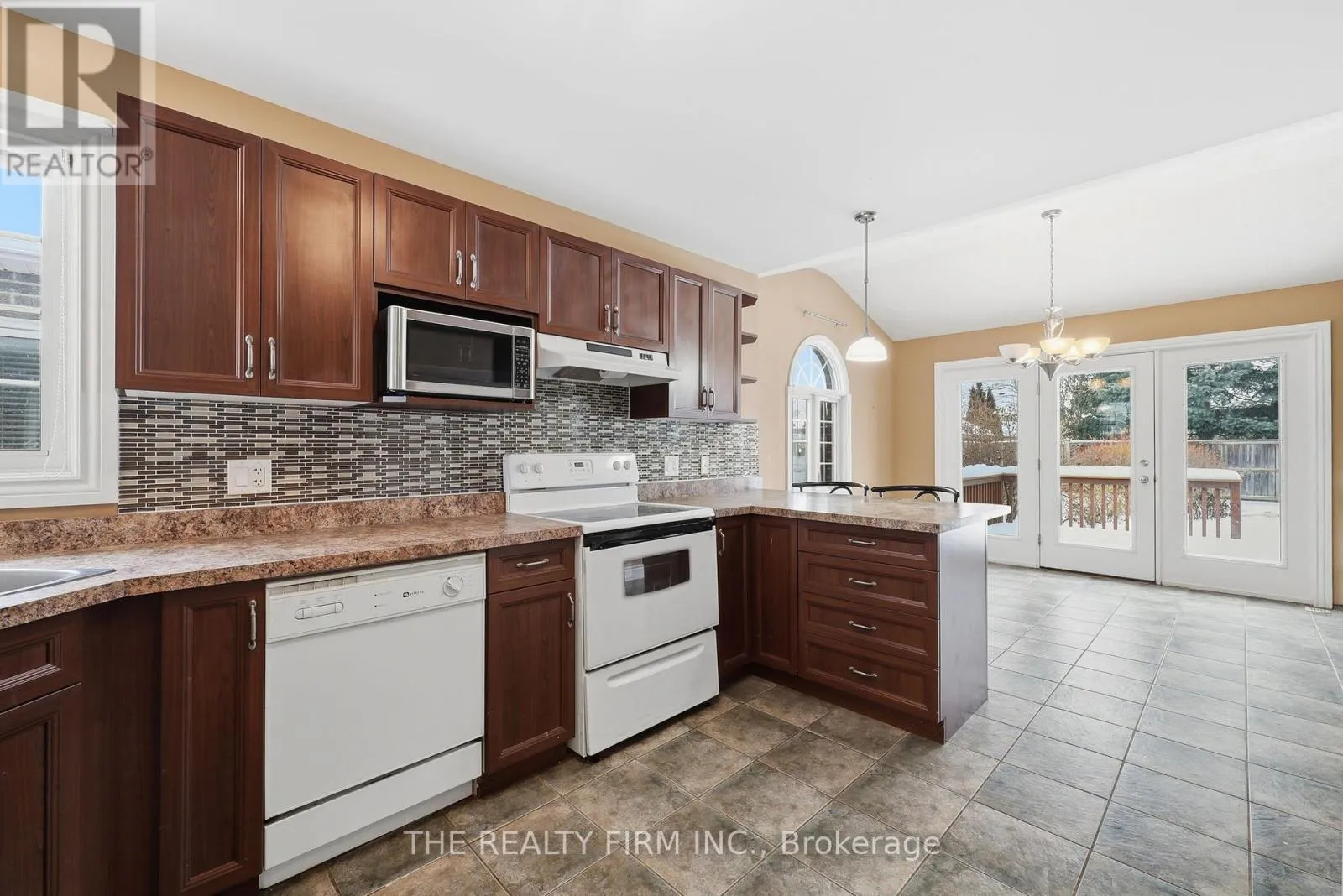 Cross Streets: BAILEY AVENUE. ** Directions: HIGHVIEW DRIVE TO BAILEY AVENUE, KANTOR COURT ON LEFT HAND SIDE. Welcome to 21 Kantor Court, ideally tucked away on an exceptionally quiet street. This brick bungalow was purpose-built for comfortable one-level living and thoughtfully designed with accessibility features throughout. The home offers two bedrooms, one and a half bathrooms, and a bright, spacious main level. The expansive living room features beautiful hardwood flooring and a cozy gas fireplace, flowing seamlessly into the adjacent dining area with patio doors leading to the backyard. The kitchen provides ample cabinetry and a convenient eat-in breakfast counter. The generously sized primary bedroom includes a private ensuite with a walk-in shower and two walk-in closets, offering excellent storage. A second bedroom is ideal for children, guests, or a home office, along with a main-level two-piece powder room. Completing the home is a double car garage and an unfinished basement, perfect for additional storage. Utilities are responsibility of the tenant. Available immediately. Applicants will be asked to provide references, Proof of income, Credit check upon application. (id:27476)
