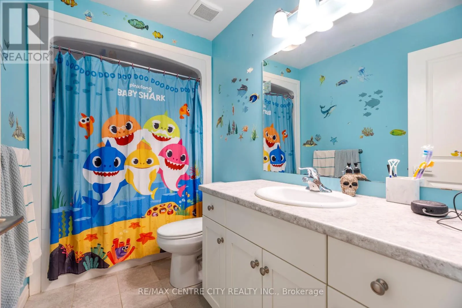 Cross Streets: Peach Tree Blvd. ** Directions: Southdale Rd to Peach Tree Blvd first right onto Charter Creek Crt. Welcome to 45 Charter Creek Court! This 4 bedroom, 4 bathroom End Unit Freehold Townhome, built by Hayhoe homes in 2020, is located on a nice, quiet court in Orchard Park. The exterior of the home offers a large double wide driveway that can accommodate 4 vehicles as well as a 1-car garage with direct access into the home. Entering the home you are greeted by a spacious foyer with a coat closet, powder room and tile floors that lead you into the open concept main living area consisting of the kitchen complete with quartz counters, S.S appliances, a perfect sized island, dining area and a large living room with hardwood floors and access to the backyard. On the second floor you will find plenty of natural lighting through the window in the stairway and well proportioned windows in the bedrooms. The large primary bedroom features a walk in closet with great storage as well as a 3-piece ensuite. The other two generously sized bedrooms offer plenty of closet storage. Finishing off the second floor there is a full bathroom with a large vanity as well as a laundry room for your convenience. In the basement you will find another full bathroom, a living room and the 4th bedroom. The backyard offers a deck with gas line for a bbq, fully fenced yard and a shed. (id:27476)